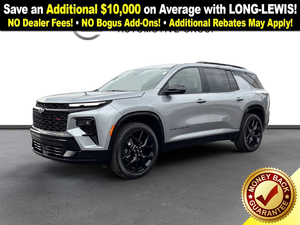 2025 Chevrolet Traverse RS Certified. Sterling Gray Metallic RS FWD 8-Speed Automatic 2.5L DOHC GM Certified, 12 Speakers, 3rd row seats: split-bench, 4-Wheel Disc Brakes, 6-Way Power Front Passenger Seat Adjuster, 8-Way Power Driver Seat Adjuster, ABS brakes, Air Conditioning, Alloy wheels, AM/FM radio: SiriusXM with 360L, Apple CarPlay/Android Auto, Auto High-beam Headlights, Auto tilt-away steering wheel, Auto-dimming door mirrors, Automatic temperature control, Bose Premium 12-Speaker Audio System Feature, Brake assist, Bumpers: body-color, Child-Seat-Sensing Airbag, Compass, Delay-off headlights, Driver 4-Way Power Lumbar Seat Adjuster, Driver door bin, Driver vanity mirror, Dual front impact airbags, Dual front side impact airbags, Electronic Stability Control, Emergency communication system: OnStar, Exterior Parking Camera Rear, Four wheel independent suspension, Front anti-roll bar, Front Bucket Seats, Front Center Armrest, Front dual zone A/C, Front Passenger 4-Way Power Lumbar Seat Adjuster, Front reading lights, Fully automatic headlights, Garage door transmitter, Heated door mirrors, Heated front seats, Heated rear seats, Heated steering wheel, Illuminated entry, Low tire pressure warning, Memory seat, Navigation System, Occupant sensing airbag, Outside temperature display, Overhead airbag, Overhead console, Panic alarm, Passenger door bin, Passenger vanity mirror, Perforated Leather-Appointed Seat Trim, Power door mirrors, Power driver seat, Power Dual Glass Panoramic Sliding Sunroof, Power Liftgate, Power passenger seat, Power steering, Power windows, Preferred Equipment Group 1RS, Radio data system, Radio: Audio System w/17.7" Diagonal Display, Rain sensing wipers, Rear air conditioning, Rear anti-roll bar, Rear reading lights, Rear window defroster, Rear window wiper, Remote keyless entry, Security system, SiriusXM w/360L Trial Subscription, Speed control, Speed-sensing steering, Spoiler, Sport steering wheel, Steering wheel memory, Steering wheel mounted audio controls, Tachometer, Telescoping steering wheel, Tilt steering wheel, Traction control, Trip computer, Turn signal indicator mirrors, Variably intermittent wipers, Ventilated front seats, Voltmeter, Wheels: 22" High Gloss Black Painted Aluminum.