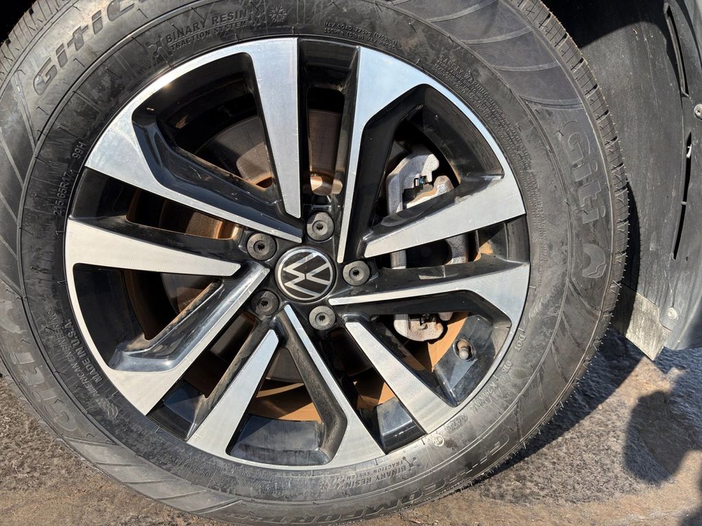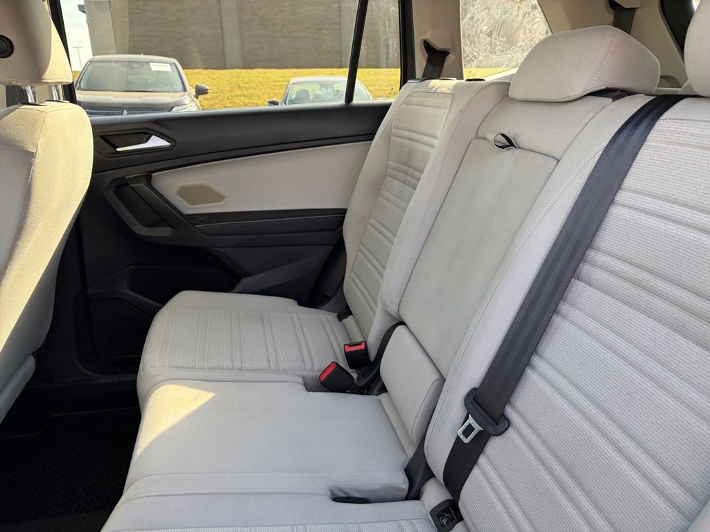 2022 Volkswagen Tiguan 2.0T S Certified. Platinum Gray Metallic 2.0T S FWD 8-Speed Automatic with Tiptronic 2.0L TSI DOHC Volkswagen Certified, 3-Row Rubber Monster Mats w/Logo Kit (Set of 5), 3.33 Axle Ratio, 3rd row seats: bench, 4-Wheel Disc Brakes, 4-Wheel Independent Suspension, 6 Speakers, ABS brakes, Air Conditioning, Alloy wheels, AM/FM radio, Brake assist, Bumpers: body-color, Cloth Seating Surfaces, Compass, Delay-off headlights, Driver door bin, Driver vanity mirror, Dual front impact airbags, Dual front side impact airbags, Electronic Stability Control, Emergency communication system: Car-Net, Exterior Parking Camera Rear, Forward collision: FCW w/Autonomous Emergency Braking mitigation, Four wheel independent suspension, Front anti-roll bar, Front Bucket Seats, Front Center Armrest, Front reading lights, Fully automatic headlights, Heated door mirrors, Heated Front Bucket Seats, Heated front seats, Heavy Duty Trunk Liner w/VW CarGo Blocks, Illuminated entry, Leather Shift Knob, Low tire pressure warning, Occupant sensing airbag, Outside temperature display, Overhead airbag, Overhead console, Panic alarm, Passenger door bin, Passenger vanity mirror, Power door mirrors, Power steering, Power windows, Radio data system, Radio: Composition Color AM/FM, Rear anti-roll bar, Rear reading lights, Rear seat center armrest, Rear window defroster, Rear window wiper, Remote keyless entry, Roof rack: rails only, Speed control, Speed-sensing steering, Split folding rear seat, Spoiler, Steering wheel mounted audio controls, Tachometer, Telescoping steering wheel, Tilt steering wheel, Traction control, Trip computer, Turn signal indicator mirrors, Variably intermittent wipers, Wheels: 17" 2-Tone Machined Twin 5-Spoke Alloy.