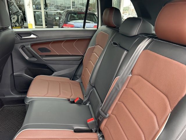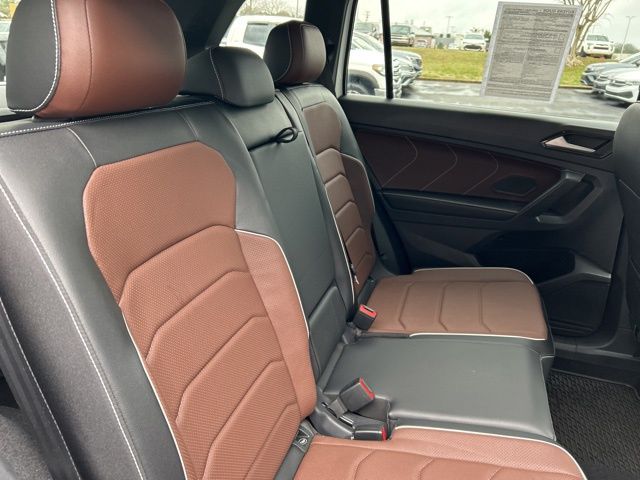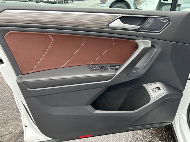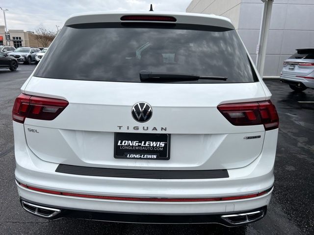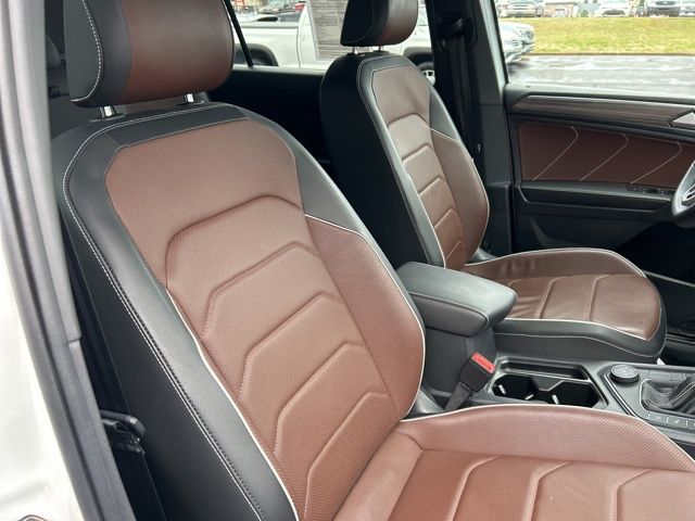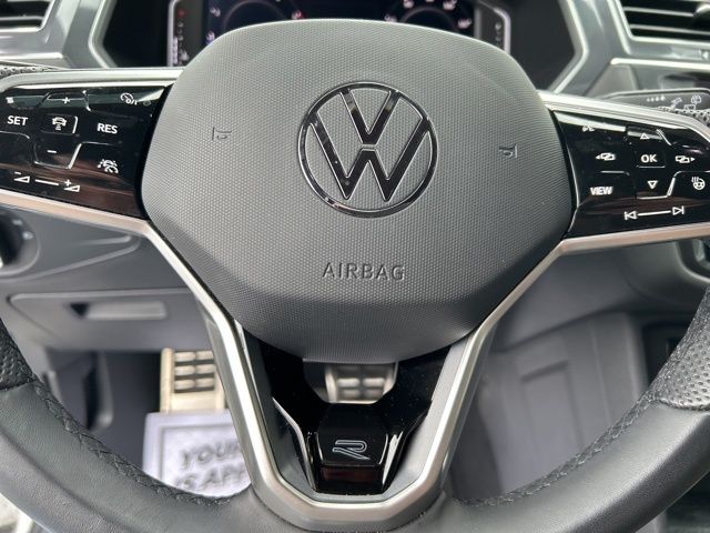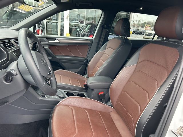 2022 Volkswagen Tiguan 2.0T SEL R-Line Certified. White Pearl 2.0T SEL R-Line AWD 8-Speed Automatic with Tiptronic 2.0L TSI DOHC Volkswagen Certified, AWD, 3.33 Axle Ratio, 4-Wheel Disc Brakes, 4-Wheel Independent Suspension, 8 Speakers, ABS brakes, Air Conditioning, Alloy wheels, AM/FM radio: SiriusXM with 360L, Auto High-beam Headlights, Auto-dimming Rear-View mirror, Automatic temperature control, Brake assist, Bumpers: body-color, Compass, Delay-off headlights, Driver door bin, Driver vanity mirror, Dual front impact airbags, Dual front side impact airbags, Electronic Stability Control, Emergency communication system: Car-Net, Four wheel independent suspension, Front anti-roll bar, Front Bucket Seats, Front Center Armrest, Front dual zone A/C, Front fog lights, Front reading lights, Fully automatic headlights, Heated door mirrors, Heated front seats, Heated steering wheel, Heated/Ventilated Front Comfort Sport Seats, Illuminated entry, Leather Shift Knob, Leather steering wheel, Low tire pressure warning, Memory seat, Navigation system: VW Car-Net Guide & Inform, Occupant sensing airbag, Outside temperature display, Overhead airbag, Overhead console, Panic alarm, Passenger door bin, Passenger vanity mirror, Perforated Vienna Leather Seating Surfaces, Power door mirrors, Power driver seat, Power Liftgate, Power moonroof, Power passenger seat, Power steering, Power windows, Radio data system, Radio: MIB3 Discover Media AM/FM/HD, Rain sensing wipers, Rear anti-roll bar, Rear reading lights, Rear seat center armrest, Rear window defroster, Rear window wiper, Remote keyless entry, Roof rack: rails only, Security system, Speed control, Speed-sensing steering, Split folding rear seat, Spoiler, Sport steering wheel, Steering wheel mounted audio controls, Tachometer, Telescoping steering wheel, Tilt steering wheel, Traction control, Trip computer, Turn signal indicator mirrors, Variably intermittent wipers, Ventilated front seats, Wheels: 20" Machined Black Alloy, AWD.
