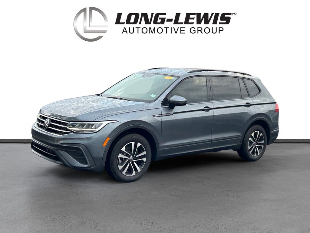 2023 Volkswagen Tiguan 2.0T S Certified. Platinum Gray Metallic 2.0T S FWD 8-Speed Automatic with Tiptronic 2.0L TSI DOHC Volkswagen Certified, 3-Row Rubber Monster Mats w/Logo Kit (Set of 5), 3.33 Axle Ratio, 3rd row seats: bench, 4-Wheel Disc Brakes, 4-Wheel Independent Suspension, 6 Speakers, ABS brakes, Air Conditioning, Alloy wheels, AM/FM radio, Brake assist, Bumpers: body-color, Cloth Seating Surfaces, Compass, Credit - Rear Sensors Removed, Delay-off headlights, Driver door bin, Driver vanity mirror, Dual front impact airbags, Dual front side impact airbags, Electronic Stability Control, Emergency communication system: VW Car-Net Safe & Secure 5-year, Exterior Parking Camera Rear, First Aid Kit, Forward collision: FCW w/Autonomous Emergency Braking mitigation, Four wheel independent suspension, Front anti-roll bar, Front Bucket Seats, Front Center Armrest, Front reading lights, Fully automatic headlights, Heated door mirrors, Heated Front Bucket Seats, Heated front seats, Heavy Duty Trunk Liner w/VW CarGo Blocks, Illuminated entry, Leather Shift Knob, Low tire pressure warning, Occupant sensing airbag, Outside temperature display, Overhead airbag, Overhead console, Panic alarm, Passenger door bin, Passenger vanity mirror, Power door mirrors, Power steering, Power windows, Radio data system, Radio: Composition Color AM/FM, Rear anti-roll bar, Rear reading lights, Rear seat center armrest, Rear window defroster, Rear window wiper, Remote keyless entry, Roadside Assistance Kit, Speed control, Speed-sensing steering, Split folding rear seat, Spoiler, Steering wheel mounted audio controls, Tachometer, Telescoping steering wheel, Tilt steering wheel, Traction control, Trip computer, Turn signal indicator mirrors, Variably intermittent wipers, Wheels: 17" 2-Tone Machined Twin 5-Spoke Alloy.