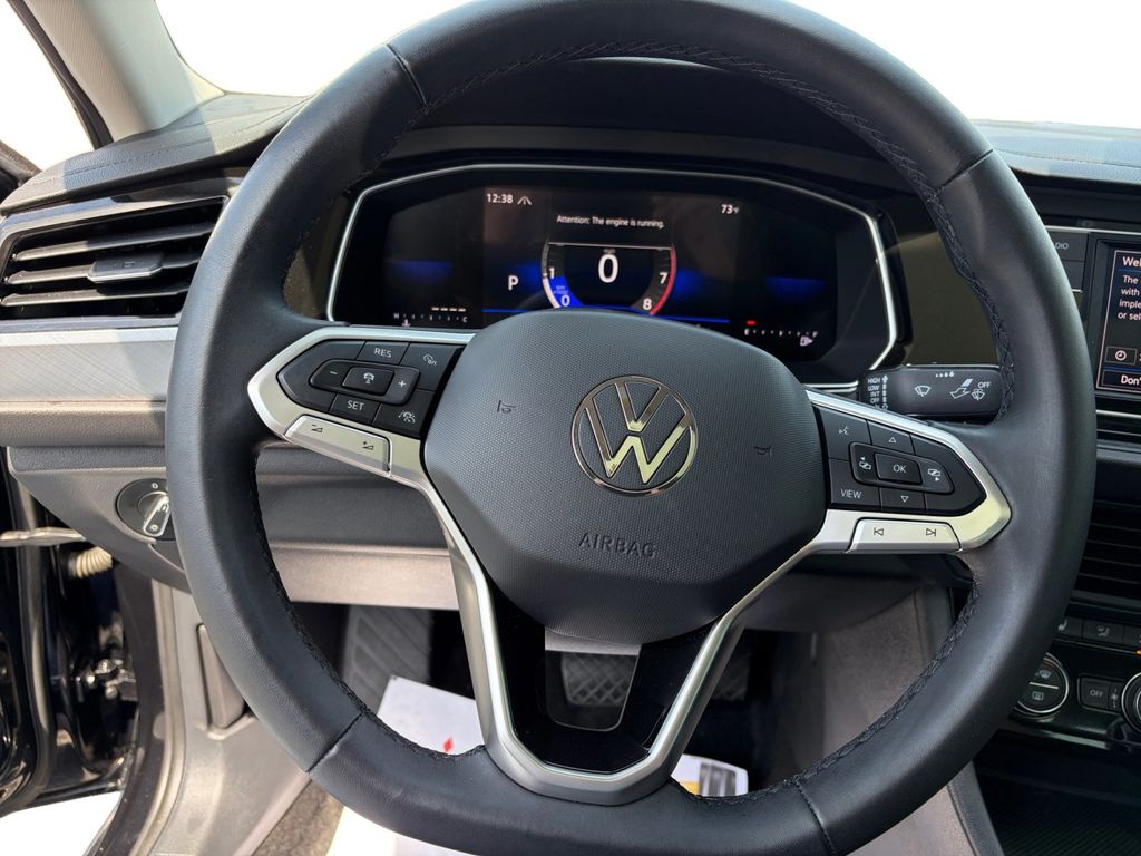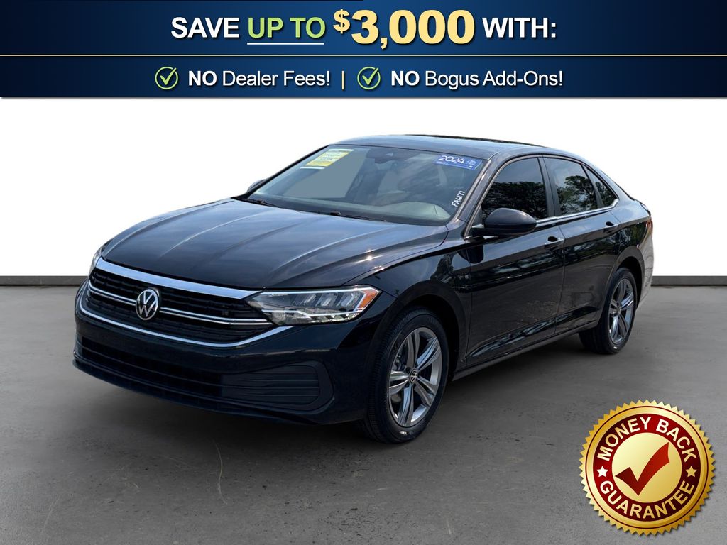2024 Volkswagen Jetta 1.5T SE Certified. Black 1.5T SE FWD 8-Speed Automatic with Tiptronic 1.5L I-4 DI DOHC Turbocharged Volkswagen Certified, 4 Speakers, 4-Wheel Disc Brakes, ABS brakes, Active Blind Spot Monitor, Air Conditioning, Alloy wheels, Auto-dimming Rear-View mirror, Automatic temperature control, Brake assist, Bumpers: body-color, Delay-off headlights, Driver door bin, Driver vanity mirror, Dual front impact airbags, Dual front side impact airbags, Electronic Stability Control, Emergency communication system: VW Car-Net Safe & Secure 5-year, Exterior Parking Camera Rear, Front anti-roll bar, Front Bucket Seats, Front Center Armrest, Front dual zone A/C, Front wheel independent suspension, Fully automatic headlights, Heated door mirrors, Heated Front Seats, Heated front seats, Illuminated entry, Leather Shift Knob, Leather steering wheel, Low tire pressure warning, Occupant sensing airbag, Outside temperature display, Overhead airbag, Overhead console, Panic alarm, Passenger door bin, Passenger vanity mirror, Power door mirrors, Power driver seat, Power steering, Power windows, Radio data system, Radio: MIB3 Composition Color w/6.5" Touchscreen, Rain sensing wipers, Rear anti-roll bar, Rear reading lights, Rear seat center armrest, Rear window defroster, Remote keyless entry, Speed control, Speed-sensing steering, Split folding rear seat, Steering wheel mounted audio controls, Tachometer, Telescoping steering wheel, Tilt steering wheel, Traction control, Trip computer, V-Tex Leatherette Seat Trim, Variably intermittent wipers, Wheels: 17" Twin 5-Spoke Silver Painted Alloy.