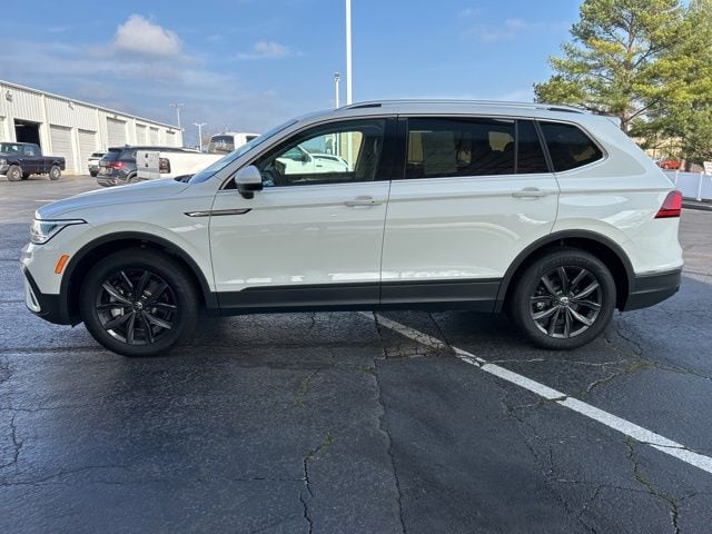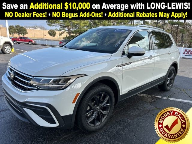 2024 Volkswagen Tiguan Certified. White FWD 8-Speed Automatic with Tiptronic 2.0L TSI DOHC Volkswagen Certified, 3.33 Axle Ratio, 3rd row seats: bench, 4-Wheel Disc Brakes, 4-Wheel Independent Suspension, 6 Speakers, ABS brakes, Air Conditioning, Alloy wheels, AM/FM radio: SiriusXM with 360L, Auto-dimming Rear-View mirror, Brake assist, Bumpers: body-color, Compass, Delay-off headlights, Driver door bin, Driver vanity mirror, Dual front impact airbags, Dual front side impact airbags, Electronic Stability Control, Emergency communication system: VW Car-Net Safe & Secure 5-year, Exterior Parking Camera Rear, Four wheel independent suspension, Front anti-roll bar, Front Bucket Seats, Front Center Armrest, Front reading lights, Fully automatic headlights, Heated door mirrors, Heated Front Seats, Heated front seats, Illuminated entry, Leather Shift Knob, Low tire pressure warning, Occupant sensing airbag, Outside temperature display, Overhead airbag, Overhead console, Panic alarm, Passenger door bin, Passenger vanity mirror, Power door mirrors, Power driver seat, Power Liftgate, Power steering, Power windows, Radio data system, Radio: MIB3 Composition Media AM/FM/HD, Rain sensing wipers, Rear anti-roll bar, Rear reading lights, Rear seat center armrest, Rear window defroster, Rear window wiper, Remote keyless entry, Security system, Speed control, Speed-sensing steering, Split folding rear seat, Spoiler, Steering wheel mounted audio controls, Tachometer, Telescoping steering wheel, Tilt steering wheel, Traction control, Trip computer, Turn signal indicator mirrors, Variably intermittent wipers.