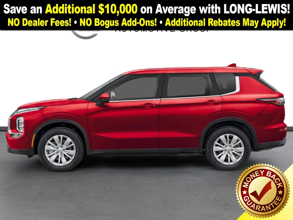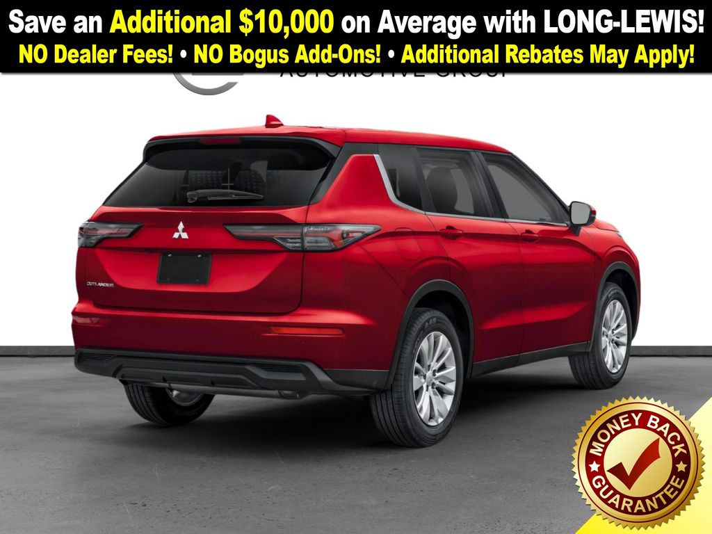 Red Diamond 2025 Mitsubishi Outlander ES NMT 4WD CVT 2.5L I4 DOHC 16V LEV3-ULEV50 181hp 4WD, 18" Alloy Wheels, 3rd row seats: split-bench, 4-Wheel Disc Brakes, 8 Speakers, ABS brakes, Air Conditioning, Alloy wheels, AM/FM radio: SiriusXM, Android Auto & Apple CarPlay, Auto High-beam Headlights, Auto-dimming Rear-View mirror, Automatic temperature control, Blind Spot Warning, Brake assist, Bumpers: body-color, Cloth Fabric Seating Surfaces, Driver door bin, Driver vanity mirror, Dual front impact airbags, Dual front side impact airbags, Electronic Stability Control, Emergency communication system: Mitsubishi Connect w/ 24-month trial, Exterior Parking Camera Rear, Four wheel independent suspension, Front anti-roll bar, Front Bucket Seats, Front Center Armrest w/Storage, Front dual zone A/C, Front reading lights, Fully automatic headlights, Headlight cleaning, Heated Front Bucket Seats, Heated front seats, Illuminated entry, Knee airbag, Low tire pressure warning, Navigation System, Occupant sensing airbag, Outside temperature display, Overhead airbag, Overhead console, Panic alarm, Passenger door bin, Passenger vanity mirror, Power door mirrors, Power steering, Power windows, Radio data system, Radio: AM/FM 12.3" Navigation w/Smartphone-Link, Rear anti-roll bar, Rear Parking Sensors, Rear seat center armrest, Rear side impact airbag, Rear window defroster, Rear window wiper, Reclining 3rd row seat, Remote keyless entry, Security system, Speed control, Speed-Sensitive Wipers, Split folding rear seat, Spoiler, Steering wheel mounted audio controls, Tachometer, Telescoping steering wheel, Tilt steering wheel, Traction control, Trip computer, Turn signal indicator mirrors, Variably intermittent wipers, 4WD.