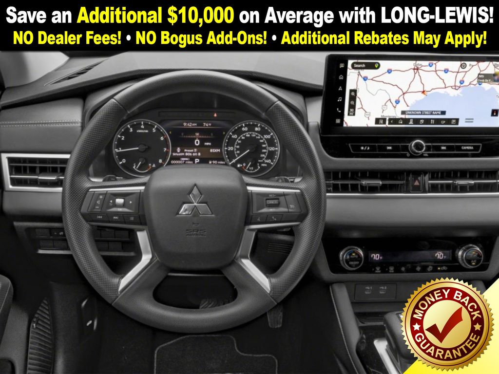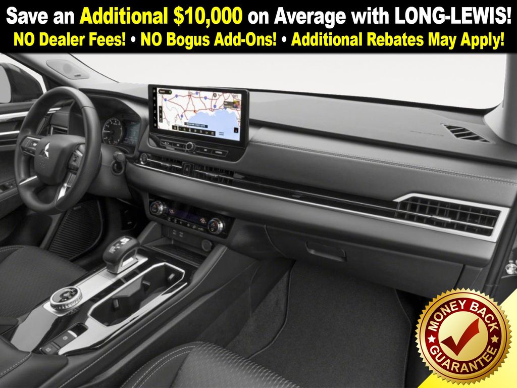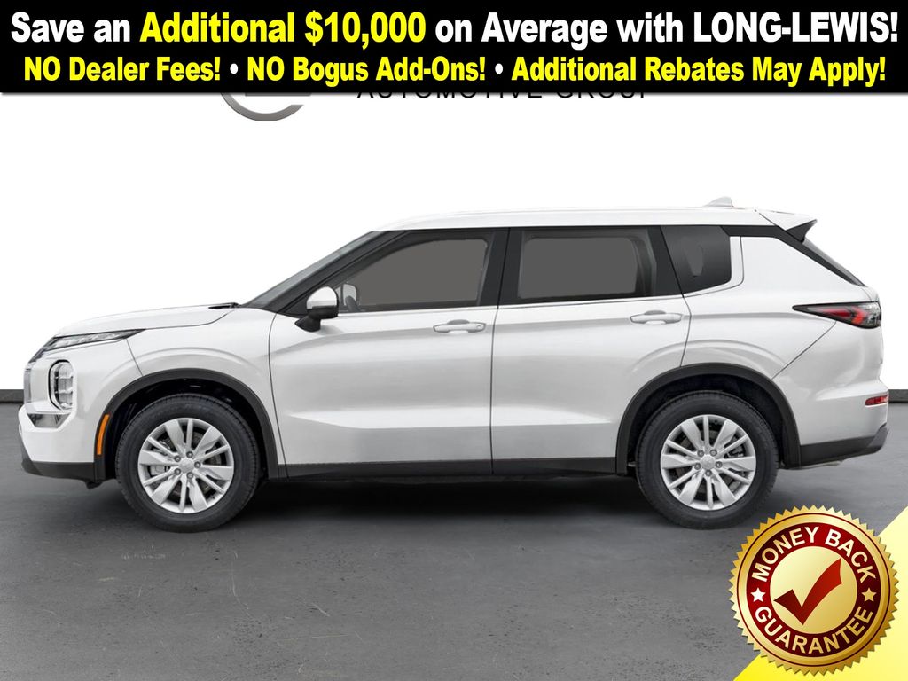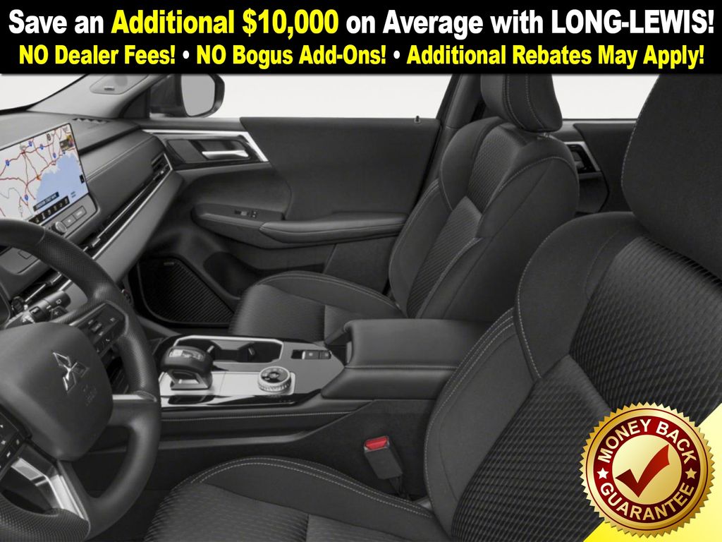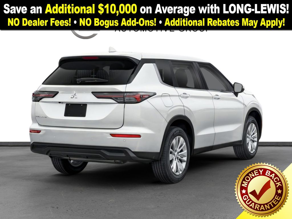 White Diamond 2025 Mitsubishi Outlander ES NMT FWD CVT 2.5L I4 DOHC 16V LEV3-SULEV30 181hp 18" Alloy Wheels, 3rd row seats: split-bench, 4-Wheel Disc Brakes, 8 Speakers, ABS brakes, Air Conditioning, Alloy wheels, AM/FM radio: SiriusXM, Android Auto & Apple CarPlay, Auto High-beam Headlights, Auto-dimming Rear-View mirror, Automatic temperature control, Blind Spot Warning, Brake assist, Bumpers: body-color, Cloth Fabric Seating Surfaces, Driver door bin, Driver vanity mirror, Dual front impact airbags, Dual front side impact airbags, Electronic Stability Control, Emergency communication system: Mitsubishi Connect w/ 24-month trial, Exterior Parking Camera Rear, Four wheel independent suspension, Front anti-roll bar, Front Bucket Seats, Front Center Armrest w/Storage, Front dual zone A/C, Front reading lights, Fully automatic headlights, Illuminated entry, Knee airbag, Low tire pressure warning, Navigation System, Occupant sensing airbag, Outside temperature display, Overhead airbag, Overhead console, Panic alarm, Passenger door bin, Passenger vanity mirror, Power door mirrors, Power steering, Power windows, Radio data system, Radio: AM/FM 12.3" Navigation w/Smartphone-Link, Rear anti-roll bar, Rear Parking Sensors, Rear seat center armrest, Rear side impact airbag, Rear window defroster, Rear window wiper, Reclining 3rd row seat, Remote keyless entry, Security system, Speed control, Speed-Sensitive Wipers, Split folding rear seat, Spoiler, Steering wheel mounted audio controls, Tachometer, Telescoping steering wheel, Tilt steering wheel, Traction control, Trip computer, Turn signal indicator mirrors, Variably intermittent wipers.