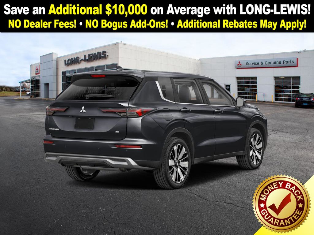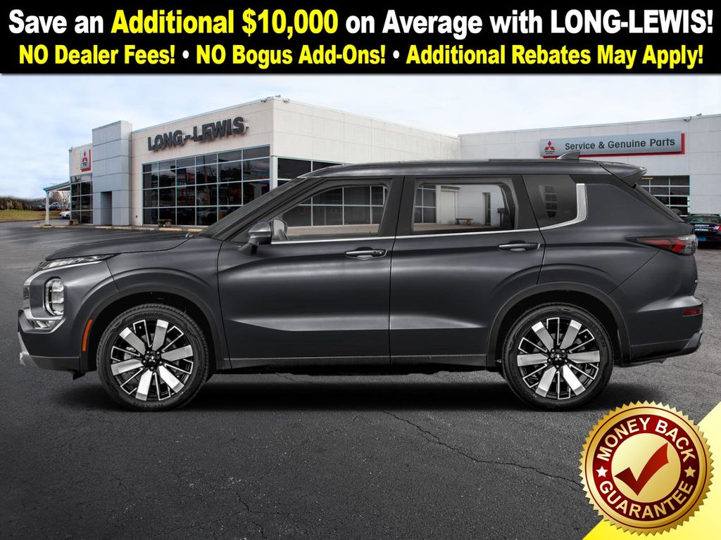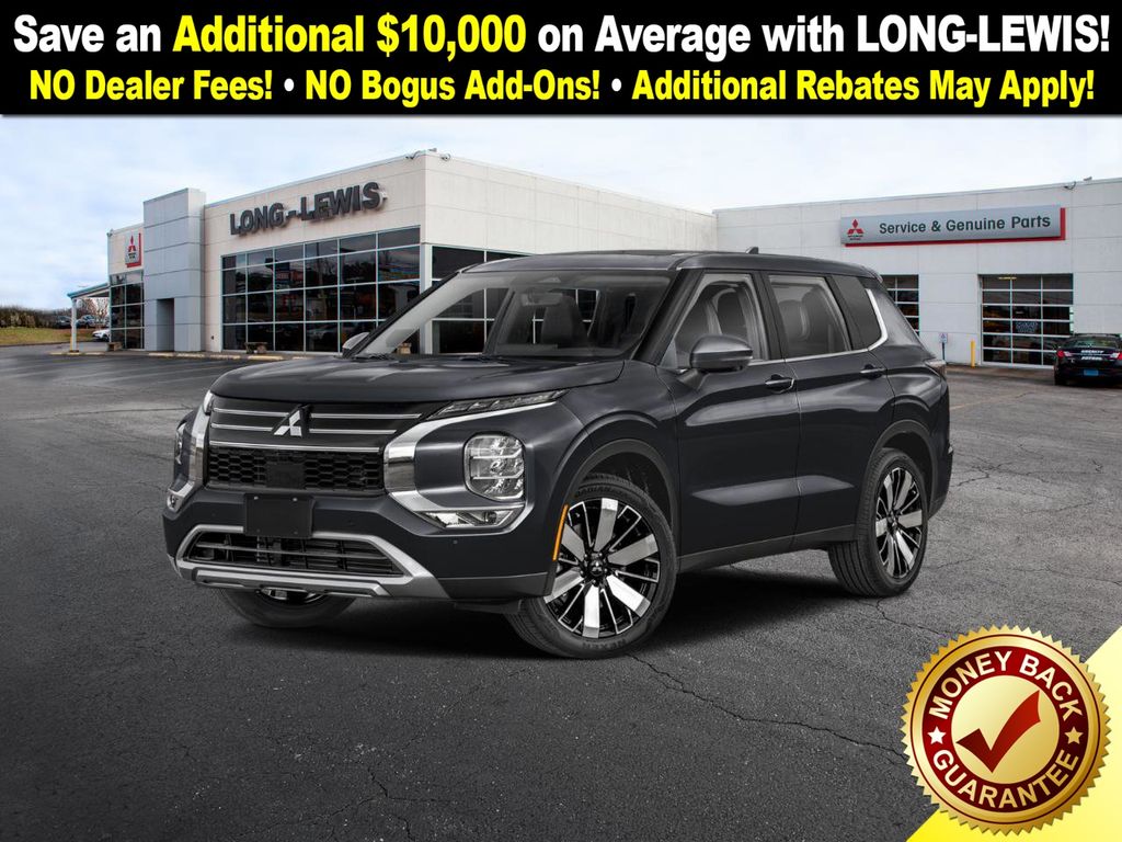 Black Diamond 2026 Mitsubishi Outlander SE NMT FWD CVT 1.5L I4 Turbocharged DOHC 16V LEV3-SULEV30 174hp 3rd row seats: split-bench, 4-Wheel Disc Brakes, 8 Speakers, ABS brakes, Air Conditioning, Alloy wheels, AM/FM radio: SiriusXM, Android Auto & Apple CarPlay, Auto High-beam Headlights, Auto-dimming Rear-View mirror, Automatic temperature control, Brake assist, Bumpers: body-color, Driver door bin, Driver vanity mirror, Dual front impact airbags, Dual front side impact airbags, Electronic Stability Control, Emergency communication system: Mitsubishi Connect w/ 24-month trial, Exterior Parking Camera Rear, Four wheel independent suspension, Front anti-roll bar, Front Bucket Seats, Front Center Armrest w/Storage, Front dual zone A/C, Front fog lights, Front reading lights, Fully automatic headlights, Garage door transmitter: HomeLink, Heated door mirrors, Heated Front Bucket Seats, Heated front seats, Illuminated entry, Knee airbag, Leather Shift Knob, Leather steering wheel, Low tire pressure warning, Navigation System, Occupant sensing airbag, Outside temperature display, Overhead airbag, Overhead console, Panic alarm, Passenger door bin, Passenger vanity mirror, Power door mirrors, Power driver seat, Power Liftgate, Power steering, Power windows, Radio data system, Radio: AM/FM 12.3" Navigation w/Smartphone-Link, Rain sensing wipers, Rear anti-roll bar, Rear seat center armrest, Rear side impact airbag, Rear window defroster, Rear window wiper, Reclining 3rd row seat, Remote keyless entry, Security system, Speed control, Speed-Sensitive Wipers, Split folding rear seat, Spoiler, Steering wheel mounted audio controls, Synthetic Leather Seating Surfaces, Tachometer, Telescoping steering wheel, Tilt steering wheel, Traction control, Trip computer, Turn signal indicator mirrors, Variably intermittent wipers, Wheels: 20" Two-Tone Alloy.