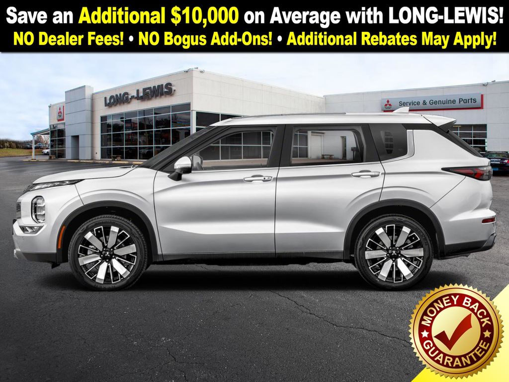 Alloy Silver Metallic 2026 Mitsubishi Outlander SE NMT FWD CVT 1.5L I4 Turbocharged DOHC 16V LEV3-SULEV30 174hp 3rd row seats: split-bench, 4-Wheel Disc Brakes, 8 Speakers, ABS brakes, Air Conditioning, Alloy wheels, AM/FM radio: SiriusXM, Android Auto & Apple CarPlay, Auto High-beam Headlights, Auto-dimming Rear-View mirror, Automatic temperature control, Brake assist, Bumpers: body-color, Driver door bin, Driver vanity mirror, Dual front impact airbags, Dual front side impact airbags, Electronic Stability Control, Emergency communication system: Mitsubishi Connect w/ 24-month trial, Exterior Parking Camera Rear, Four wheel independent suspension, Front anti-roll bar, Front Bucket Seats, Front Center Armrest w/Storage, Front dual zone A/C, Front fog lights, Front reading lights, Fully automatic headlights, Garage door transmitter: HomeLink, Heated door mirrors, Heated Front Bucket Seats, Heated front seats, Illuminated entry, Knee airbag, Leather Shift Knob, Leather steering wheel, Low tire pressure warning, Navigation System, Occupant sensing airbag, Outside temperature display, Overhead airbag, Overhead console, Panic alarm, Passenger door bin, Passenger vanity mirror, Power door mirrors, Power driver seat, Power Liftgate, Power steering, Power windows, Radio data system, Radio: AM/FM 12.3" Navigation w/Smartphone-Link, Rain sensing wipers, Rear anti-roll bar, Rear seat center armrest, Rear side impact airbag, Rear window defroster, Rear window wiper, Reclining 3rd row seat, Remote keyless entry, Security system, Speed control, Speed-Sensitive Wipers, Split folding rear seat, Spoiler, Steering wheel mounted audio controls, Synthetic Leather Seating Surfaces, Tachometer, Telescoping steering wheel, Tilt steering wheel, Traction control, Trip computer, Turn signal indicator mirrors, Variably intermittent wipers, Wheels: 20" Two-Tone Alloy.