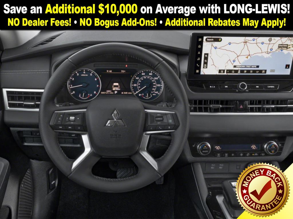 Moonstone Gray Metallic/Black Roof 2026 Mitsubishi Outlander Trail Edition NMT 4WD CVT 1.5L I4 Turbocharged DOHC 16V LEV3-SULEV30 174hp 4WD, 3rd row seats: split-bench, 4-Wheel Disc Brakes, 8 Speakers, ABS brakes, Air Conditioning, Alloy wheels, AM/FM radio: SiriusXM, Android Auto & Apple CarPlay, Auto High-beam Headlights, Auto-dimming Rear-View mirror, Automatic temperature control, Brake assist, Bumpers: body-color, Driver door bin, Driver vanity mirror, Dual front impact airbags, Dual front side impact airbags, Electronic Stability Control, Emergency communication system: Mitsubishi Connect w/ 24-month trial, Exterior Parking Camera Rear, Four wheel independent suspension, Front anti-roll bar, Front Bucket Seats, Front Center Armrest w/Storage, Front dual zone A/C, Front fog lights, Front reading lights, Fully automatic headlights, Headlight cleaning, Heated door mirrors, Heated Front Bucket Seats, Heated front seats, Illuminated entry, Knee airbag, Leather Shift Knob, Leather steering wheel, Low tire pressure warning, Navigation System, Occupant sensing airbag, Outside temperature display, Overhead airbag, Overhead console, Panic alarm, Passenger door bin, Passenger vanity mirror, Power door mirrors, Power driver seat, Power Liftgate, Power steering, Power windows, Radio data system, Radio: AM/FM 12.3" Navigation w/Smartphone-Link, Rain sensing wipers, Rear anti-roll bar, Rear seat center armrest, Rear side impact airbag, Rear window defroster, Rear window wiper, Reclining 3rd row seat, Remote keyless entry, Security system, Speed control, Speed-Sensitive Wipers, Split folding rear seat, Spoiler, Steering wheel mounted audio controls, Synthetic Leather Seating Surfaces, Tachometer, Telescoping steering wheel, Tilt steering wheel, Traction control, Trip computer, Turn signal indicator mirrors, Variably intermittent wipers, 4WD.
