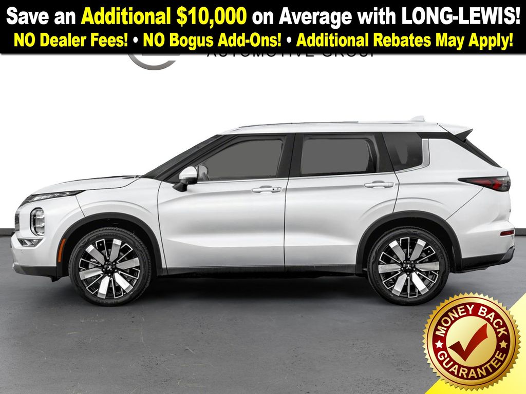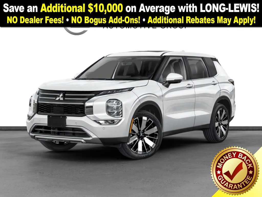 White Diamond 2026 Mitsubishi Outlander SE NMT FWD CVT 1.5L I4 Turbocharged DOHC 16V LEV3-SULEV30 174hp 3rd row seats: split-bench, 4-Wheel Disc Brakes, 8 Speakers, ABS brakes, Air Conditioning, Alloy wheels, AM/FM radio: SiriusXM, Android Auto & Apple CarPlay, Auto High-beam Headlights, Auto-dimming Rear-View mirror, Automatic temperature control, Brake assist, Bumpers: body-color, Driver door bin, Driver vanity mirror, Dual front impact airbags, Dual front side impact airbags, Electronic Stability Control, Emergency communication system: Mitsubishi Connect w/ 24-month trial, Exterior Parking Camera Rear, Four wheel independent suspension, Front anti-roll bar, Front Bucket Seats, Front Center Armrest w/Storage, Front dual zone A/C, Front fog lights, Front reading lights, Fully automatic headlights, Garage door transmitter: HomeLink, Heated door mirrors, Heated Front Bucket Seats, Heated front seats, Illuminated entry, Knee airbag, Leather Shift Knob, Leather steering wheel, Low tire pressure warning, Navigation System, Occupant sensing airbag, Outside temperature display, Overhead airbag, Overhead console, Panic alarm, Passenger door bin, Passenger vanity mirror, Power door mirrors, Power driver seat, Power Liftgate, Power steering, Power windows, Radio data system, Radio: AM/FM 12.3" Navigation w/Smartphone-Link, Rain sensing wipers, Rear anti-roll bar, Rear seat center armrest, Rear side impact airbag, Rear window defroster, Rear window wiper, Reclining 3rd row seat, Remote keyless entry, Security system, Speed control, Speed-Sensitive Wipers, Split folding rear seat, Spoiler, Steering wheel mounted audio controls, Synthetic Leather Seating Surfaces, Tachometer, Telescoping steering wheel, Tilt steering wheel, Traction control, Trip computer, Turn signal indicator mirrors, Variably intermittent wipers, Wheels: 20" Two-Tone Alloy.