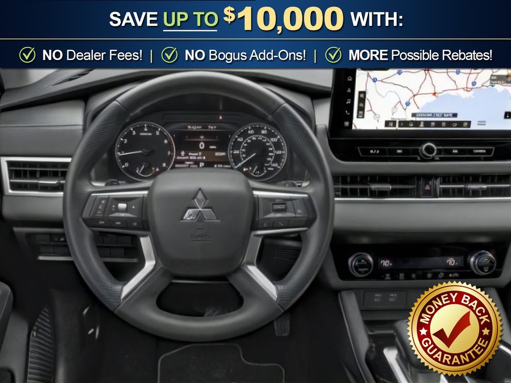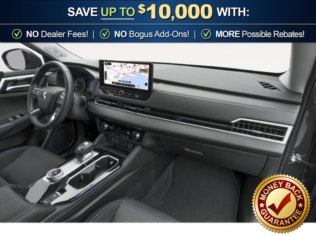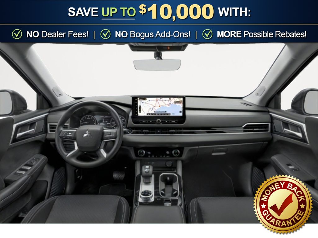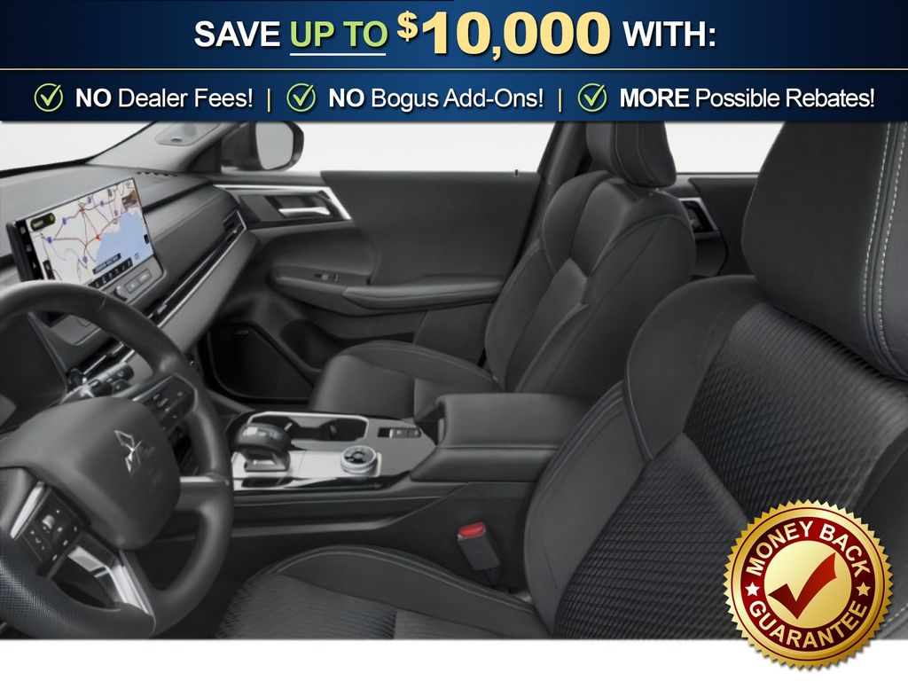 Labrador Black Pearl 2026 Mitsubishi Outlander ES NMT FWD CVT 1.5L I4 Turbocharged DOHC 16V LEV3-SULEV30 174hp 18" Alloy Wheels, 3rd row seats: split-bench, 4-Wheel Disc Brakes, 8 Speakers, ABS brakes, Air Conditioning, Alloy wheels, AM/FM radio: SiriusXM, Android Auto & Apple CarPlay, Auto High-beam Headlights, Auto-dimming Rear-View mirror, Automatic temperature control, Blind Spot Warning, Brake assist, Bumpers: body-color, Cloth Fabric Seating Surfaces, Compass, Delay-off headlights, Driver door bin, Driver vanity mirror, Dual front impact airbags, Dual front side impact airbags, Electronic Stability Control, Emergency communication system: Mitsubishi Connect w/ 24-month trial, Exterior Parking Camera Rear, Four wheel independent suspension, Front anti-roll bar, Front Bucket Seats, Front Center Armrest w/Storage, Front dual zone A/C, Front reading lights, Fully automatic headlights, Illuminated entry, Knee airbag, Low tire pressure warning, Navigation System, Occupant sensing airbag, Outside temperature display, Overhead airbag, Overhead console, Panic alarm, Passenger door bin, Passenger vanity mirror, Power door mirrors, Power steering, Power windows, Radio data system, Radio: AM/FM 12.3" Navigation with Smartphone-Link, Rear anti-roll bar, Rear Parking Sensors, Rear seat center armrest, Rear side impact airbag, Rear window defroster, Rear window wiper, Reclining 3rd row seat, Remote keyless entry, Security system, Speed control, Speed-Sensitive Wipers, Split folding rear seat, Spoiler, Steering wheel mounted audio controls, Tachometer, Telescoping steering wheel, Tilt steering wheel, Traction control, Trip computer, Turn signal indicator mirrors, Variably intermittent wipers.