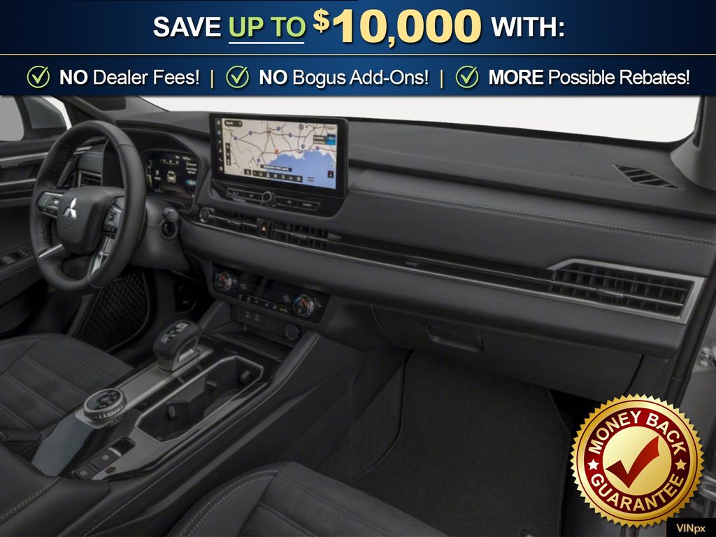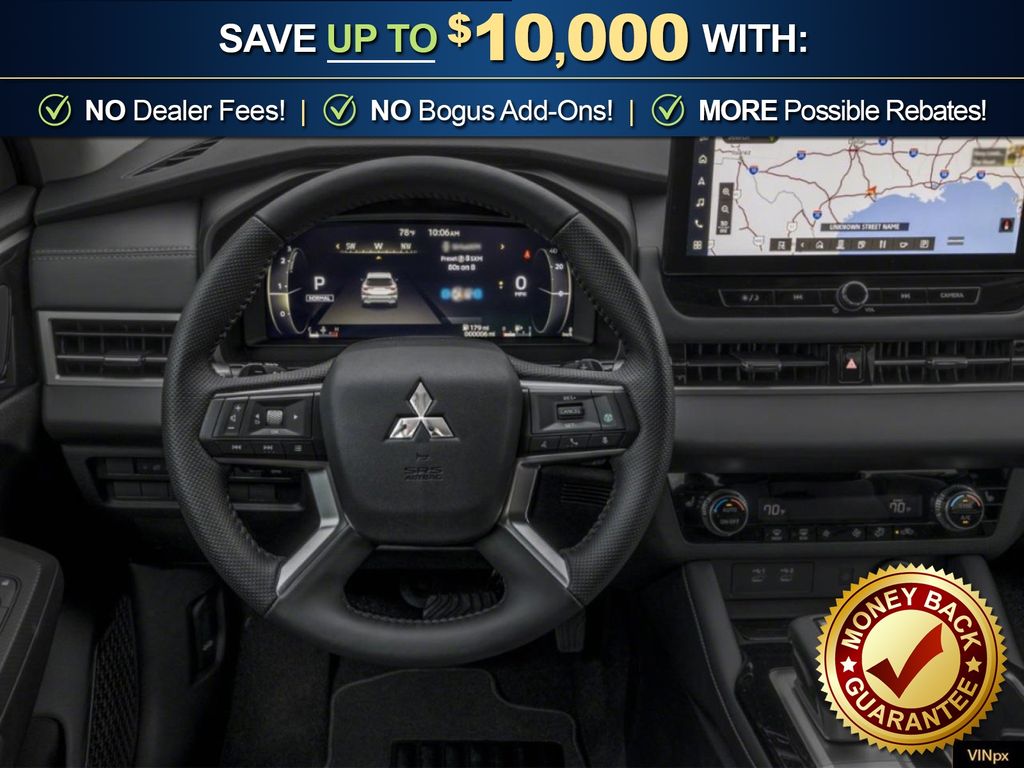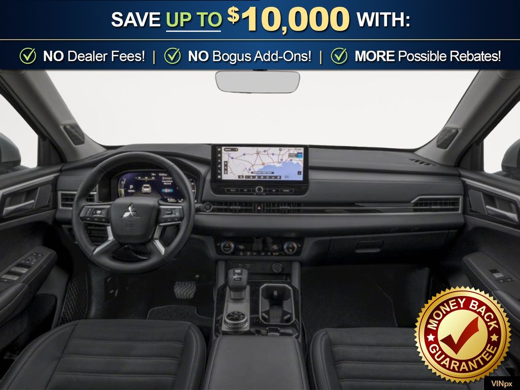Black Diamond 2026 Mitsubishi Outlander SE NMT FWD CVT 1.5L I4 Turbocharged DOHC 16V LEV3-SULEV30 174hp 3rd row seats: split-bench, 4-Wheel Disc Brakes, 8 Speakers, ABS brakes, Air Conditioning, Alloy wheels, AM/FM radio: SiriusXM, Android Auto & Apple CarPlay, Auto High-beam Headlights, Auto-dimming Rear-View mirror, Automatic temperature control, Brake assist, Bumpers: body-color, Compass, Delay-off headlights, Driver door bin, Driver vanity mirror, Dual front impact airbags, Dual front side impact airbags, Electronic Stability Control, Emergency communication system: Mitsubishi Connect w/ 24-month trial, Exterior Parking Camera Rear, Four wheel independent suspension, Front anti-roll bar, Front Bucket Seats, Front Center Armrest w/Storage, Front dual zone A/C, Front fog lights, Front reading lights, Fully automatic headlights, Garage door transmitter: HomeLink, Heated door mirrors, Heated Front Bucket Seats, Heated front seats, Illuminated entry, Knee airbag, Leather Shift Knob, Leather steering wheel, Low tire pressure warning, Navigation System, Occupant sensing airbag, Outside temperature display, Overhead airbag, Overhead console, Panic alarm, Passenger door bin, Passenger vanity mirror, Power door mirrors, Power driver seat, Power Liftgate, Power steering, Power windows, Radio data system, Radio: AM/FM 12.3" Navigation with Smartphone-Link, Rain sensing wipers, Rear anti-roll bar, Rear seat center armrest, Rear side impact airbag, Rear window defroster, Rear window wiper, Reclining 3rd row seat, Remote keyless entry, Security system, Speed control, Speed-Sensitive Wipers, Split folding rear seat, Spoiler, Steering wheel mounted audio controls, Synthetic Leather Seating Surfaces, Tachometer, Telescoping steering wheel, Tilt steering wheel, Traction control, Trip computer, Turn signal indicator mirrors, Variably intermittent wipers, Wheels: 20" Two-Tone Alloy.