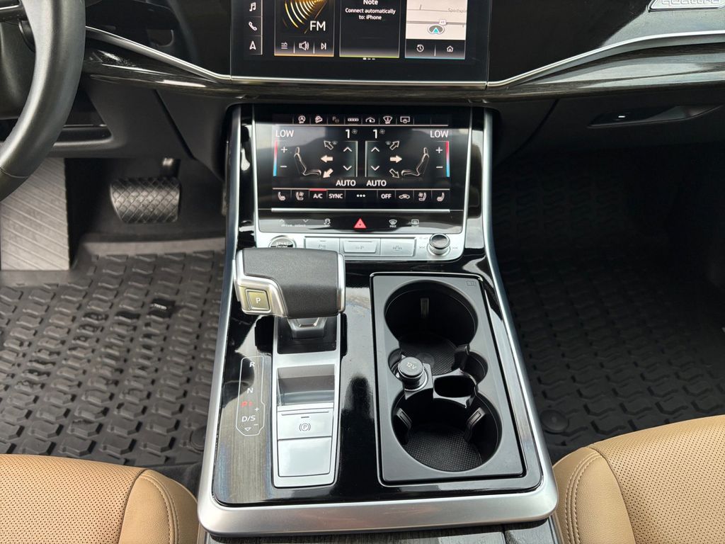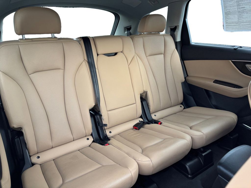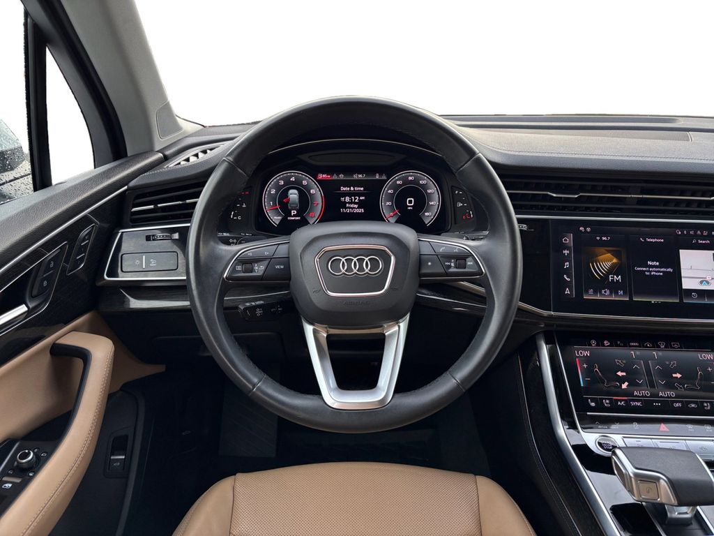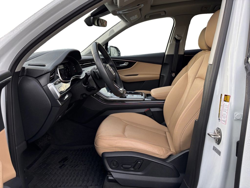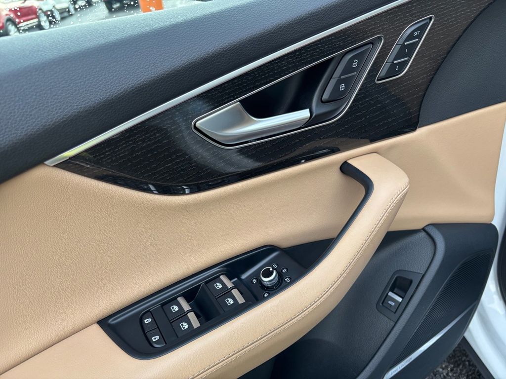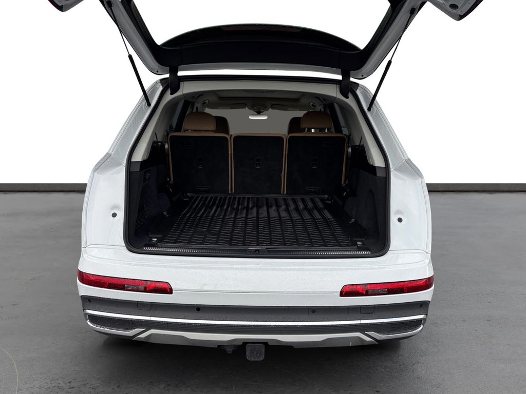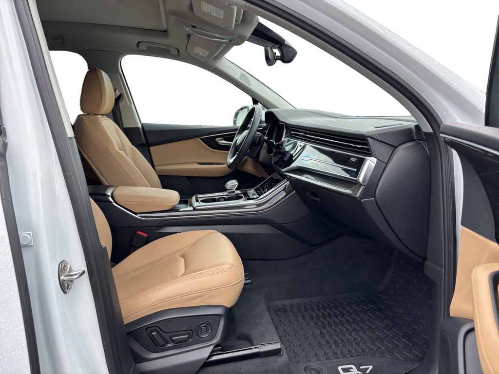 2024 Audi Q7 55 Prestige quattro White 55 Prestige quattro quattro 8-Speed Automatic with Tiptronic 3.0L TFSI 10 Speakers, 3.204 Axle Ratio, 3rd row seats: bench, 4-Wheel Disc Brakes, ABS brakes, Air Conditioning, Alloy wheels, AM/FM radio: SiriusXM w/ 360L, Auto High-beam Headlights, Auto-dimming door mirrors, Auto-dimming Rear-View mirror, Automatic temperature control, Brake assist, Bumpers: body-color, Compass, Delay-off headlights, Driver door bin, Driver vanity mirror, Dual front impact airbags, Dual front side impact airbags, Electronic Stability Control, Emergency communication system: Audi connect CARE, Exterior Parking Camera Rear, Four wheel independent suspension, Front anti-roll bar, Front Bucket Seats, Front Center Armrest, Front dual zone A/C, Front fog lights, Front reading lights, Fully automatic headlights, Garage door transmitter: HomeLink, Genuine wood door panel insert, Heated door mirrors, Heated Front Bucket Seats, Heated front seats, Illuminated entry, Leather Seating Surfaces, Leather Shift Knob, Leather steering wheel, Low tire pressure warning, Memory seat, Navigation system: Audi MMI Navigation plus with Touch Response, Occupant sensing airbag, Outside temperature display, Overhead airbag, Overhead console, Panic alarm, Passenger door bin, Passenger vanity mirror, Power door mirrors, Power driver seat, Power Liftgate, Power moonroof: Panoramic, Power passenger seat, Power steering, Power windows, Radio data system, Radio: Audi Sound System, Rain sensing wipers, Rear air conditioning, Rear anti-roll bar, Rear fog lights, Rear reading lights, Rear seat center armrest, Rear side impact airbag, Rear window defroster, Rear window wiper, Reclining 3rd row seat, Remote keyless entry, Security system, Speed control, Speed-sensing steering, Split folding rear seat, Spoiler, Steering wheel memory, Steering wheel mounted audio controls, Tachometer, Telescoping steering wheel, Tilt steering wheel, Traction control, Trip computer, Turn signal indicator mirrors, Variably intermittent wipers, Wheels: 19" 5-Arm-Star Design.