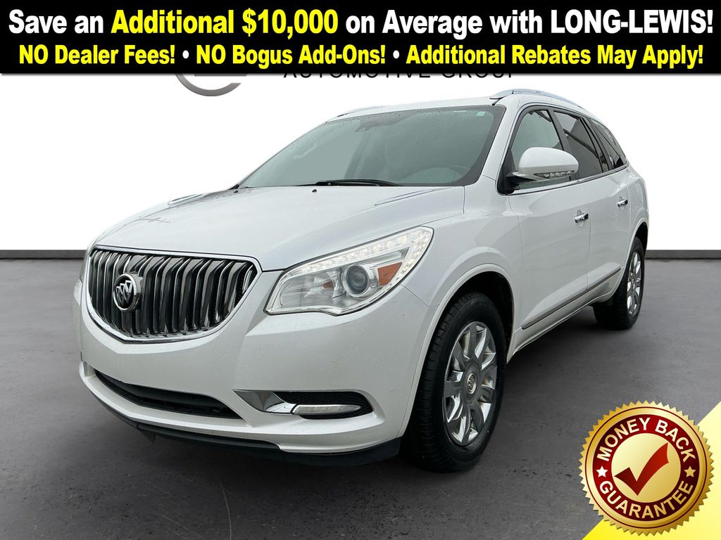 2017 Buick Enclave Premium Group White Frost Tricoat Premium Group FWD 6-Speed Automatic Electronic with Overdrive 3.6L V6 SIDI VVT FWD, 10 Speakers, 120-Volt 3-Prong Household-Style Power Outlet, 3.16 Axle Ratio, 3rd row seats: split-bench, 4-Wheel Disc Brakes, 4500lbs Trailering Package, 7-Passenger Seating, 8-Way Power Driver Seat Adjuster, 8-Way Power Passenger Seat Adjuster, ABS brakes, Air Conditioning, Alloy wheels, AM/FM radio: SiriusXM, Articulating Headlights, Auto tilt-away steering wheel, Auto-dimming door mirrors, Auto-dimming Rear-View mirror, Automatic temperature control, Bose Advanced 10-Speaker Audio System, Bose Performance-Enhanced 10-Speaker System, Bose Sound System, Brake assist, Bumpers: body-color, Cargo Convenience Package, Cargo Net, Cargo Shade Area Cover, CD player, Compass, Delay-off headlights, Driver door bin, Driver vanity mirror, Dual front impact airbags, Dual front side impact airbags, Electronic Stability Control, Emergency communication system: OnStar Guidance, Exterior Parking Camera Rear, Forward Collision Alert & Lane Departure Warning, Four wheel independent suspension, Front anti-roll bar, Front Bucket Seats, Front Center Armrest w/Storage, Front dual zone A/C, Front reading lights, Fully automatic headlights, Garage door transmitter, Heated & Cooled Driver & Front Passenger Seats, Heated door mirrors, Heated front seats, Heated Steering Wheel, Heated steering wheel, Heavy-Duty Cooling System, High intensity discharge headlights: Bi-Xenon, Illuminated entry, Leather steering wheel, Low tire pressure warning, Memory seat, Memory Settings, Navigation System, NavTraffic, Occupant sensing airbag, Outside temperature display, Overhead airbag, Panic alarm, Passenger door bin, Passenger vanity mirror, Perforated Leather-Appointed Seat Trim, Power door mirrors, Power driver seat, Power Liftgate, Power passenger seat, Power steering, Power Tilt & Telescopic Steering Column, Power Tilt-Sliding Moonroof, Power windows, Power-Folding Heated Body-Color Outside Mirrors, Preferred Equipment Group 1SN, Premium Package, Radio data system, Radio: Color Touch AM/FM/CD/DVD/Nav (DISC), Radio: Color Touch AM/FM/CD/Nav w/IntelliLink, Rear air conditioning, Rear anti-roll bar, Rear audio controls, Rear Audio System Controls, Rear Parking Sensors, Rear reading lights, Rear Seat Entertainment System, Rear window defroster, Rear window wiper, Remote keyless entry, Roof rack: rails only, Security system, Side Blind Zone Alert w/Cross Traffic Alert, Speed control, Speed-sensing steering, Spoiler, Steering wheel memory, Steering wheel mounted audio controls, Tachometer, Telescoping steering wheel, Tilt steering wheel, Traction control, Trailer Hitch, Trip computer, Turn signal indicator mirrors, Variably intermittent wipers, Ventilated front seats, Voltmeter, Wheels: 19" Chrome-Clad Cast Aluminum, FWD.