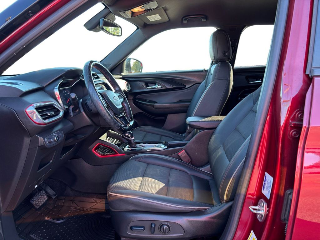 2023 Chevrolet TrailBlazer RS Crimson Metallic RS FWD CVT 1.3L Ecotec Turbo DOHC SIDI w/VVT 1 Type-A & 1 Type-C USB Charging-Only Ports, 120-Volt Power Outlet, 2-Way Adjustable Front Head Restraints, 2-Way Power Driver Lumbar Seat Adjuster, 4-Way Manual Front Passenger Seat Adjuster, 4-Wheel Disc Brakes, 5.45 Axle Ratio, 6 Speakers, 6-Speaker Audio System Feature, 7" Diagonal Color Touchscreen, 8-Way Power Driver Seat Adjuster, 8" Diagonal Color Touchscreen Display, ABS brakes, Air Conditioning, Alloy wheels, AM/FM radio: SiriusXM, Auto High-beam Headlights, Brake assist, Bumpers: body-color, Cabin Humidity Sensor, Cloth w/Leatherette Seat Trim, Compass, Convenience Package, Delay-off headlights, Driver & Front Passenger Illuminated Vanity Mirrors, Driver Confidence Package, Driver door bin, Driver vanity mirror, Dual front impact airbags, Dual front side impact airbags, Electronic Stability Control, Emergency communication system: OnStar and Chevrolet connected services capable, Exterior Parking Camera Rear, Flat-Folding Front Passenger Seatback, Front anti-roll bar, Front Bucket Seats, Front Center Armrest, Front fog lights, Front License Plate Bracket, Front reading lights, Front wheel independent suspension, Fully automatic headlights, Heated door mirrors, Heated Driver & Front Passenger Seats, Heated front seats, Heated Steering Wheel, Heated steering wheel, Illuminated entry, Inside Rear-View Auto-Dimming Mirror, Knee airbag, Lane Change Alert w/Side Blind Zone Alert, Leather Shift Knob, Leather steering wheel, Low tire pressure warning, Mosaic Black Metallic Two-Tone Roof, Not Equipped w/Heated Steering Wheel, Not Equipped w/Rear Park Assist, Occupant sensing airbag, Overhead airbag, Overhead console, Panic alarm, Passenger door bin, Passenger vanity mirror, Power door mirrors, Power driver seat, Power steering, Power windows, Preferred Equipment Group 1RS, Radio data system, Radio: Chevrolet Infotainment 3 System, Rear Cross Traffic Alert, Rear Park Assist, Rear seat center armrest, Rear side impact airbag, Rear window defroster, Rear window wiper, Remote keyless entry, Ride & Handling Suspension, Security system, Single-Zone Auto Climate Control Air Conditioning, SiriusXM Radio, Speed control, Split folding rear seat, Spoiler, Steering wheel mounted audio controls, Tachometer, Telescoping steering wheel, Tilt steering wheel, Traction control, Trip computer, Variably intermittent wipers, Wheels: 18" High Gloss Black Machined Aluminum, Wireless Apple CarPlay/Android Auto.