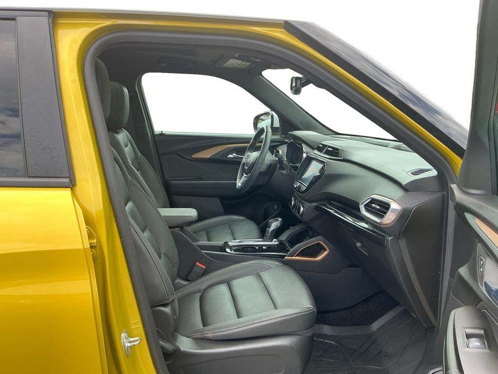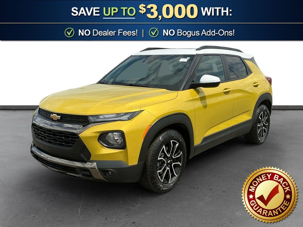 2023 Chevrolet TrailBlazer ACTIV Nitro Yellow Metallic ACTIV FWD CVT 1.3L Ecotec Turbo DOHC SIDI w/VVT 1 Type-A & 1 Type-C USB Charging-Only Ports, 120-Volt Power Outlet, 2-Way Adjustable Front Head Restraints, 2-Way Power Driver Lumbar Seat Adjuster, 4-Way Manual Front Passenger Seat Adjuster, 4-Wheel Disc Brakes, 4.2" Diagonal Multi-Color Driver Info Center, 5.45 Axle Ratio, 6 Speakers, 6-Speaker Audio System Feature, 7" Diagonal Color Touchscreen, 8-Way Power Driver Seat Adjuster, 8" Diagonal Color Touchscreen Display, ABS brakes, Adaptive Cruise Control, Air Conditioning, Alloy wheels, AM/FM radio: SiriusXM, Auto High-beam Headlights, Bose Premium 7-Speaker Audio System Feature, Brake assist, Bumpers: body-color, Cabin Humidity Sensor, Cargo Mat, Compass, Convenience Package, Delay-off headlights, Driver & Front Passenger Illuminated Vanity Mirrors, Driver Confidence Package, Driver door bin, Driver vanity mirror, Dual front impact airbags, Dual front side impact airbags, Dual-Pane Panoramic Power Sunroof, Electronic Stability Control, Emergency communication system: OnStar and Chevrolet connected services capable, Exterior Parking Camera Rear, Flat-Folding Front Passenger Seatback, Front & Rear All-Weather Floor Liners (LPO), Front anti-roll bar, Front Bucket Seats, Front Center Armrest, Front fog lights, Front License Plate Bracket, Front reading lights, Front wheel independent suspension, Fully automatic headlights, Hands-Free Power Programmable Liftgate, HD Radio, HD Rear Vision Camera, Heated door mirrors, Heated Driver & Front Passenger Seats, Heated front seats, Heated Steering Wheel, Heated steering wheel, Illuminated entry, Inside Rear-View Auto-Dimming Mirror, Knee airbag, Lane Change Alert w/Side Blind Zone Alert, Leather Shift Knob, Leather steering wheel, Leatherette Seat Trim, LED Headlamps, Low tire pressure warning, Memory Card Receptacle, Not Equipped w/Rear Park Assist (060), Occupant sensing airbag, Overhead airbag, Overhead console, Panic alarm, Passenger door bin, Passenger vanity mirror, Power door mirrors, Power driver seat, Power steering, Power windows, Preferred Equipment Group 1SA, Radio data system, Radio: Chevrolet Infotainment 3 Plus System, Radio: Chevrolet Infotainment 3 System, Rear Cross Traffic Alert, Rear Park Assist, Rear seat center armrest, Rear side impact airbag, Rear window defroster, Rear window wiper, Remote keyless entry, Ride & Handling Suspension, Security system, Single-Zone Auto Climate Control Air Conditioning, SiriusXM Radio, SiriusXM w/360L, Speed control, Split folding rear seat, Spoiler, Steering wheel mounted audio controls, Summit White Two-Tone Roof, Sun & Liftgate Package, Tachometer, Technology Package, Telescoping steering wheel, Tilt steering wheel, Traction control, Trip computer, Variably intermittent wipers, Wheels: 17" High Gloss Black Machined Aluminum, Wireless Apple CarPlay/Android Auto, Wireless Charging.