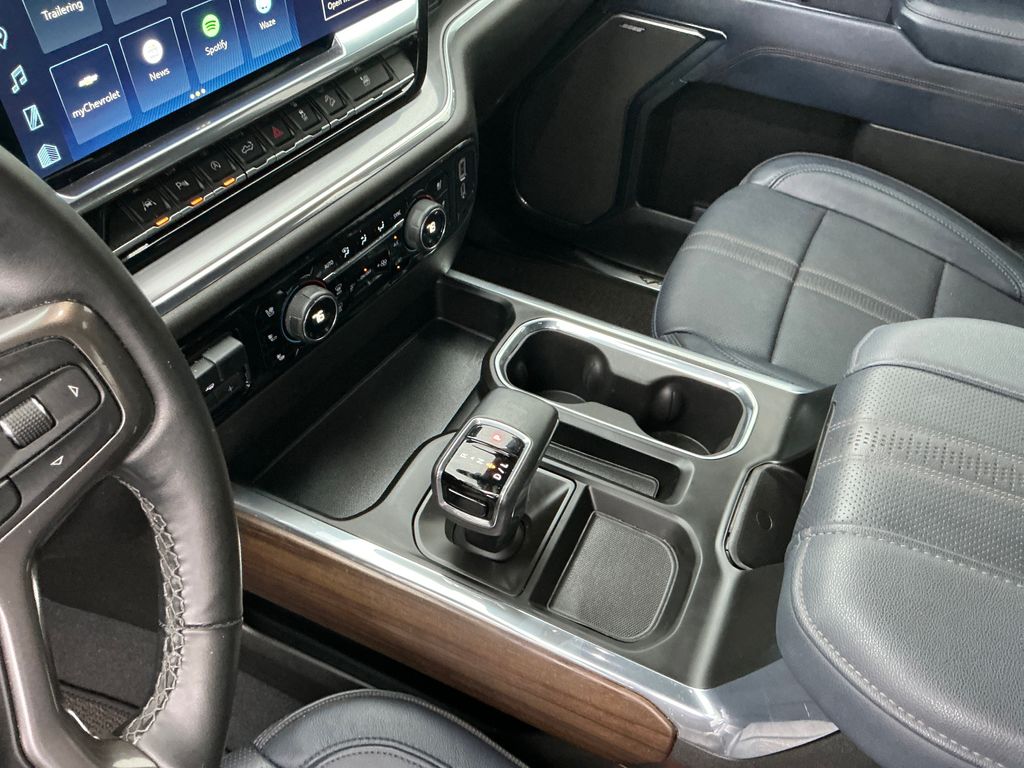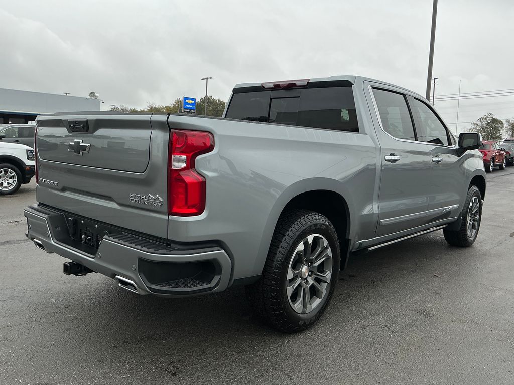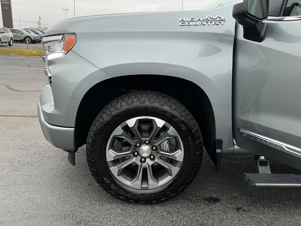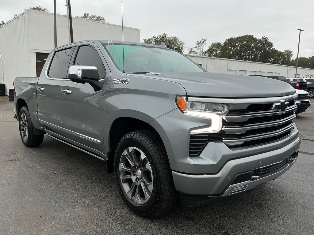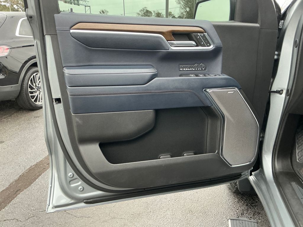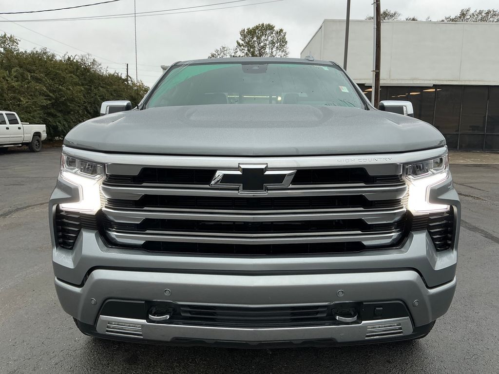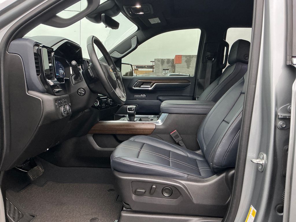 2024 Chevrolet Silverado 1500 High Country Sterling Gray Metallic High Country 4WD 10-Speed Automatic 3.0L I6 10-Speed Automatic, 4WD, Jet Black/Nightshift Blue Leather, 10-Way Power Driver Seat w/Lumbar, 10-Way Power Passenger Seat Adjuster w/Lumbar, 12.3" Multicolor Reconfigurable Digital Display, 120-Volt Bed Mounted Power Outlet, 120-Volt Interior Power Outlet, 15" Diagonal Multicolor Head-Up Display, 170 Amp Alternator, 2 USB Data Ports, 220 Amp Alternator, 2nd Row Heated Outboard Seats, 3.23 Rear Axle Ratio, 4-Wheel Disc Brakes, 7 Speakers, ABS brakes, Adaptive Cruise Control, Air Conditioning, All-Weather Floor Liner (LPO) (AAK), Alloy wheels, AM/FM radio: SiriusXM with 360L, Auto High-beam Headlights, Auto-dimming door mirrors, Auto-Dimming Inside Rear-View Mirror, Auto-dimming Rear-View mirror, Auto-Locking Rear Differential, Automatic temperature control, Bed View Camera, Bluetooth® For Phone, Body-Color Painted Mirror Caps, Bodyside moldings, Brake assist, Bumpers: body-color, Chevrolet Connected Access Capable, Chevytec Spray-On Black Bedliner, Chrome Assist Steps, Chrome Recovery Hooks, Color-Keyed Carpeting Floor Covering, Compass, Deep-Tinted Glass, Delay-off headlights, Driver door bin, Driver Memory, Driver vanity mirror, Dual Exhaust w/Polished Outlets, Dual front impact airbags, Dual front side impact airbags, Dual Rear USB Ports (Charge Only), Electric Rear-Window Defogger, Electrical Steering Column Lock, Electronic Stability Control, Electronic Transmission Range Selector Shifter, Engine Block Heater, Enhanced Automatic Emergency Braking, EZ Lift Power Lock & Release Tailgate, Floor Mounted Center Console, Following Distance Indicator, Forward Collision Alert, Front anti-roll bar, Front Bucket Seats, Front Carpeted Floor Mats, Front Center Armrest, Front dual zone A/C, Front fog lights, Front LED Fog Lamps, Front Pedestrian Braking, Front Rain-Sensing Wipers, Front reading lights, Front wheel independent suspension, Fully automatic headlights, Garage door transmitter, Genuine wood console insert, Genuine wood dashboard insert, Genuine wood door panel insert, HD Surround Vision, Heated door mirrors, Heated Driver & Front Outboard Passenger Seats, Heated front seats, Heated rear seats, Heated Steering Wheel, Heated steering wheel, Heavy-Duty Air Filter, High Capacity Suspension Package, Hill Descent Control, Hitch Guidance, Hitch Guidance w/Hitch View, Illuminated entry, In-Vehicle Trailering System App, Integrated Trailer Brake Controller, IntelliBeam Automatic High Beam On/Off, Keyless Open & Start, Lane Keep Assist w/Lane Departure Warning, LED Cargo Area Lighting, Low tire pressure warning, Memory seat, Multi-Flex Tailgate, Multi-Flex Tailgate Step Lights (LPO), Occupant sensing airbag, Off-Road Suspension, OnStar & Chevrolet Connected Services Capable, Outside Heated Power-Adjustable Mirrors, Outside temperature display, Overhead airbag, Overhead console, Panic alarm, Passenger door bin, Passenger vanity mirror, Perforated Leather Seat Trim, Perimeter Lighting, Power door mirrors, Power driver seat, Power Front Passenger Windows w/Express Up/Down, Power Front Windows w/Driver Express Up/Down, Power passenger seat, Power Rear Windows w/Express Down, Power Sliding Rear Window w/Rear Defogger, Power steering, Power Sunroof, Power Tailgate, Power Tilt & Telescoping Steering Column, Power windows, Preferred Equipment Group 3LZ, Premium audio system: Chevrolet Infotainment 3 Premium, Premium Bose 7-Speaker Sound System, Radio data system, Radio: Chevrolet Infotainment 3 Premium System, Rain sensing wipers, Rear Camera Mirror, Rear Carpeted Floor Mats, Rear Cross Traffic Braking, Rear Pedestrian Alert, Rear reading lights, Rear seat center armrest, Rear step bumper, Rear Wheelhouse Liners, Rear window defroster, Remote keyless entry, Remote Vehicle Starter System, Safety Alert Seat, Security system, SiriusXM w/360L, Speed control, Speed-sensing steering, Split folding rear seat, Standard Tailgate, Steering W