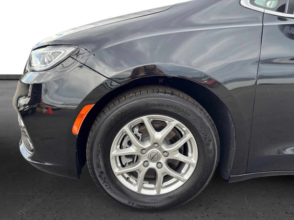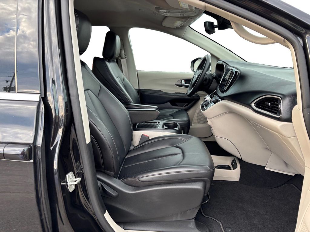 2023 Chrysler Pacifica Touring L Brilliant Black Crystal Pearlcoat Touring L FWD 9-Speed 948TE Automatic 3.6L V6 24V VVT 10.1" Touchscreen Display, 17" x 7.0" Aluminum Wheels, 3.25 Axle Ratio, 3rd row seats: split-bench, 4-Wheel Disc Brakes, 6 Speakers, ABS brakes, Air Conditioning, Alloy wheels, AM/FM radio: SiriusXM, Apple CarPlay, Apple CarPlay/Android Auto, Audio memory, Automatic temperature control, Black Seats, Brake assist, Bumpers: body-color, Caprice Leatherette Bucket Seats, Compass, Delay-off headlights, Disassociated Touchscreen Display, Driver door bin, Driver vanity mirror, Driver's Seat Mounted Armrest, Dual front impact airbags, Dual front side impact airbags, Electronic Stability Control, Four wheel independent suspension, Front anti-roll bar, Front Bucket Seats, Front dual zone A/C, Front Fascia Air Deflectors, Front fog lights, Front reading lights, Fully automatic headlights, Google Android Auto, GPS Antenna Input, Heated door mirrors, Heated front seats, Heated steering wheel, Illuminated entry, Integrated Active Noise Cancellation, Integrated Center Stack Radio, Knee airbag, Low tire pressure warning, Memory seat, Occupant sensing airbag, Outside temperature display, Overhead airbag, Overhead console, Panic alarm, ParkView Rear Back-Up Camera, Passenger door bin, Passenger seat mounted armrest, Passenger vanity mirror, Power door mirrors, Power driver seat, Power Liftgate, Power steering, Power windows, Quick Order Package 27L, Radio data system, Radio: Uconnect 5 w/10.1" Display, Rain sensing wipers, Rear air conditioning, Rear reading lights, Rear window defroster, Rear window wiper, Reclining 3rd row seat, Remote keyless entry, Security system, Speed control, Split folding rear seat, Spoiler, Steering wheel mounted audio controls, Tachometer, Telescoping steering wheel, Tilt steering wheel, Touring Suspension, Traction control, Trip computer, Turn signal indicator mirrors, USB Host Flip, Variably intermittent wipers, Voltmeter.