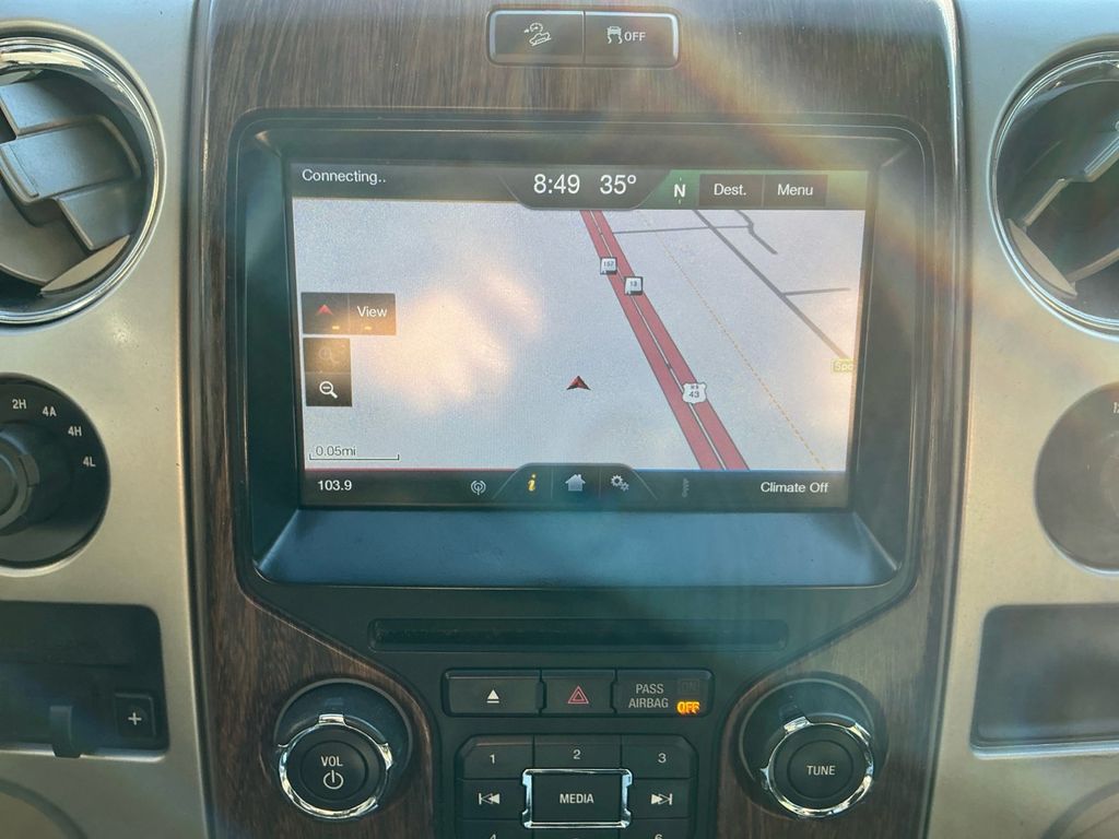 2013 Ford F-150 Lariat White Platinum Clearcoat Metallic Lariat 4WD 6-Speed Automatic Electronic 3.5L V6 4WD, 18" Bright Aluminum Wheels, 18" Chrome-Clad Aluminum Wheels, 20" Chrome-Clad Aluminum Wheels, 4 Speakers, 4-Wheel Disc Brakes, 4x4 Off-Road Decal, 6" Chrome Angular Step Bars, ABS brakes, Adjustable pedals, Air Conditioning, Alloy wheels, AM/FM radio: SiriusXM, Auto-dimming door mirrors, Auto-dimming Rear-View mirror, Automatic temperature control, Body-Color Door Handles w/Chrome Strap, Bumpers: chrome, CD player, Chrome Exhaust Tip, Compass, Delay-off headlights, Driver door bin, Driver vanity mirror, Dual front impact airbags, Dual front side impact airbags, Electronic Stability Control, Equipment Group 502A Luxury, Front & Rear Off-Road Tuned Shock Absorbers, Front anti-roll bar, Front Center Armrest w/Storage, Front dual zone A/C, Front fog lights, Front License Plate Bracket, Front reading lights, Front wheel independent suspension, Fully automatic headlights, GVWR: 7,350 lbs Payload Package, Heated door mirrors, Heated front seats, Heated Power Exterior Mirrors w/Memory, Hill Descent Control, Illuminated entry, Lariat Chrome Package, Leather steering wheel, Leather-Trimmed 40/20/40 Front Seat, Low tire pressure warning, Memory seat, Occupant sensing airbag, Off-Road Package, Outside temperature display, Overhead airbag, Overhead console, Panic alarm, Passenger door bin, Passenger vanity mirror, Pedal memory, Power door mirrors, Power driver seat, Power passenger seat, Power steering, Power windows, Radio data system, Radio: AM/FM Stereo/Clock/Single-CD, Rear reading lights, Rear seat center armrest, Rear step bumper, Rear window defroster, Remote keyless entry, Security system, SiriusXM Satellite Radio, Speed control, Speed-sensing steering, Split folding rear seat, Spray-In Bed Liner (Pre-Installed), Steering wheel mounted audio controls, SYNC w/MyFord Touch, Tachometer, Tailgate Step, Tilt steering wheel, Traction control, Trip computer, Turn signal indicator mirrors, Variably intermittent wipers, 4WD.