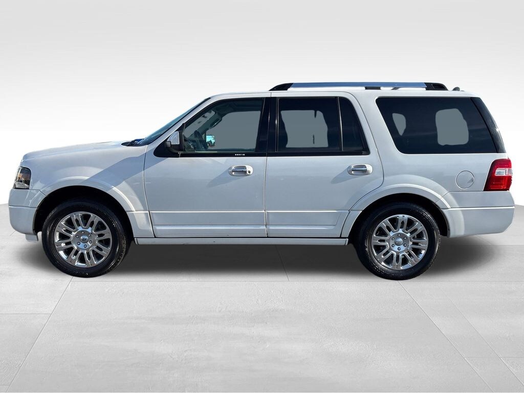 2014 Ford Expedition Limited White Platinum Clearcoat Metallic Limited RWD 6-Speed Automatic 5.4L V8 SOHC 24V FFV 18" Machined-Aluminum Wheels, 3.31 Axle Ratio, 3rd row seats: split-bench, 4-Wheel Disc Brakes, 7 Speakers, ABS brakes, Adjustable pedals, Air Conditioning, Alloy wheels, AM/FM radio: SiriusXM, Auto-dimming door mirrors, Auto-dimming Rear-View mirror, Automatic temperature control, Brake assist, Bumpers: body-color, CD player, Compass, Delay-off headlights, Driver door bin, Driver vanity mirror, Dual front impact airbags, Dual front side impact airbags, Electronic Stability Control, Exterior Parking Camera Rear, Four wheel independent suspension, Front anti-roll bar, Front Bucket Seats, Front Center Armrest, Front dual zone A/C, Front fog lights, Front reading lights, Fully automatic headlights, Garage door transmitter, GVWR: 7,300 lbs Payload Package, Heated & Cooled Perforated Leather Fr Bucket Seats, Heated door mirrors, Heated front seats, Heated rear seats, Illuminated entry, Leather Shift Knob, Leather steering wheel, Low tire pressure warning, Memory seat, Occupant sensing airbag, Outside temperature display, Overhead airbag, Overhead console, Panic alarm, Passenger door bin, Passenger vanity mirror, Pedal memory, Power door mirrors, Power driver seat, Power Liftgate, Power passenger seat, Power steering, Power windows, Radio data system, Radio: Premium Sound System w/Single-CD/MP3 Player, Rain sensing wipers, Rear air conditioning, Rear anti-roll bar, Rear audio controls, Rear reading lights, Rear window defroster, Rear window wiper, Remote keyless entry, Roof rack, Security system, SiriusXM Satellite Radio, Speed control, Speed-sensing steering, Speed-Sensitive Wipers, Split folding rear seat, Steering wheel mounted audio controls, Subwoofer, SYNC Communications & Entertainment System, Tachometer, Tilt steering wheel, Traction control, Trip computer, Turn signal indicator mirrors, Variably intermittent wipers, Ventilated front seats, Voltmeter.