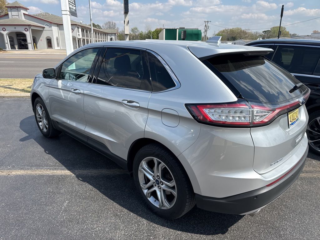 2016 Ford Edge Titanium Ingot Silver Titanium AWD 6-Speed Automatic with Select-Shift 3.5L V6 Ti-VCT AWD, 12 Speakers, 4-Wheel Disc Brakes, ABS brakes, Air Conditioning, Alloy wheels, AM/FM radio: SiriusXM, AM/FM Stereo w/Single CD Player, Auto-dimming Rear-View mirror, Automatic temperature control, Axle Ratio: 3.16, Brake assist, Bumpers: body-color, CD player, Compass, Delay-off headlights, Driver door bin, Driver vanity mirror, Dual front impact airbags, Dual front side impact airbags, Electronic Stability Control, Emergency communication system, Equipment Group 300A, Exterior Parking Camera Rear, Four wheel independent suspension, Front anti-roll bar, Front Bucket Seats, Front Center Armrest w/Storage, Front dual zone A/C, Front License Plate Bracket, Front reading lights, Fully automatic headlights, Garage door transmitter, Heated door mirrors, Heated front seats, Illuminated entry, Knee airbag, Leather Shift Knob, Leather-Trimmed Heated Sport Bucket Seats, Low tire pressure warning, Memory seat, Occupant sensing airbag, Outside temperature display, Overhead airbag, Overhead console, Panic alarm, Passenger door bin, Passenger vanity mirror, Power door mirrors, Power driver seat, Power Liftgate, Power passenger seat, Power steering, Power windows, Premium audio system: Sony, Rear anti-roll bar, Rear Parking Sensors, Rear reading lights, Rear seat center armrest, Rear window defroster, Rear window wiper, Remote keyless entry, Security system, SiriusXM Radio, Speed control, Speed-Sensitive Wipers, Split folding rear seat, Spoiler, Steering wheel mounted audio controls, SYNC 3, Tachometer, Telescoping steering wheel, Tilt steering wheel, Traction control, Trip computer, Turn signal indicator mirrors, Variably intermittent wipers, Wheels: 19" Aluminum Premium Painted Luster Nickel, AWD.