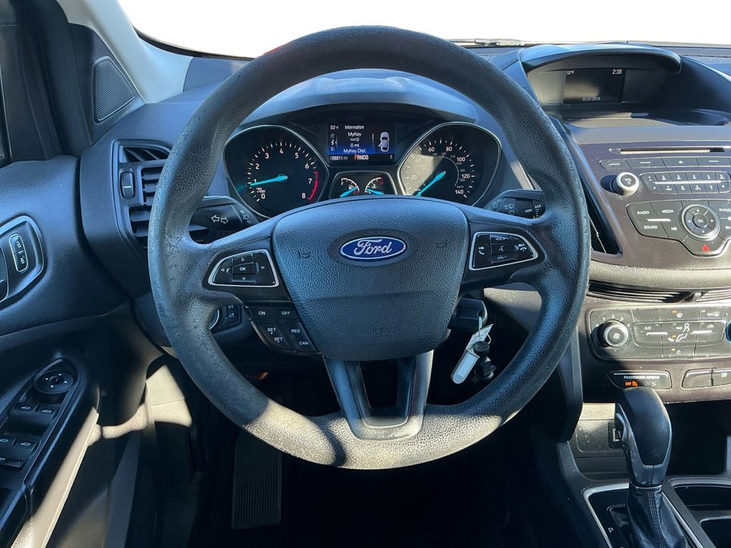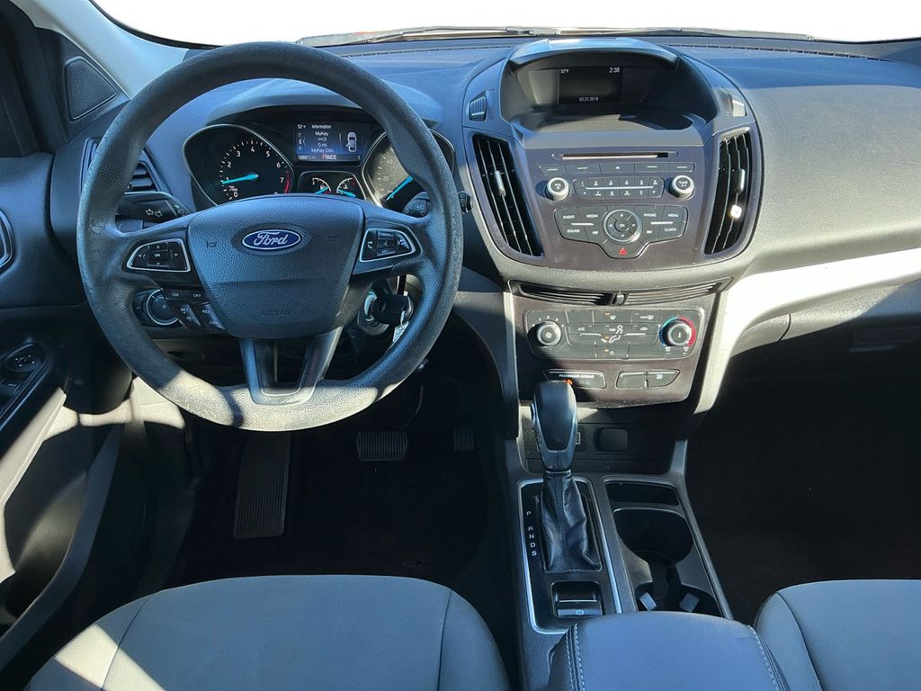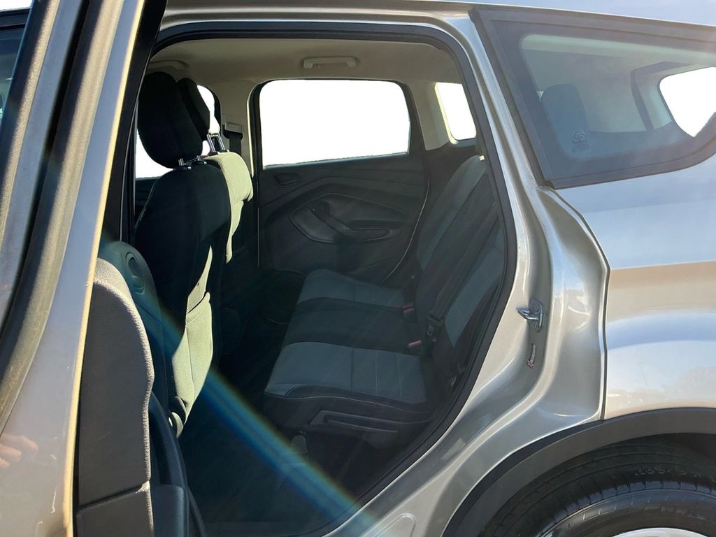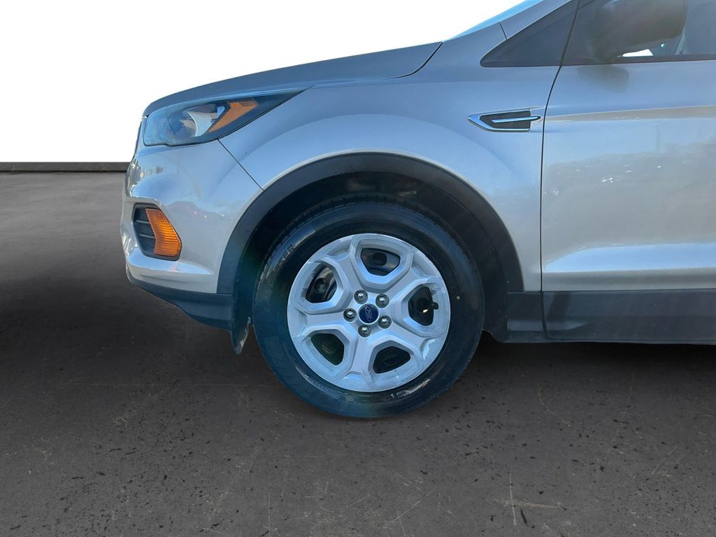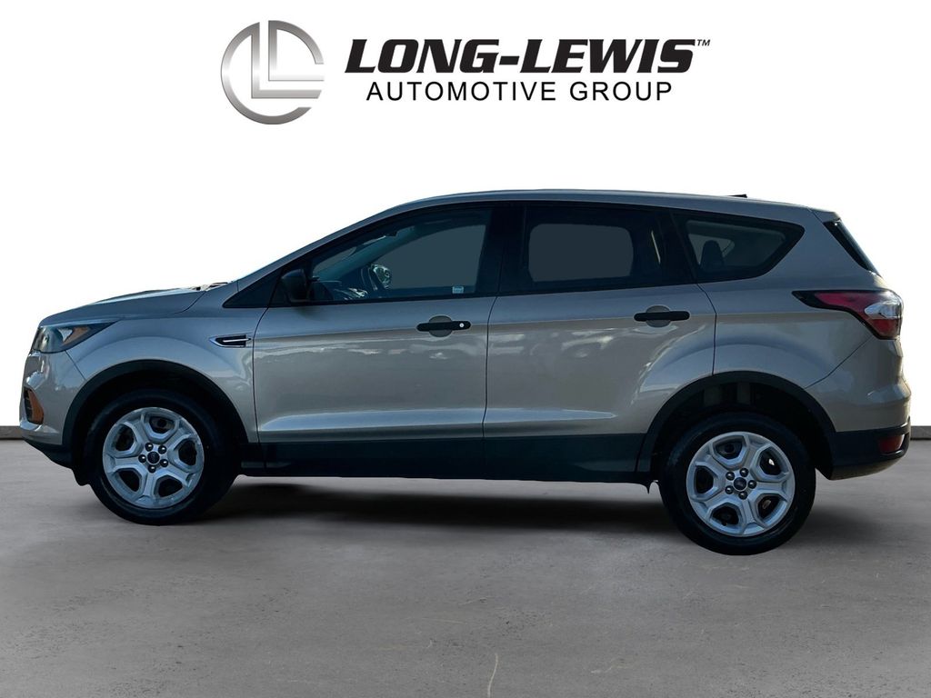 2018 Ford Escape S White Gold Metallic S FWD 6-Speed Automatic 2.5L i-VCT 3.51 Axle Ratio, 4-Wheel Disc Brakes, 6 Speakers, ABS brakes, Air Conditioning, AM/FM radio, Brake assist, Bumpers: body-color, CD player, Cloth Front Bucket Seats, Compass, Delay-off headlights, Driver door bin, Driver vanity mirror, Dual front impact airbags, Dual front side impact airbags, Electronic Stability Control, Emergency communication system: 911 Assist, Equipment Group 100A, Exterior Parking Camera Rear, Four wheel independent suspension, Front anti-roll bar, Front Bucket Seats, Front Center Armrest, Front License Plate Bracket, Front reading lights, Fully automatic headlights, Illuminated entry, Knee airbag, Low tire pressure warning, Occupant sensing airbag, Outside temperature display, Overhead airbag, Overhead console, Panic alarm, Passenger door bin, Passenger vanity mirror, Power door mirrors, Power steering, Power windows, Radio data system, Radio: AM/FM Stereo w/Single-CD/MP3 Player, Rear anti-roll bar, Rear window defroster, Rear window wiper, Remote keyless entry, Speed control, Speed-sensing steering, Split folding rear seat, Steering wheel mounted audio controls, SYNC Communications & Entertainment System, Tachometer, Telescoping steering wheel, Tilt steering wheel, Traction control, Trip computer, Variably intermittent wipers, Wheels: 17" Steel w/Sparkle Silver-Painted Covers.