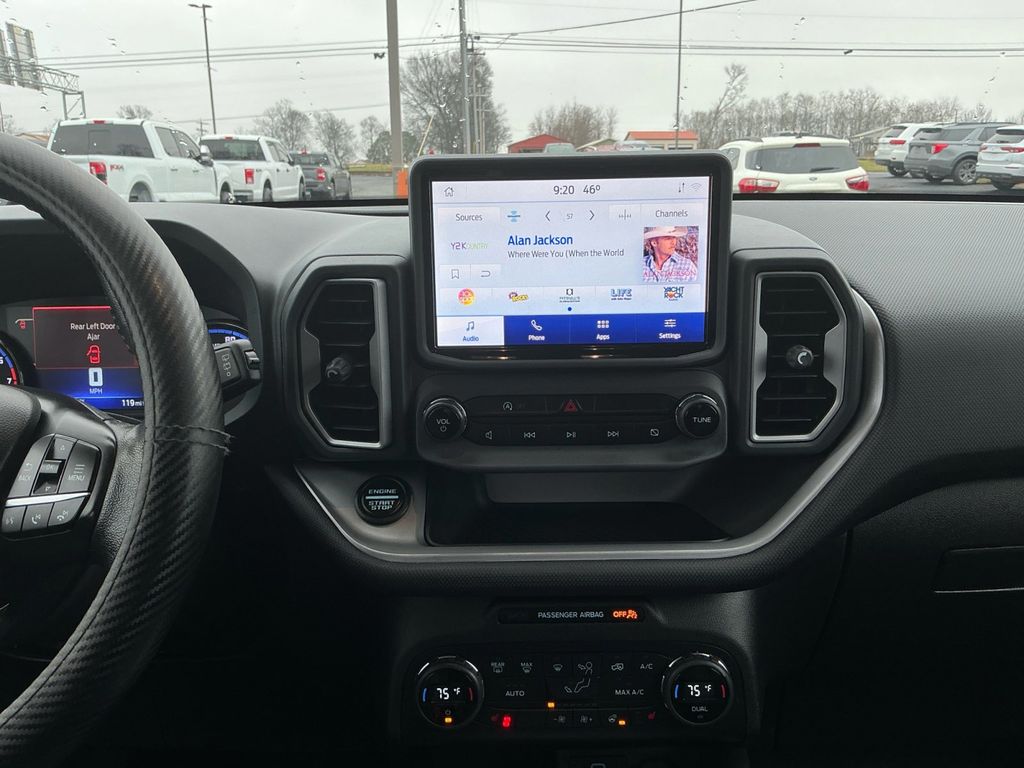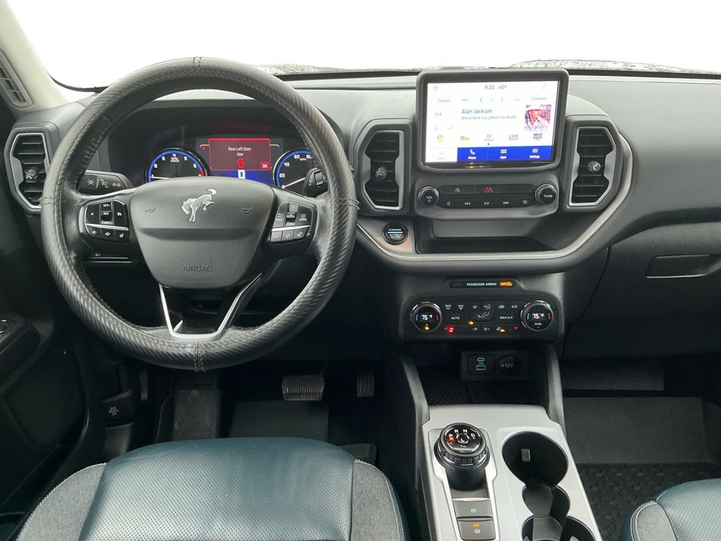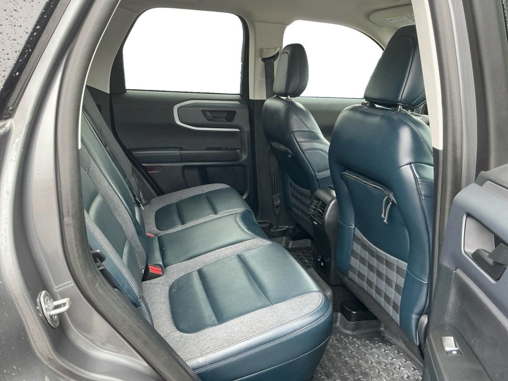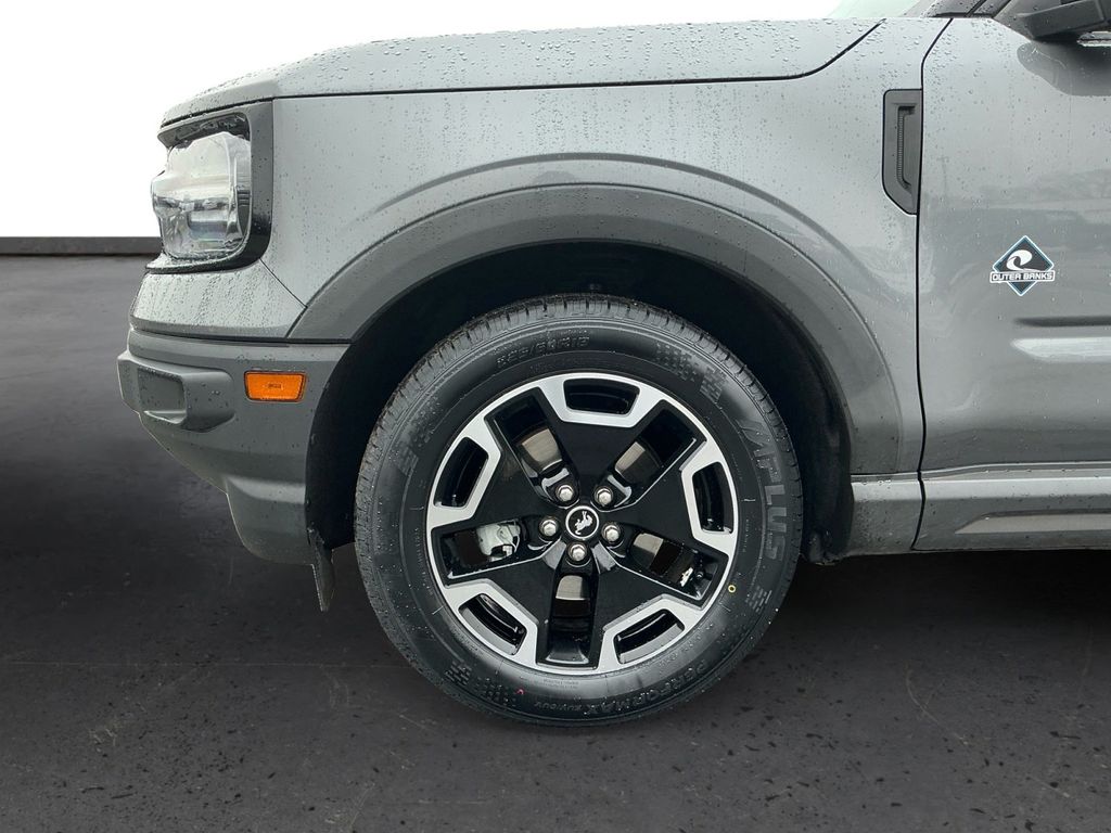 2021 Ford Bronco Sport Outer Banks Gray Outer Banks 4WD 8-Speed Automatic 1.5L EcoBoost 3.80 Axle Ratio, 4-Wheel Disc Brakes, 6 Speakers, ABS brakes, Air Conditioning, Alloy wheels, AM/FM radio: SiriusXM, AM/FM Stereo, Auto High-beam Headlights, Auto-dimming Rear-View mirror, Automatic temperature control, Brake assist, Compass, Delay-off headlights, Driver door bin, Driver vanity mirror, Dual front impact airbags, Dual front side impact airbags, Electronic Stability Control, Emergency communication system: SYNC 3 911 Assist, Equipment Group 300A, Exterior Parking Camera Rear, Four wheel independent suspension, Front & Rear Floor Liners w/Carpet Mats, Front anti-roll bar, Front Bucket Seats, Front Center Armrest, Front dual zone A/C, Front fog lights, Front reading lights, Fully automatic headlights, Heated door mirrors, Heated front seats, Heated steering wheel, Illuminated entry, Knee airbag, Leather Trimmed Heated Sport Contour Bucket Seats, Low tire pressure warning, Occupant sensing airbag, Outside temperature display, Overhead airbag, Overhead console, Panic alarm, Passenger door bin, Passenger vanity mirror, Power door mirrors, Power driver seat, Power passenger seat, Power steering, Power windows, Radio data system, Rain sensing wipers, Rear anti-roll bar, Rear Parking Sensors, Rear reading lights, Rear seat center armrest, Rear window defroster, Rear window wiper, Remote keyless entry, Roof rack: rails only, Security system, SiriusXM Radio, Speed control, Speed-sensing steering, Speed-Sensitive Wipers, Split folding rear seat, Steering wheel mounted audio controls, SYNC 3 Communications & Entertainment System, SYNC 3/Apple CarPlay/Android Auto, Tachometer, Telescoping steering wheel, Tilt steering wheel, Traction control, Trip computer, Variably intermittent wipers, Wheels: 18" Ebony Black-Painted Aluminum.