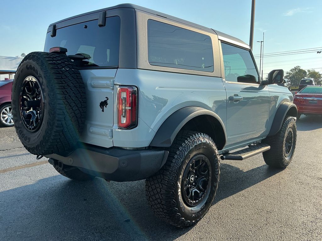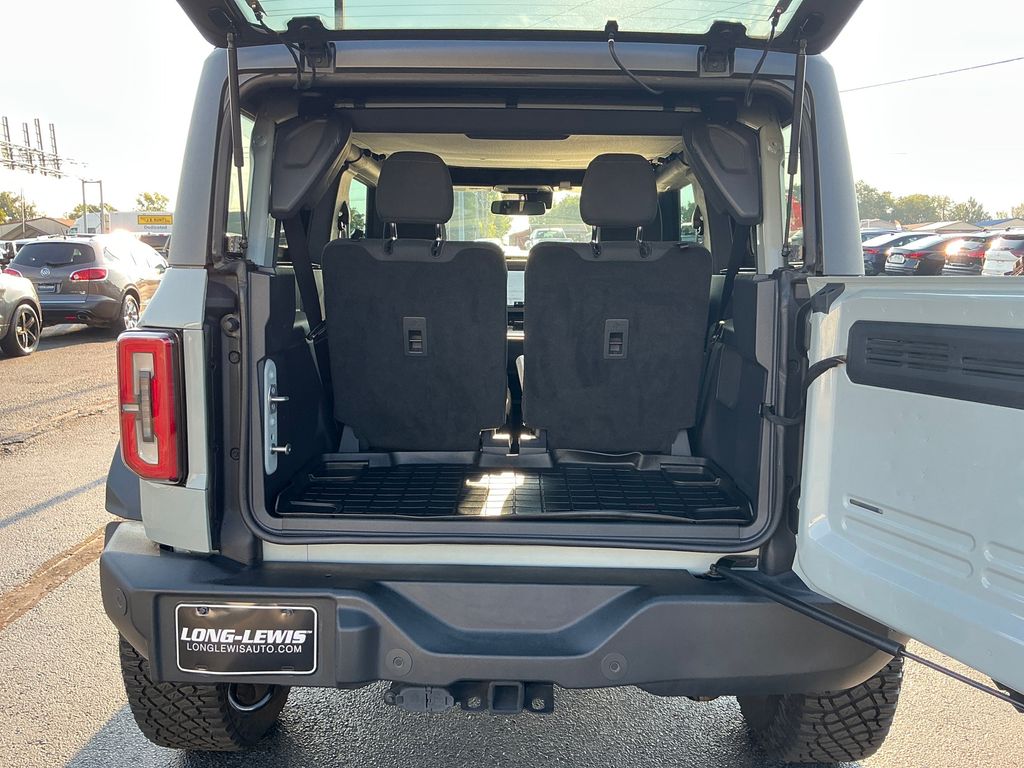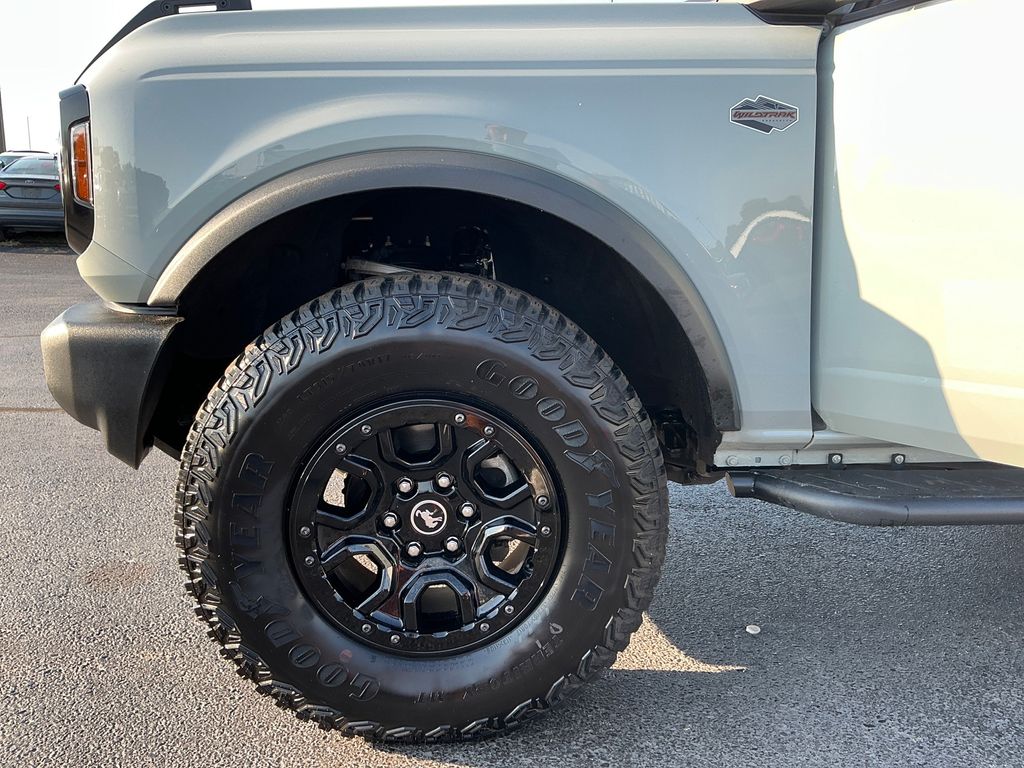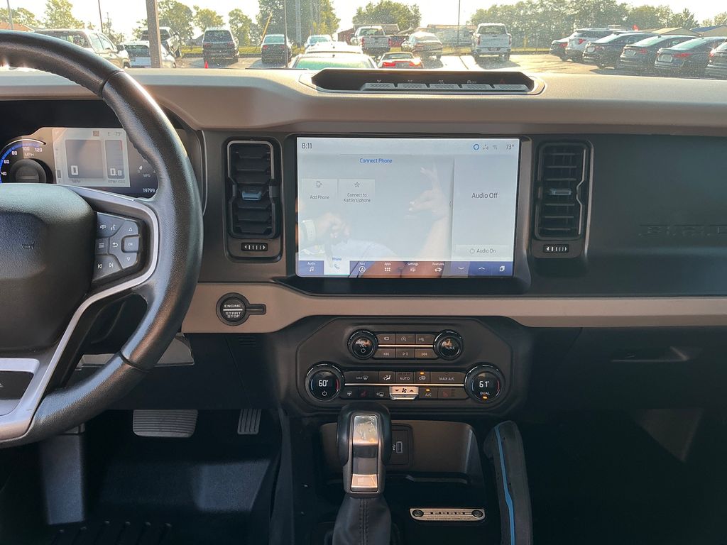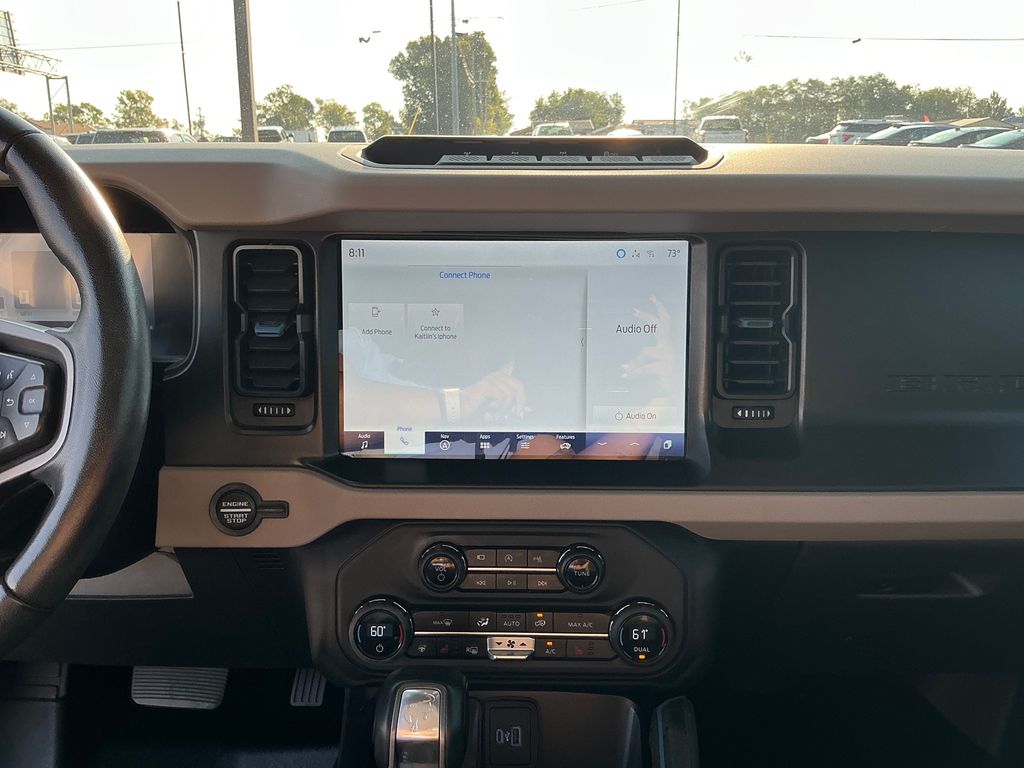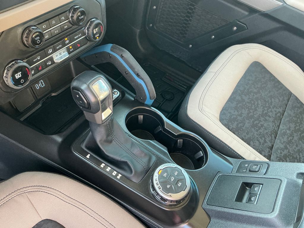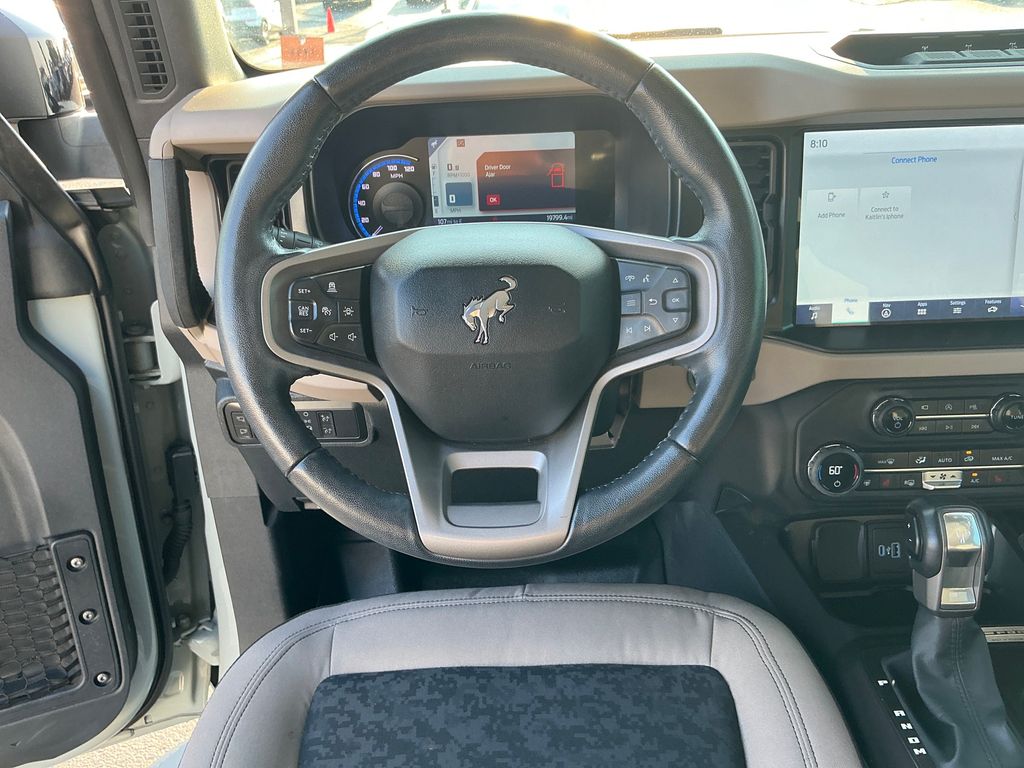 2021 Ford Bronco Wildtrak Cactus Gray Wildtrak 4WD 10-Speed Automatic 2.7L EcoBoost V6 4-Wheel Disc Brakes, 6 Speakers, ABS brakes, Air Conditioning, AM/FM radio: SiriusXM with 360L, AM/FM Stereo, Auto High-beam Headlights, Brake assist, Compass, Convertible HardTop, Convertible roof lining, Delay-off headlights, Driver door bin, Driver vanity mirror, Dual front impact airbags, Dual front side impact airbags, Electronic Stability Control, Emergency communication system: 911 Assist, Exterior Parking Camera Rear, Front anti-roll bar, Front Bucket Seats, Front Center Armrest, Front reading lights, Front wheel independent suspension, Fully automatic headlights, Glass rear window, Heated door mirrors, Illuminated entry, Integrated roll-over protection, Low tire pressure warning, Occupant sensing airbag, Outside temperature display, Overhead airbag, Overhead console, Panic alarm, Passenger door bin, Passenger vanity mirror, Power door mirrors, Power steering, Power windows, Radio data system, Rear window defroster, Rear window wiper, Remote keyless entry, Security system, SiriusXM Radio w/360L, Speed control, Split folding rear seat, Steering wheel mounted audio controls, SYNC 4, Tachometer, Telescoping steering wheel, Tilt steering wheel, Traction control, Trip computer, Variably intermittent wipers, Wheels: 17" Black High Gloss-Painted Aluminum.