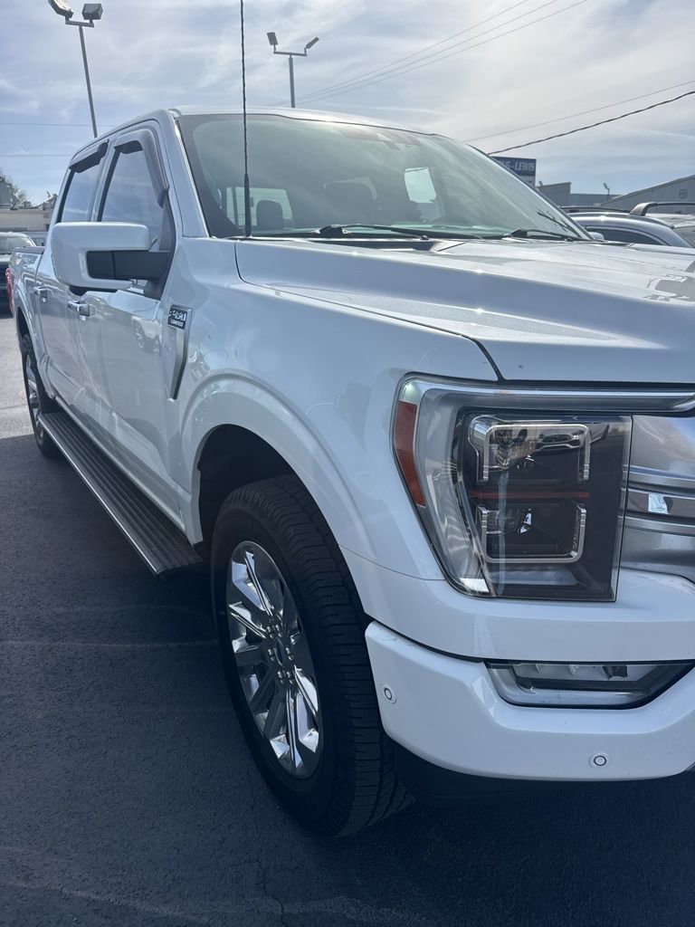 2021 Ford F-150 Limited White Limited 4WD 10-Speed Automatic 3.5L V6 EcoBoost 4WD, 18 Speakers, 22" Polished Aluminum Wheels, 4-Wheel Disc Brakes, ABS brakes, Adaptive suspension, Adjustable pedals, Air Conditioning, Alloy wheels, AM/FM radio: SiriusXM with 360L, Auto High-beam Headlights, Auto tilt-away steering wheel, Auto-dimming door mirrors, Auto-dimming Rear-View mirror, Automatic temperature control, Brake assist, Bumpers: body-color, Compass, Delay-off headlights, Driver door bin, Driver vanity mirror, Dual front impact airbags, Dual front side impact airbags, Electronic Stability Control, Emergency communication system: SYNC 4 911 Assist, Equipment Group 900A Standard, Extended Range 36 Gallon Fuel Tank, Exterior Parking Camera Rear, Front anti-roll bar, Front Bucket Seats, Front Center Armrest, Front dual zone A/C, Front fog lights, Front reading lights, Front wheel independent suspension, Fully automatic headlights, Garage door transmitter, GVWR: 7,050 lbs Payload Package, Heated door mirrors, Heated front seats, Heated rear seats, Heated steering wheel, Illuminated entry, Interior Work Surface, Low tire pressure warning, Memory seat, Navigation system: Connected Navigation (90-Day Trial), Occupant sensing airbag, Outside temperature display, Overhead airbag, Overhead console, Panic alarm, Partitioned Lockable Fold-Flat Storage, Passenger door bin, Passenger vanity mirror, Pedal memory, Power door mirrors, Power driver seat, Power moonroof, Power passenger seat, Power steering, Power windows, Radio data system, Radio: B&O Unleashed Sound System by Bang & Olufsen, Rain sensing wipers, Rear reading lights, Rear seat center armrest, Rear step bumper, Rear window defroster, Remote keyless entry, Security system, Speed control, Speed-sensing steering, Split folding rear seat, Steering wheel memory, Steering wheel mounted audio controls, Tachometer, Telescoping steering wheel, Tilt steering wheel, Traction control, Tray Style Floor Liner, Trip computer, Turn signal indicator mirrors, Unique Leather Bucket Seats, Variably intermittent wipers, Ventilated front seats, Voltmeter, 4WD.
