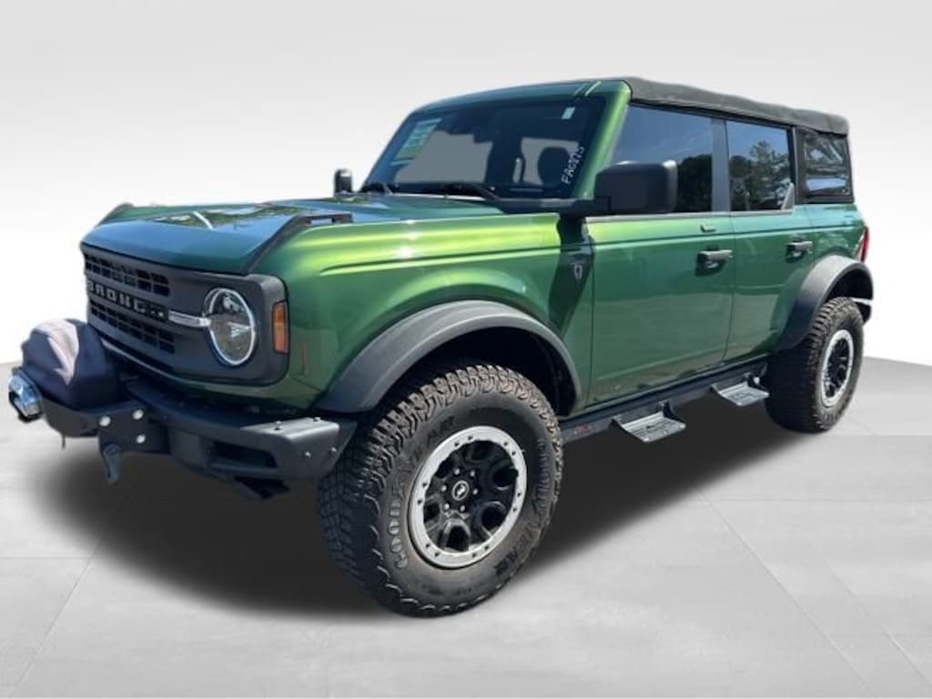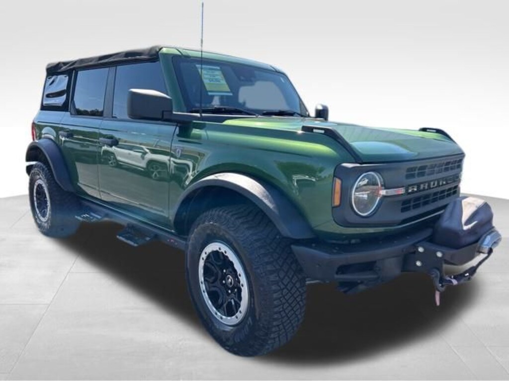 2022 Ford Bronco Base Green Metallic 4WD 10-Speed Automatic 2.7L EcoBoost V6 4-Wheel Disc Brakes, 6 Speakers, ABS brakes, Air Conditioning, AM/FM radio: SiriusXM with 360L, AM/FM Stereo, Auto High-beam Headlights, Brake assist, Compass, Delay-off headlights, Driver door bin, Driver vanity mirror, Dual front impact airbags, Dual front side impact airbags, Electronic Stability Control, Emergency communication system: 911 Assist, Exterior Parking Camera Rear, Ford Performance Heavy-Duty Modular Front Bumper, Front anti-roll bar, Front Bucket Seats, Front Center Armrest, Front License Plate Bracket, Front reading lights, Front wheel independent suspension, Fully automatic headlights, Heated door mirrors, Illuminated entry, Integrated roll-over protection, Keyless Entry Keypad, Low tire pressure warning, Occupant sensing airbag, Outside temperature display, Overhead airbag, Overhead console, Panic alarm, Passenger door bin, Passenger vanity mirror, Power door mirrors, Power steering, Power windows, Radio data system, Remote keyless entry, Security system, SiriusXM Radio w/360L, Speed control, Split folding rear seat, Steering wheel mounted audio controls, SYNC 4, Tachometer, Telescoping steering wheel, Tilt steering wheel, Traction control, Trip computer, Variably intermittent wipers, Wheels: 17" Black High Gloss-Painted Aluminum.