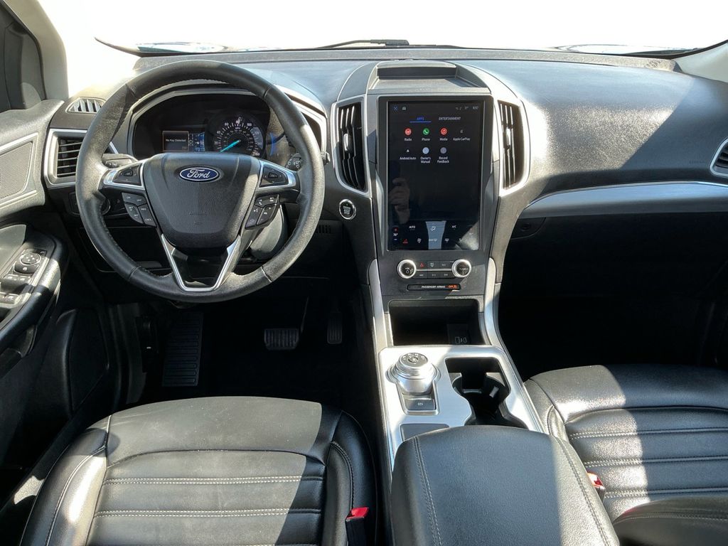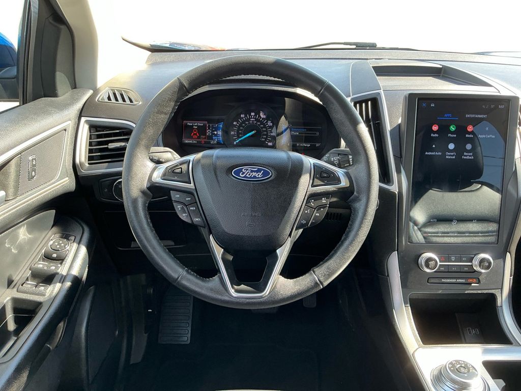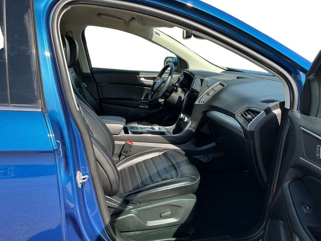 2022 Ford Edge SEL Blue Metallic SEL AWD 8-Speed Automatic EcoBoost 2.0L I4 GTDi DOHC Turbocharged VCT AWD, 3.80 Axle Ratio, 4-Wheel Disc Brakes, 6 Speakers, ABS brakes, ActiveX Seating Material Heated Bucket Seats, Air Conditioning, Alloy wheels, AM/FM radio: SiriusXM with 360L, Auto High-beam Headlights, Auto-dimming Rear-View mirror, Automatic temperature control, Brake assist, Bumpers: body-color, Compass, Delay-off headlights, Driver door bin, Driver vanity mirror, Dual front impact airbags, Dual front side impact airbags, Electronic Stability Control, Emergency communication system: SYNC 4 911 Assist, Equipment Group 201A, FordPass Connect, Four wheel independent suspension, Front anti-roll bar, Front Bucket Seats, Front Center Armrest w/Storage, Front dual zone A/C, Front License Plate Bracket, Front reading lights, Fully automatic headlights, Heated door mirrors, Heated front seats, Illuminated entry, Knee airbag, Low tire pressure warning, Occupant sensing airbag, Outside temperature display, Overhead airbag, Overhead console, Panic alarm, Passenger door bin, Passenger vanity mirror, Power door mirrors, Power driver seat, Power passenger seat, Power steering, Power windows, Radio: AM/FM Stereo/MP3 Capable, Rear anti-roll bar, Rear Parking Sensors, Rear reading lights, Rear seat center armrest, Rear window defroster, Rear window wiper, Remote keyless entry, SiriusXM w/360L, Speed control, Speed-Sensitive Wipers, Split folding rear seat, Spoiler, Steering wheel mounted audio controls, SYNC 4A w/Enhanced Voice Recognition, Tachometer, Telescoping steering wheel, Tilt steering wheel, Traction control, Trip computer, Variably intermittent wipers, Wheels: 18" Sparkle Silver-Painted Aluminum, AWD.