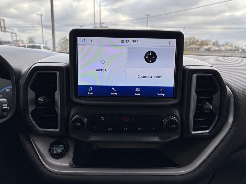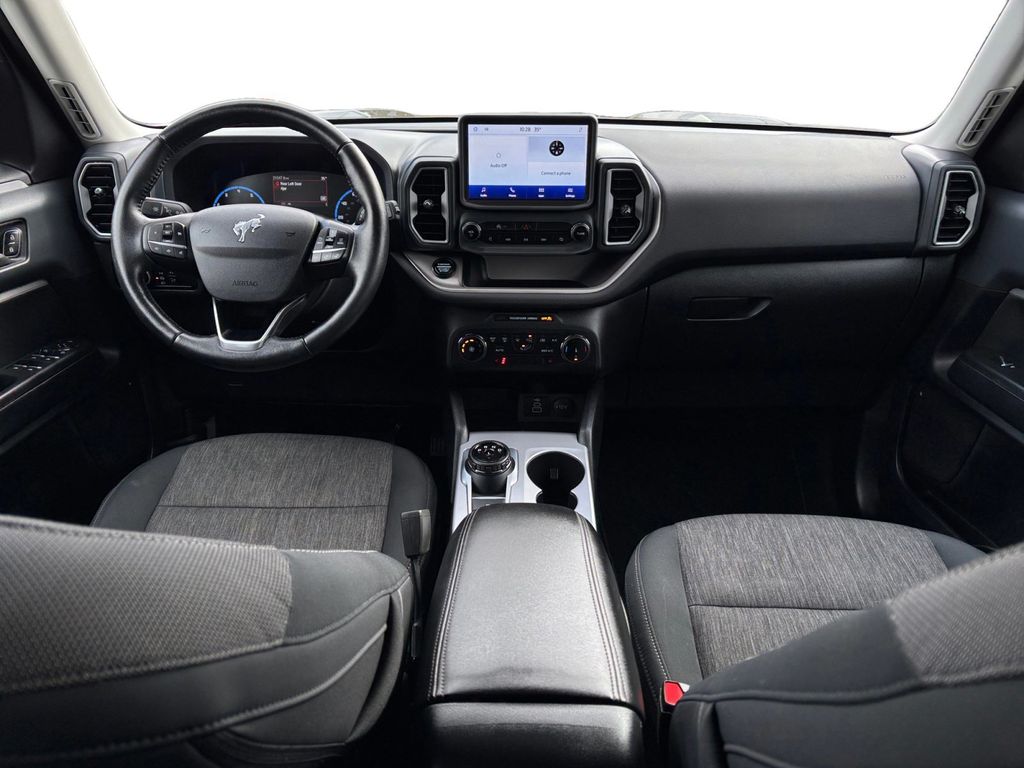 2023 Ford Bronco Sport Big Bend Shadow Black Big Bend 4WD 8-Speed Automatic 1.5L EcoBoost 3.80 Axle Ratio, 4-Wheel Disc Brakes, 4G LTE Wi-Fi Hotspot Credit, 6 Speakers, ABS brakes, Air Conditioning, Alloy wheels, AM/FM radio: SiriusXM, AM/FM Stereo, Auto High-beam Headlights, Automatic temperature control, Brake assist, Compass, Convenience Package, Delay-off headlights, Driver door bin, Driver vanity mirror, Dual front impact airbags, Dual front side impact airbags, Electronic Stability Control, Emergency communication system: SYNC 3 911 Assist, Equipment Group 200A, Four wheel independent suspension, Front anti-roll bar, Front Bucket Seats, Front Center Armrest, Front Driver & Passenger Seatback Zipper Pockets, Front License Plate Bracket, Front reading lights, Fully automatic headlights, Heated door mirrors, Heated Front Bucket Seats, Illuminated entry, Intelligent Access (Lock/Unlock), Knee airbag, Leather-Wrapped Steering Wheel, LED Fog Lamps, Low tire pressure warning, Occupant sensing airbag, Outside temperature display, Overhead airbag, Overhead console, Panic alarm, Passenger door bin, Passenger vanity mirror, Power door mirrors, Power steering, Power windows, Radio data system, Rear anti-roll bar, Rear Parking Sensors, Rear reading lights, Rear seat center armrest, Rear window defroster, Rear window wiper, Remote keyless entry, Security system, SiriusXM, Speed control, Speed-sensing steering, Speed-Sensitive Wipers, Split folding rear seat, Steering wheel mounted audio controls, SYNC 3 Communications & Entertainment System, SYNC 3/Apple CarPlay/Android Auto, Tachometer, Telescoping steering wheel, Tilt steering wheel, Traction control, Trip computer, Unique Cloth Front Bucket Seats, Universal Garage Door Opener (UGDO), Variably intermittent wipers, Wheels: 17" Carbonized Gray-Painted Aluminum, Wireless Charging Pad.