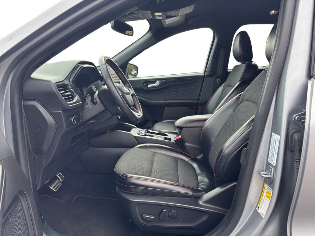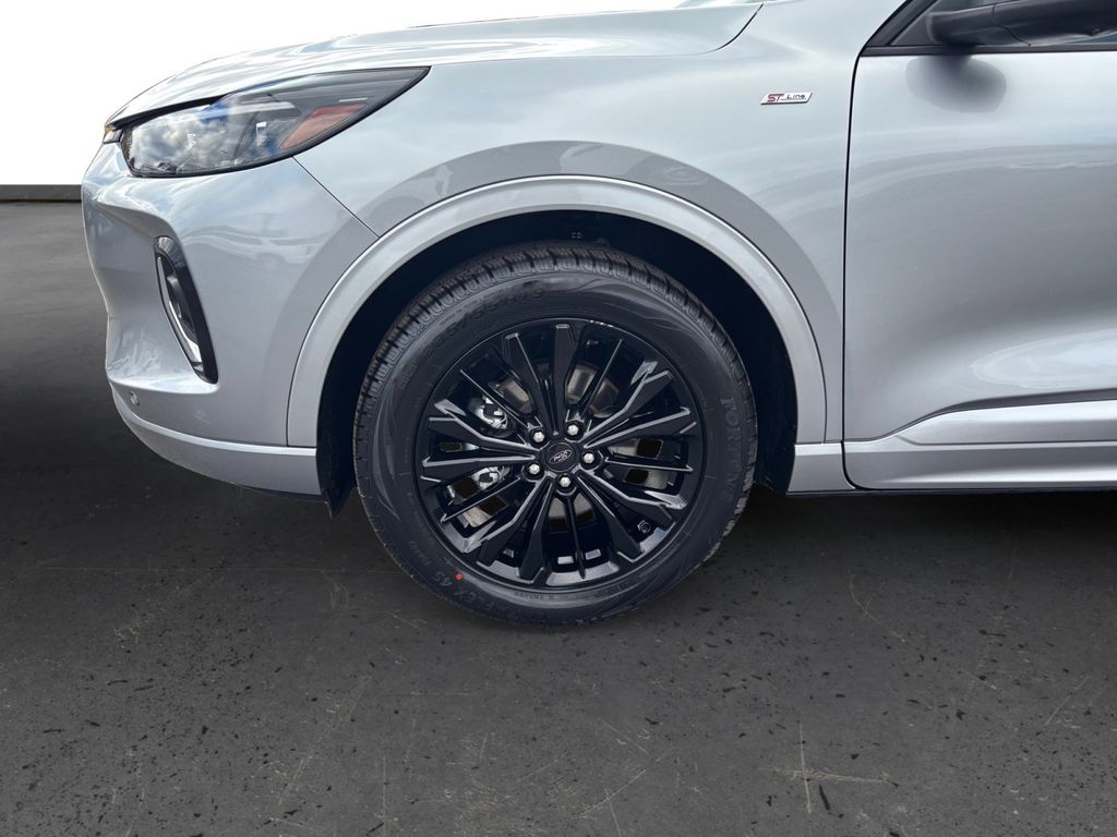 2023 Ford Escape ST-Line Elite Iconic Silver Metallic ST-Line Elite AWD 8-Speed Automatic EcoBoost 2.0L I4 GTDi DOHC Turbocharged VCT AWD, 2.91 Axle Ratio, 4-Wheel Disc Brakes, 6 Speakers, ABS brakes, Air Conditioning, Alloy wheels, AM/FM radio: SiriusXM, AM/FM Stereo, Auto High-beam Headlights, Auto-dimming Rear-View mirror, Automatic temperature control, Brake assist, Bumpers: body-color, Compass, Delay-off headlights, Driver door bin, Driver vanity mirror, Dual front impact airbags, Dual front side impact airbags, Electronic Fuel Door Release, Electronic Stability Control, Emergency communication system: SYNC 4 911 Assist, Equipment Group 501A, Exterior Parking Camera Rear, FordPass Connect, Four wheel independent suspension, Front anti-roll bar, Front Bucket Seats, Front Center Armrest, Front dual zone A/C, Front fog lights, Front reading lights, Fully automatic headlights, Garage door transmitter, Heated door mirrors, Heated front seats, Heated steering wheel, Heated Vinyl/Cloth Front Sport Contour Bucket Seats, Illuminated entry, Knee airbag, Low tire pressure warning, Memory seat, Navigation system: Connected Navigation, Neutral Towing Capability, Occupant sensing airbag, Outside temperature display, Overhead airbag, Overhead console, Panic alarm, Passenger door bin, Passenger vanity mirror, Pedestrian Alert Sounder, Power door mirrors, Power driver seat, Power Liftgate, Power passenger seat, Power steering, Power windows, Radio data system, Rain sensing wipers, Rear anti-roll bar, Rear reading lights, Rear seat center armrest, Rear window defroster, Rear window wiper, Remote keyless entry, Security system, Speed control, Speed-sensing steering, Speed-Sensitive Wipers, Split folding rear seat, Spoiler, Sport steering wheel, Steering wheel mounted audio controls, SYNC 4 w/Enhanced Voice Recognition, Telescoping steering wheel, Tilt steering wheel, Traction control, Trip computer, Variably intermittent wipers, Wheels: 19" Ebony-Painted Aluminum, Wheels: 19" Machined-Face Ebony-Painted Aluminum, AWD.