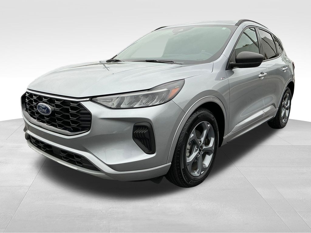 2023 Ford Escape ST-Line Iconic Silver Metallic ST-Line FWD 8-Speed Automatic 1.5L EcoBoost 3.81 Axle Ratio, 4-Wheel Disc Brakes, 6 Speakers, ABS brakes, Air Conditioning, Alloy wheels, AM/FM radio: SiriusXM, AM/FM Stereo, Auto High-beam Headlights, Automatic temperature control, Brake assist, Bumpers: body-color, Compass, Connected Built-In Navigation, Delay-off headlights, Driver door bin, Driver vanity mirror, Dual front impact airbags, Dual front side impact airbags, Electronic Fuel Door Release, Electronic Stability Control, Emergency communication system: SYNC 4 911 Assist, Equipment Group 300A, Exterior Parking Camera Rear, Ford Co-Pilot360 Assist+, FordPass Connect, Four wheel independent suspension, Front anti-roll bar, Front Bucket Seats, Front Center Armrest, Front dual zone A/C, Front License Plate Bracket, Front reading lights, Fully automatic headlights, Illuminated entry, Intelligent Adaptive Cruise Control w/Stop-and-Go, Knee airbag, Low tire pressure warning, Neutral Towing Capability, Occupant sensing airbag, Outside temperature display, Overhead airbag, Overhead console, Panic alarm, Passenger door bin, Passenger vanity mirror, Pedestrian Alert Sounder, Power door mirrors, Power driver seat, Power Liftgate, Power steering, Power windows, Radio data system, Rear anti-roll bar, Rear Parking Sensor, Rear reading lights, Rear seat center armrest, Rear window defroster, Rear window wiper, Rear-View Camera, Remote keyless entry, Speed control, Speed Sign Recognition, Speed-sensing steering, Speed-Sensitive Wipers, Split folding rear seat, Spoiler, Sport steering wheel, Steering wheel mounted audio controls, SYNC 4, SYNC 4 w/Enhanced Voice Recognition, Tachometer, Tech Pack #1, Telescoping steering wheel, Tilt steering wheel, Traction control, Trip computer, Variably intermittent wipers, Vinyl/Cloth Front Sport Contour Bucket Seats, Wheels: 18" Rock Metallic Painted Aluminum.