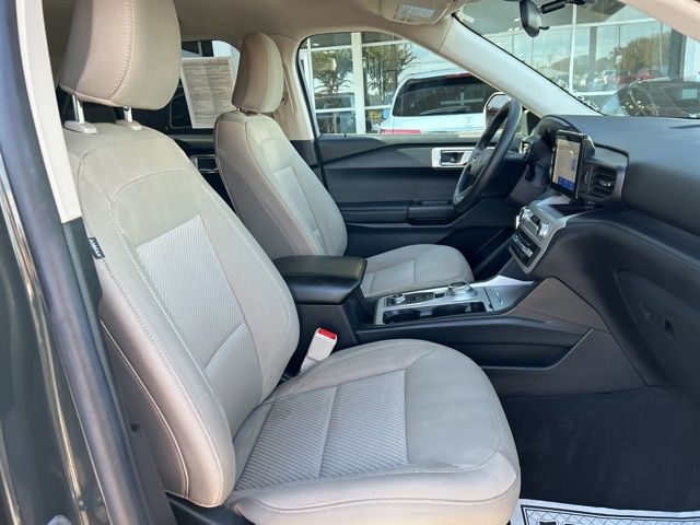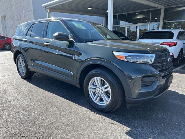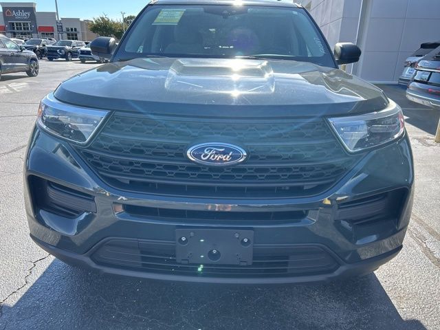 2023 Ford Explorer Base Green Metallic 4WD 10-Speed Automatic 2.3L EcoBoost I-4 4WD, 3.58 Non-Limited-Slip Rear Axle Ratio, 3rd row seats: bench, 4-Wheel Disc Brakes, 4G LTE Wi-Fi Hotspot Credit, 6 Speakers, ABS brakes, Air Conditioning, Alloy wheels, AM/FM radio: SiriusXM, AM/FM Stereo, Auto High-beam Headlights, Auto Start-Stop Removal (DISC), Automatic temperature control, Brake assist, Bumpers: body-color, Cloth Captain's Chairs, Compass, Delay-off headlights, Driver door bin, Driver vanity mirror, Dual front impact airbags, Dual front side impact airbags, Electronic Stability Control, Emergency communication system: SYNC 3 911 Assist, Equipment Group 100A, Exterior Parking Camera Rear, FordPass Connect, Four wheel independent suspension, Front anti-roll bar, Front Bucket Seats, Front Center Armrest, Front dual zone A/C, Front reading lights, Fully automatic headlights, Illuminated entry, Knee airbag, Low tire pressure warning, Occupant sensing airbag, Outside temperature display, Overhead airbag, Overhead console, Panic alarm, Passenger door bin, Passenger vanity mirror, Power door mirrors, Power driver seat, Power Liftgate, Power steering, Power windows, Rear air conditioning, Rear anti-roll bar, Rear Auxiliary Controls Credit, Rear reading lights, Rear window defroster, Rear window wiper, Remote keyless entry, Speed control, Speed-sensing steering, Speed-Sensitive Wipers, Split folding rear seat, Spoiler, Steering wheel mounted audio controls, SYNC 3 Communications & Entertainment System, SYNC 3/Apple CarPlay/Android Auto, Tachometer, Telescoping steering wheel, Tilt steering wheel, Traction control, Trip computer, Variably intermittent wipers, Wheels: 18" 5-Spoke Silver-Painted Aluminum, 4WD.