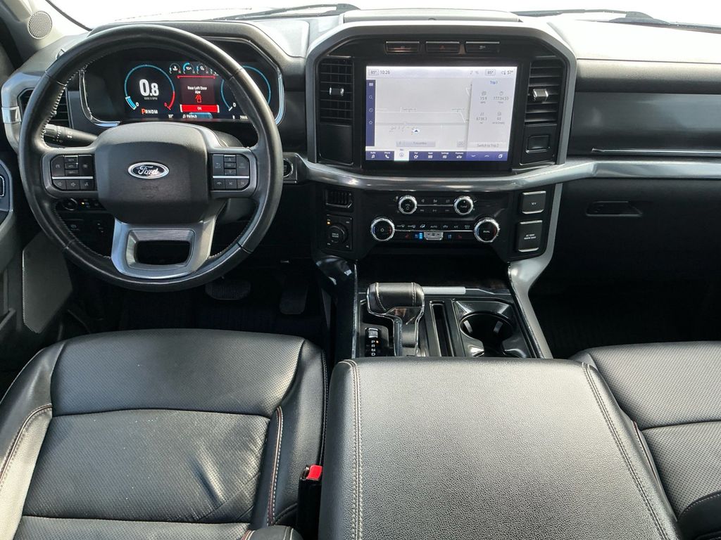 2023 Ford F-150 Lariat Oxford White Lariat 4WD 10-Speed Automatic 5.0L V8 4WD, 3.31 Axle Ratio, 4-Wheel Disc Brakes, 8 Speakers, ABS brakes, Adjustable pedals, Air Conditioning, Alloy wheels, AM/FM radio: SiriusXM with 360L, Auto High-beam Headlights, Auto-dimming door mirrors, Auto-dimming Rear-View mirror, Automatic temperature control, Brake assist, Bumpers: chrome, Chrome wheels, Class IV Trailer Hitch Receiver, Compass, Delay-off headlights, Driver door bin, Driver vanity mirror, Dual front impact airbags, Dual front side impact airbags, Electronic Stability Control, Emergency communication system: SYNC 4 911 Assist, Equipment Group 501A Standard, Exterior Parking Camera Rear, Front anti-roll bar, Front Bucket Seats, Front Center Armrest, Front dual zone A/C, Front fog lights, Front License Plate Bracket, Front reading lights, Front wheel independent suspension, Fully automatic headlights, Garage door transmitter, Heated door mirrors, Heated front seats, Heated steering wheel, Illuminated entry, Inclination/Intrusion Sensor Removal, Leather-Trimmed Bucket Seats, Low tire pressure warning, Memory seat, Occupant sensing airbag, Outside temperature display, Overhead airbag, Overhead console, Panic alarm, Passenger door bin, Passenger vanity mirror, Pedal memory, Power door mirrors, Power driver seat, Power passenger seat, Power steering, Power windows, Radio data system, Radio: B&O Sound System by Bang & Olufsen, Rear reading lights, Rear seat center armrest, Rear step bumper, Rear window defroster, Remote keyless entry, Security system, Speed control, Speed-sensing steering, Split folding rear seat, Steering Wheel Heat Removal (DISC), Steering wheel mounted audio controls, SYNC 4 w/Enhanced Voice Recognition, Tachometer, Telescoping steering wheel, Tilt steering wheel, Traction control, Trip computer, Turn signal indicator mirrors, Variably intermittent wipers, Ventilated front seats, Voltmeter, Wheels: 18" Chrome-Like PVD, 4WD.
