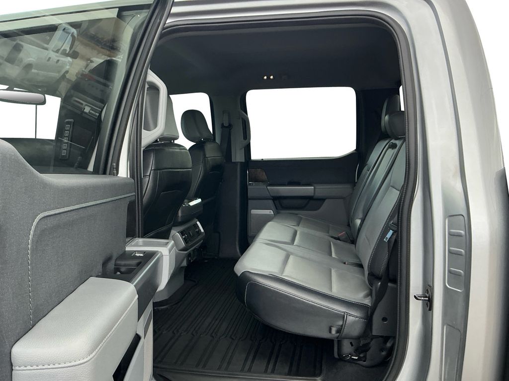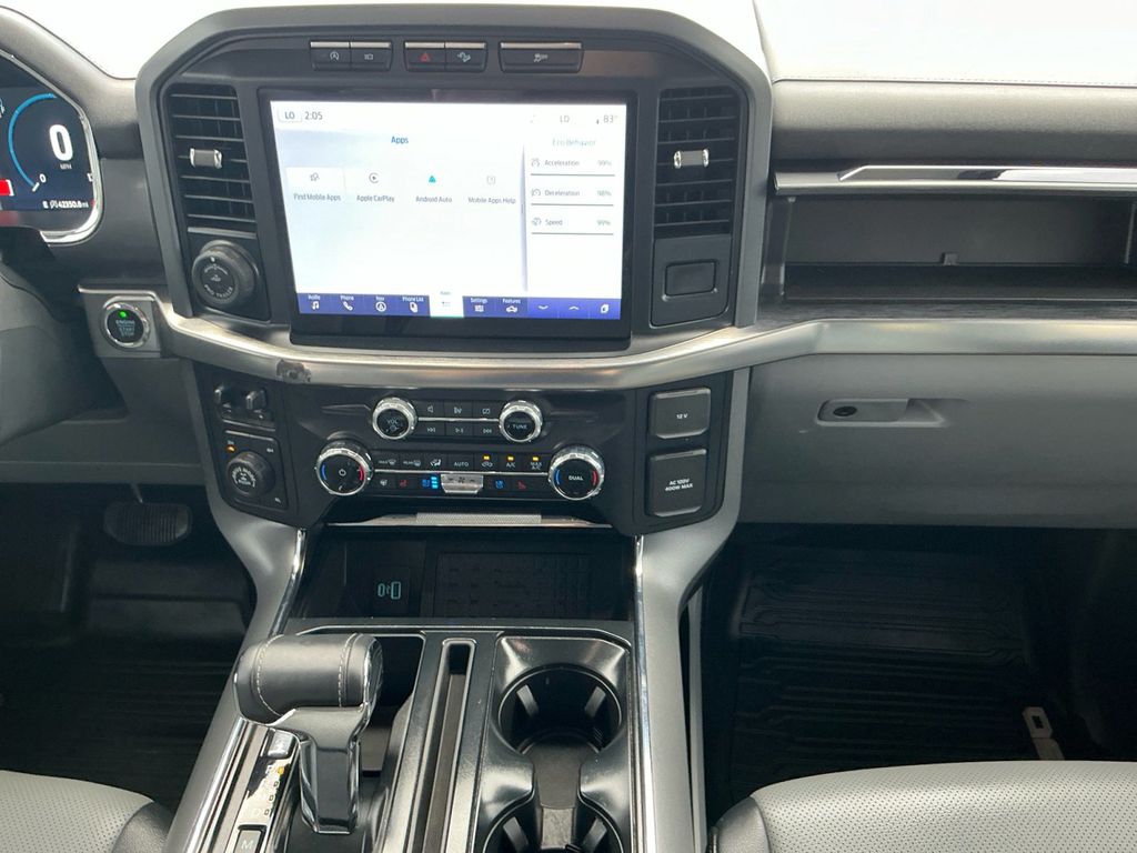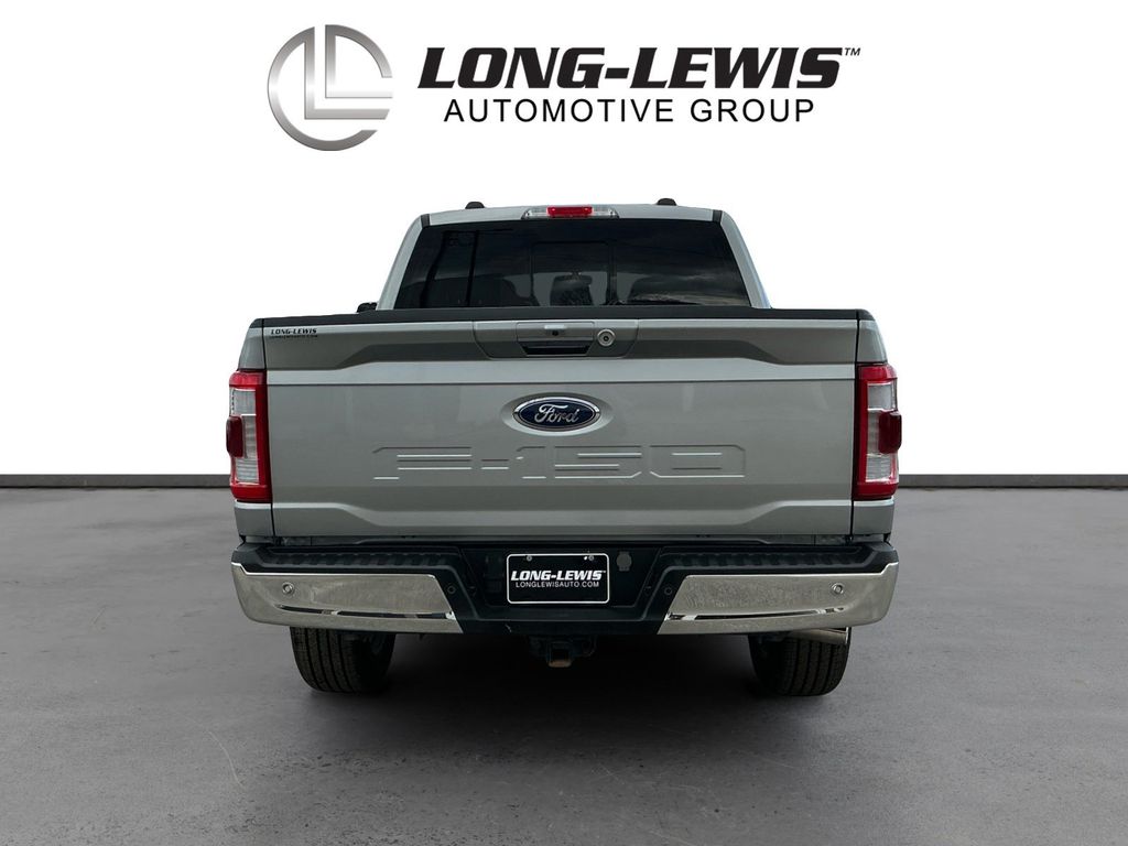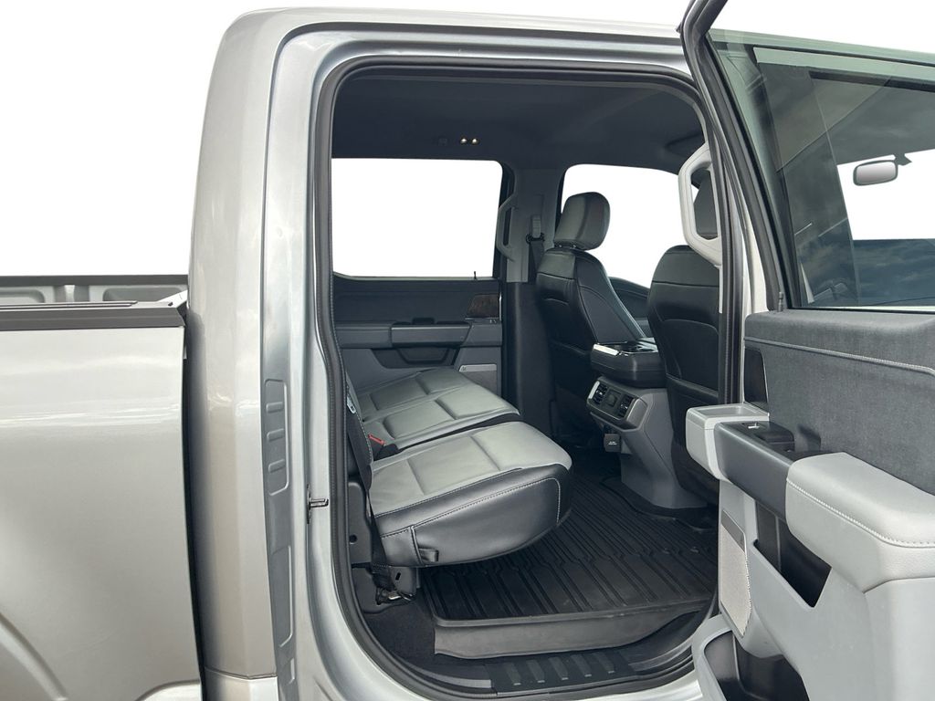 2023 Ford F-150 Lariat Iconic Silver Metallic Lariat 4WD 10-Speed Automatic 5.0L V8 4WD, 360 Degree Camera, 4-Wheel Disc Brakes, 8 Speakers, ABS brakes, Adjustable pedals, Air Conditioning, Alloy wheels, AM/FM radio: SiriusXM with 360L, Auto High-beam Headlights, Auto-dimming door mirrors, Auto-dimming Rear-View mirror, Automatic temperature control, Bed Divider, BoxLink, Brake assist, Bumpers: chrome, Center High-Mounted Stop Lamp CHMSL Camera Removal, Chrome wheels, Class IV Trailer Hitch Receiver, Compass, Delay-off headlights, Driver door bin, Driver vanity mirror, Dual front impact airbags, Dual front side impact airbags, Electronic Stability Control, Emergency communication system: SYNC 4 911 Assist, Equipment Group 501A Standard, Extended Range 36 Gallon Fuel Tank, Exterior Parking Camera Rear, Front anti-roll bar, Front Bucket Seats, Front Center Armrest, Front dual zone A/C, Front fog lights, Front License Plate Bracket, Front reading lights, Front wheel independent suspension, Fully automatic headlights, FX4 Off-Road Package, Garage door transmitter, Heated door mirrors, Heated front seats, Heated steering wheel, Illuminated entry, Inclination/Intrusion Sensor Removal, Integrated Trailer Brake Controller, Leather-Trimmed Bucket Seats, LED Sideview Mirror Spotlights, Low tire pressure warning, Max Trailer Tow Package, Memory seat, Occupant sensing airbag, Outside temperature display, Overhead airbag, Overhead console, Panic alarm, Passenger door bin, Passenger vanity mirror, Pedal memory, Power door mirrors, Power driver seat, Power passenger seat, Power steering, Power windows, Pro Trailer Backup Assist & Pro Trailer Hitch Assist, Radio data system, Radio: B&O Sound System by Bang & Olufsen, Rear reading lights, Rear seat center armrest, Rear step bumper, Rear window defroster, Remote keyless entry, Security system, Speed control, Speed-sensing steering, Split folding rear seat, Steering Wheel Heat Removal (DISC), Steering wheel mounted audio controls, SYNC 4 w/Enhanced Voice Recognition, Tachometer, Telescoping steering wheel, Tilt steering wheel, Traction control, Tray Style Floor Liner (47W), Trip computer, Turn signal indicator mirrors, Variably intermittent wipers, Ventilated front seats, Voltmeter, Wheels: 18" Chrome-Like PVD, Wheels: 20" Chrome-Like PVD, Wireless Charging Pad, 4WD.