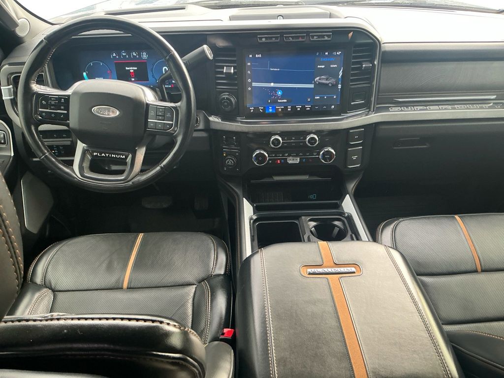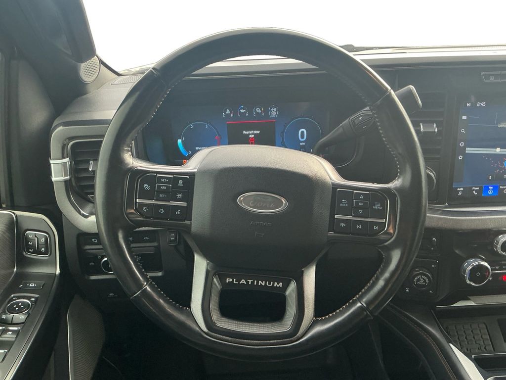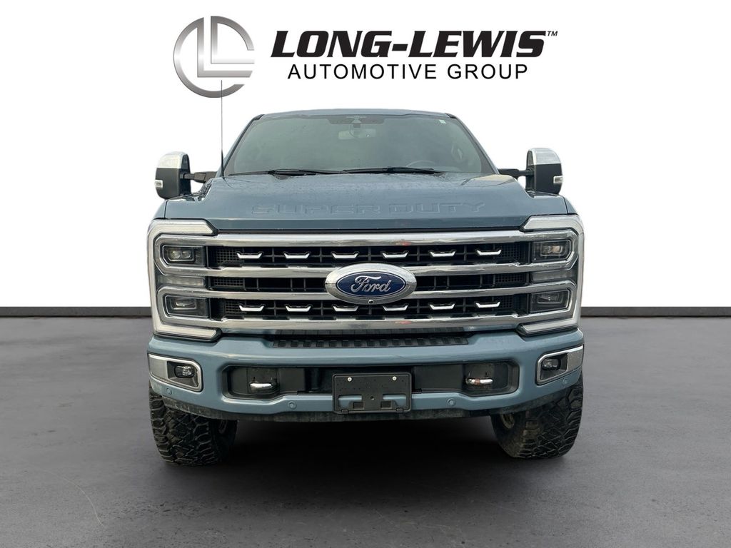 2023 Ford F-250SD Platinum Azure Gray Metallic Platinum 4WD 10-Speed Automatic Power Stroke 6.7L V8 DI 32V OHV Turbodiesel 4WD, 4-Wheel Disc Brakes, ABS brakes, Adjustable pedals, Air Conditioning, Alloy wheels, AM/FM radio: SiriusXM with 360L, Auto High-beam Headlights, Auto tilt-away steering wheel, Auto-dimming Rear-View mirror, Automatic temperature control, Brake assist, Compass, Delay-off headlights, Driver door bin, Driver vanity mirror, Dual front impact airbags, Dual front side impact airbags, Electronic Stability Control, Emergency communication system: SYNC 4 911 Assist, Exterior Parking Camera Rear, F-250 >10K GVWR Package, Flow-Through Console, Front anti-roll bar, Front Bucket Seats, Front Center Armrest, Front dual zone A/C, Front fog lights, Front License Plate Bracket, Front reading lights, Fully automatic headlights, Garage door transmitter, Heated door mirrors, Heated front seats, Heated rear seats, Heated steering wheel, High Capacity 11.6" Axle Upgrade Package, Illuminated entry, Leather steering wheel, Low tire pressure warning, Max Recline Seats, Memory seat, Navigation system: Connected Navigation, Outside temperature display, Overhead airbag, Overhead console, Panic alarm, Passenger door bin, Passenger vanity mirror, Pedal memory, Power door mirrors, Power driver seat, Power passenger seat, Power steering, Power windows, Radio: B&O Unleashed Sound System by Bang & Olufsen, Rain sensing wipers, Rear reading lights, Rear seat center armrest, Rear step bumper, Rear window defroster, Remote keyless entry, Security system, SiriusXM Radio w/360L, Speed control, Split folding rear seat, Steering wheel memory, Steering wheel mounted audio controls, SYNC 4 w/Enhanced Voice Recognition, Tachometer, Telescoping steering wheel, Tilt steering wheel, Traction control, Trip computer, Turn signal indicator mirrors, Variably intermittent wipers, Ventilated front seats, 4WD.