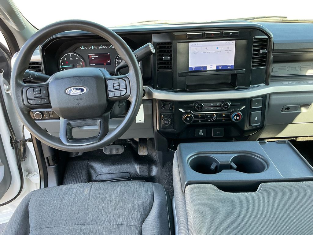 2023 Ford F-350SD XL DRW Oxford White XL DRW 4WD 10-Speed Automatic 7.3L V8 PFI OHV 16V Federal 335hp 4WD, 17" Forged Polished Aluminum Wheels, 4-Wheel Disc Brakes, ABS brakes, Air Conditioning, Brake assist, Compass, Delay-off headlights, Dual front impact airbags, Dual front side impact airbags, Dual rear wheels, Emergency communication system: SYNC 4 911 Assist, Front anti-roll bar, Front License Plate Bracket, Front reading lights, Fully automatic headlights, GVWR: 14,000 lb Payload Package, Heated door mirrors, Illuminated entry, Outside temperature display, Overhead airbag, Overhead console, Panic alarm, Passenger cancellable airbag, Passenger vanity mirror, Power door mirrors, Power steering, Power windows, Rear anti-roll bar, Rear View Camera & Prep Kit, Remote keyless entry, Speed control, Split folding rear seat, Steering wheel mounted audio controls, Tachometer, Telescoping steering wheel, Tilt steering wheel, Traction control, Trip computer, Turn signal indicator mirrors, Variably intermittent wipers, 4WD.