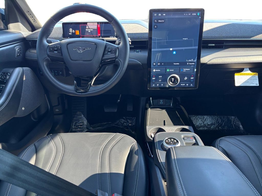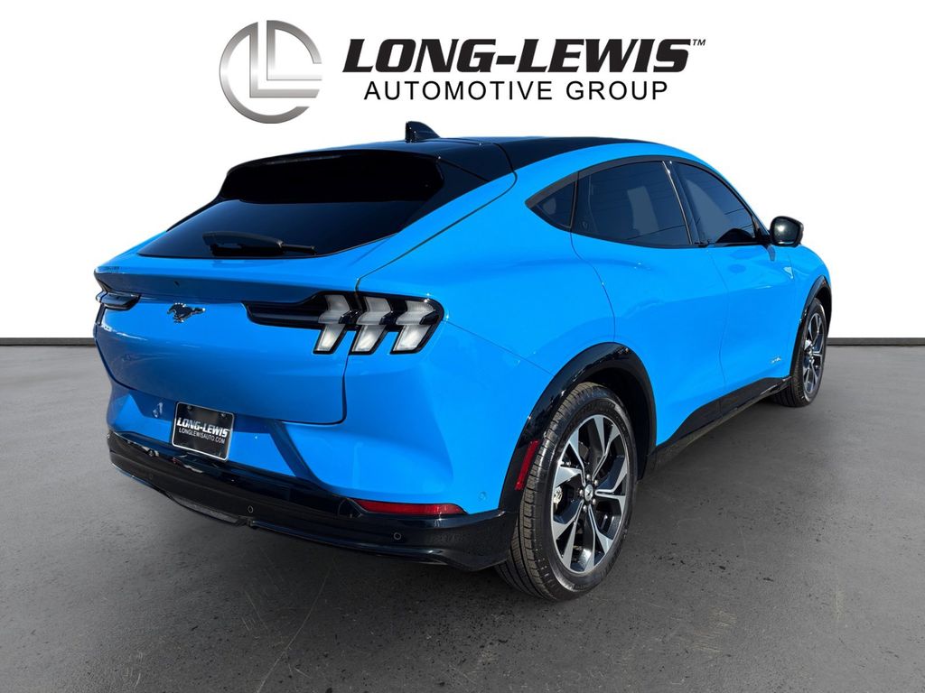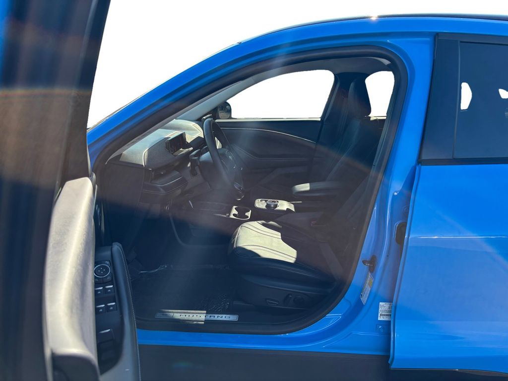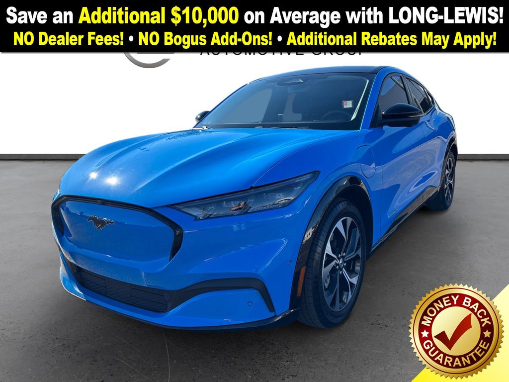 2023 Ford Mustang Mach-E Premium Grabber Blue Metallic Premium AWD Single-Speed Automatic Electric Motor 10 Speakers, 4-Wheel Disc Brakes, ABS brakes, Air Conditioning, Alloy wheels, AM/FM radio: SiriusXM with 360L, AM/FM Stereo, Apple CarPlay/Android Auto, Auto High-beam Headlights, Auto-dimming Rear-View mirror, Automatic temperature control, Axle Ratio: 9.05, Brake assist, Bumpers: body-color, Compass, Delay-off headlights, Driver door bin, Driver vanity mirror, Dual front impact airbags, Dual front side impact airbags, Electronic Stability Control, Emergency communication system: 911 Assist, Equipment Group 300A, Exterior Parking Camera Rear, Four wheel independent suspension, Front anti-roll bar, Front Bucket Seats, Front Center Armrest, Front dual zone A/C, Front reading lights, Fully automatic headlights, Garage door transmitter, Heated door mirrors, Heated front seats, Heated Perforated ActiveX Bucket Seats, Heated steering wheel, Illuminated entry, Knee airbag, Low tire pressure warning, Memory seat, Navigation system: Connected Navigation, Occupant sensing airbag, Outside temperature display, Overhead airbag, Overhead console, Panic alarm, Passenger door bin, Passenger vanity mirror, Power door mirrors, Power driver seat, Power Liftgate, Power passenger seat, Power steering, Power windows, Radio data system, Rain sensing wipers, Rear anti-roll bar, Rear seat center armrest, Rear side impact airbag, Rear window defroster, Rear window wiper, Remote keyless entry, Security system, SiriusXM Radio w/360L, Speed control, Speed-sensing steering, Speed-Sensitive Wipers, Split folding rear seat, Spoiler, Steering wheel mounted audio controls, SYNC 4A w/Enhanced Voice Recognition, Telescoping steering wheel, Tilt steering wheel, Traction control, Trip computer, Turn signal indicator mirrors, Variably intermittent wipers, Wheels: 19" Shadow Silver-Painted Aluminum.