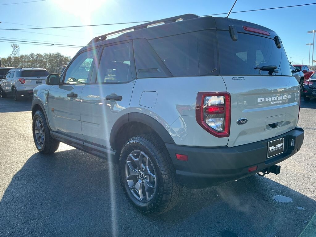 2024 Ford Bronco Sport Badlands Cactus Gray Badlands 4WD 8-Speed Automatic EcoBoost 2.0L I4 GTDi DOHC Turbocharged VCT 3.80 Axle Ratio, 4-Wheel Disc Brakes, 6 Speakers, ABS brakes, Air Conditioning, Alloy wheels, AM/FM radio: SiriusXM, AM/FM Stereo, Auto High-beam Headlights, Automatic temperature control, Brake assist, Class II Trailer Tow Package w/Trailer Sway Control, Compass, Delay-off headlights, Driver door bin, Driver vanity mirror, Dual front impact airbags, Dual front side impact airbags, Electronic Stability Control, Emergency communication system: SYNC 3 911 Assist, Equipment Group 400A, Four wheel independent suspension, Front anti-roll bar, Front Bucket Seats, Front Center Armrest, Front fog lights, Front License Plate Bracket, Front reading lights, Fully automatic headlights, Heated door mirrors, Illuminated entry, Knee airbag, Low tire pressure warning, Occupant sensing airbag, Outside temperature display, Overhead airbag, Overhead console, Panic alarm, Passenger door bin, Passenger vanity mirror, Power door mirrors, Power driver seat, Power steering, Power windows, Radio data system, Rear anti-roll bar, Rear reading lights, Rear seat center armrest, Rear window defroster, Rear window wiper, Remote keyless entry, Security system, SiriusXM, Speed control, Speed-sensing steering, Speed-Sensitive Wipers, Split folding rear seat, Steering wheel mounted audio controls, SYNC 3 Communications & Entertainment System, Tachometer, Telescoping steering wheel, Tilt steering wheel, Traction control, Trip computer, Unique Style Cloth Sport Contour Bucket Seats, Variably intermittent wipers, Wheels: 17" Carbonized Gray-Painted Aluminum.