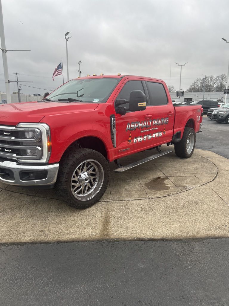 2024 Ford F-250SD Lariat Race Red Lariat 4WD 10-Speed Automatic 6.7L High Output Power Stroke V8 Diesel 4WD, 4-Wheel Disc Brakes, 410 Amp Dual Alternators, 8 Speakers, ABS brakes, Adjustable pedals, Air Conditioning, Alloy wheels, AM/FM radio: SiriusXM with 360L, Auto High-beam Headlights, Auto tilt-away steering wheel, Auto-dimming Rear-View mirror, Automatic temperature control, Brake assist, Bumpers: chrome, Compass, Delay-off headlights, Driver door bin, Driver vanity mirror, Dual 68 AH/65 AGM Batteries, Dual front impact airbags, Dual front side impact airbags, Electronic Stability Control, Emergency communication system: SYNC 4 911 Assist, Exterior Parking Camera Rear, F-250 >10K GVWR Package, Flow-Through Console, Front anti-roll bar, Front Bucket Seats, Front Center Armrest, Front dual zone A/C, Front fog lights, Front Leather-Trimmed 40/Console/40 Seats, Front reading lights, Fully automatic headlights, FX4 Off-Road Package, Garage door transmitter, Heated door mirrors, Heated front seats, Heated rear seats, Heated steering wheel, High Capacity 11.6" Axle Upgrade Package, Hill Descent Control, Illuminated entry, Lariat Ultimate Package, Leather steering wheel, LED Roof Clearance Lights, Low tire pressure warning, Memory seat, Navigation system: Connected Navigation (includes complimentary 1-year trial), Off-Road Specifically Tuned Shock Absorbers, Order Code 608A, Outside temperature display, Overhead airbag, Overhead console, Panic alarm, Passenger door bin, Passenger vanity mirror, Pedal memory, Power door mirrors, Power driver seat, Power passenger seat, Power steering, Power windows, Power-Deployable Running Boards, Radio: B&O Sound System by Bang & Olufsen, Rain sensing wipers, Rear reading lights, Rear seat center armrest, Rear step bumper, Rear window defroster, Remote keyless entry, Security system, SiriusXM Radio w/360L, Speed control, Split folding rear seat, Steering wheel memory, Steering wheel mounted audio controls, SYNC 4 w/Enhanced Voice Recognition, Tachometer, Tailgate Step & Handle, Telescoping steering wheel, Tilt steering wheel, Traction control, Trip computer, Turn signal indicator mirrors, Unique FX4 Off-Road Box Decal, Upfitter Switches (6), Variably intermittent wipers, Ventilated front seats, Wheels: 18" Bright Machined & Carbonized Gray Alum, 4WD.
