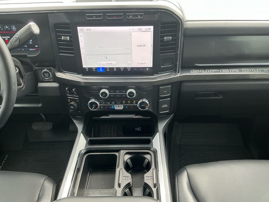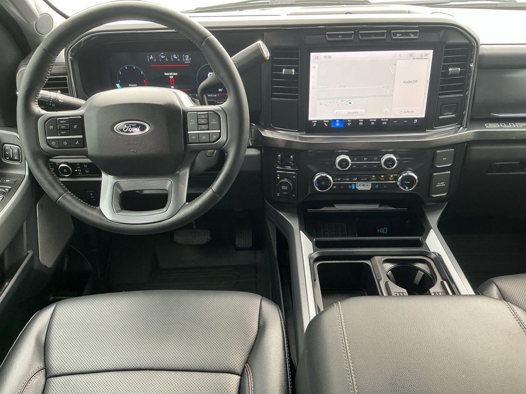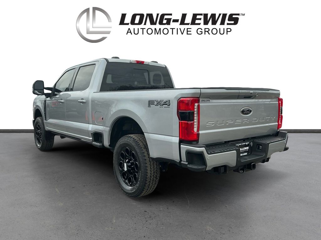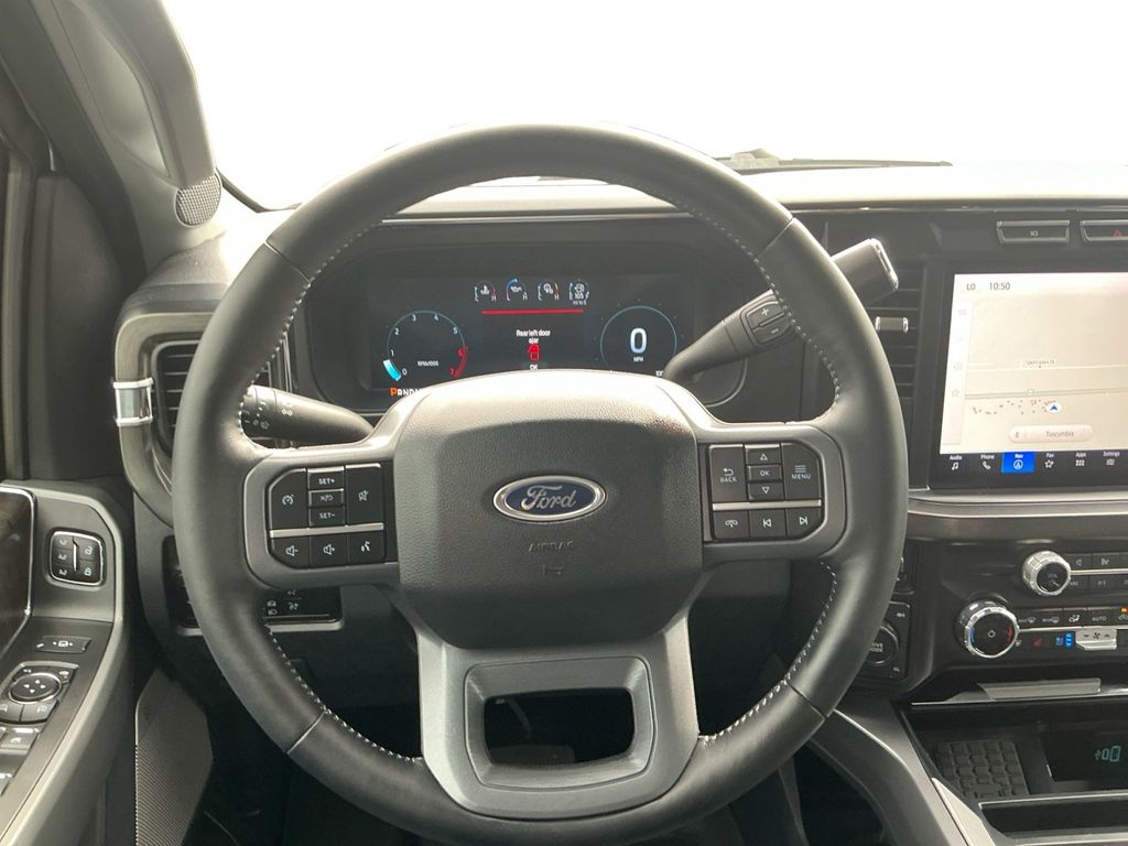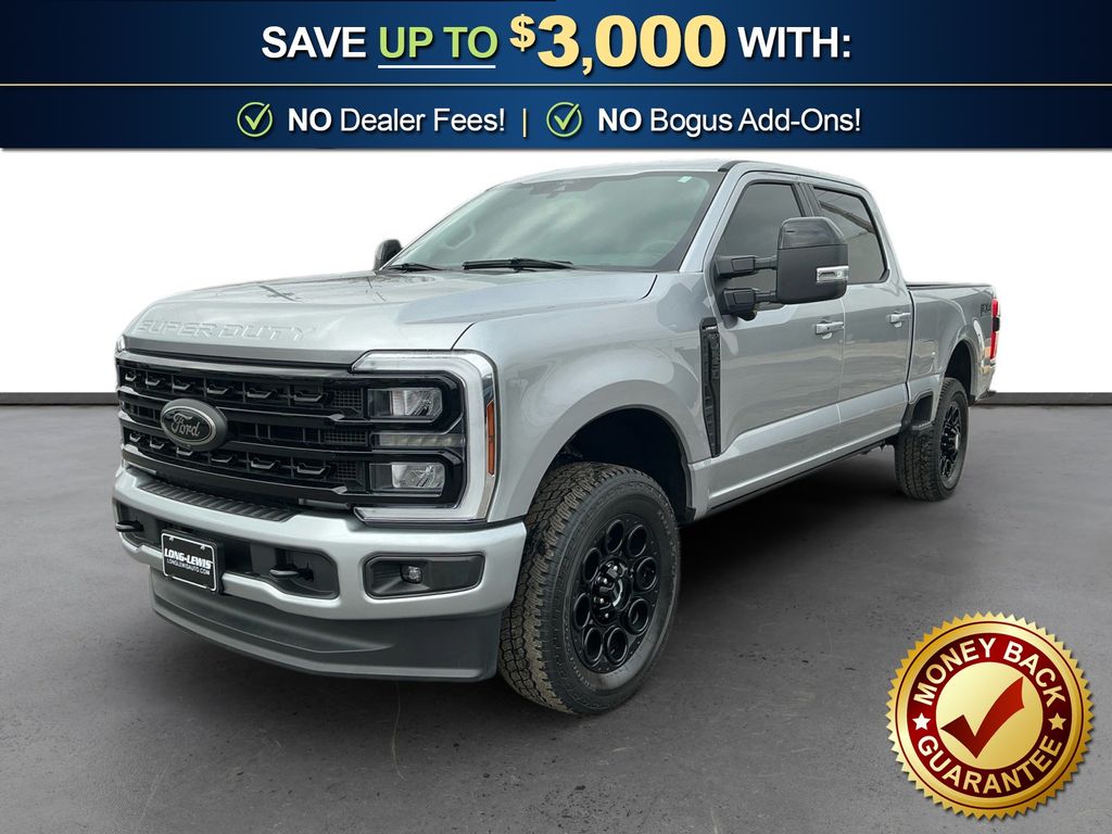 2024 Ford F-250SD Lariat Silver Metallic Lariat 4WD 10-Speed Automatic 7.3L V8 PFI OHV 16V Federal 430hp 4WD, 250 Amp Alternator (Gas), 4-Wheel Disc Brakes, 6" Ebony Black Angular Running Boards, 8 Speakers, ABS brakes, Adjustable pedals, Air Conditioning, All-Weather Floor Mats, Alloy wheels, AM/FM radio: SiriusXM with 360L, Auto High-beam Headlights, Auto tilt-away steering wheel, Auto-dimming Rear-View mirror, Automatic temperature control, Black Appearance Package, Body Color Front & Rear Bumpers, Brake assist, Bumpers: chrome, Compass, Delay-off headlights, Driver door bin, Driver vanity mirror, Dual front impact airbags, Dual front side impact airbags, Ebony Black Painted Front Grille Bars, Ebony Black Painted Mirror Caps, Electronic Stability Control, Emergency communication system: SYNC 4 911 Assist, Exterior Parking Camera Rear, F-250 >10K GVWR Package, Flow-Through Console, Front anti-roll bar, Front Bucket Seats, Front Center Armrest, Front dual zone A/C, Front fog lights, Front Leather-Trimmed 40/Console/40 Seats, Front License Plate Bracket, Front reading lights, Fully automatic headlights, FX4 Off-Road Package, Garage door transmitter, Heated door mirrors, Heated front seats, Heated rear seats, Heated steering wheel, Hill Descent Control, Illuminated entry, Leather steering wheel, Low tire pressure warning, Memory seat, Navigation system: Connected Navigation (includes complimentary 1-year trial), Off-Road Specifically Tuned Shock Absorbers, Order Code 608A, Outside temperature display, Overhead airbag, Overhead console, Panic alarm, Passenger door bin, Passenger vanity mirror, Pedal memory, Power door mirrors, Power driver seat, Power passenger seat, Power steering, Power windows, Radio: B&O Sound System by Bang & Olufsen, Rain sensing wipers, Rear reading lights, Rear seat center armrest, Rear step bumper, Rear Wheel Well Liners (Pre-Installed), Rear window defroster, Remote keyless entry, Security system, SiriusXM Radio w/360L, Speed control, Split folding rear seat, Steering wheel memory, Steering wheel mounted audio controls, SYNC 4 w/Enhanced Voice Recognition, Tachometer, Tailgate Step & Handle, Telescoping steering wheel, Tilt steering wheel, Tough Bed Spray-In Bedliner, Traction control, Trip computer, Turn signal indicator mirrors, Unique FX4 Off-Road Box Decal, Upfitter Switches (6), Variably intermittent wipers, Ventilated front seats, Wheels: 18" Bright Machined & Carbonized Gray Alum, Wheels: 20" Machined & Ebony Black High Gloss, 4WD.