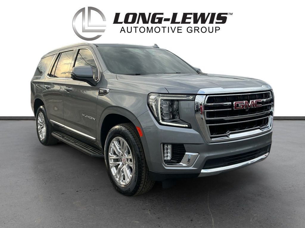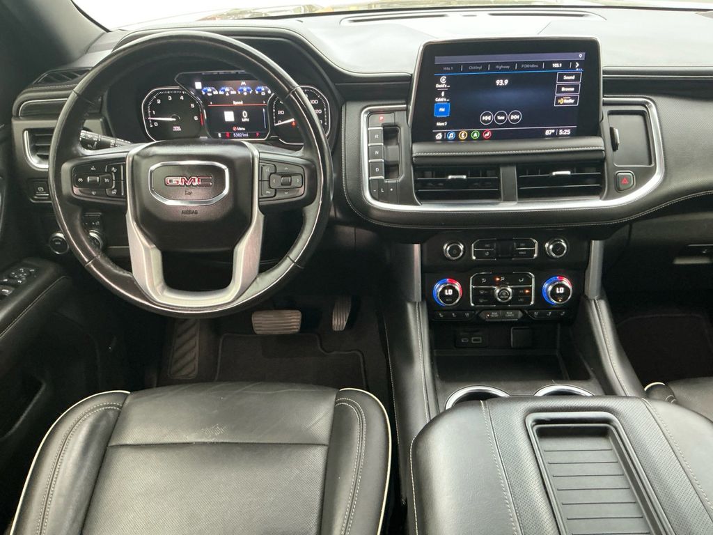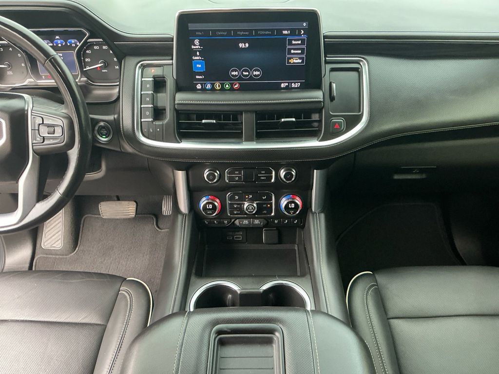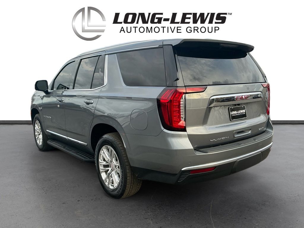 2021 GMC Yukon SLT Satin Steel Metallic SLT RWD 10-Speed Automatic with Overdrive EcoTec3 5.3L V8 12-Way Power Seat Adjusters, 2 Presets For Outside Rearview Mirrors, 2 Presets For Power Driver Seat, 3.23 Rear Axle Ratio, 3rd Row 60/40 Power-Folding Split-Bench Seat, 3rd row seats: split-bench, 4-Wheel Disc Brakes, 9 Speakers, ABS brakes, Air Conditioning, Alloy wheels, AM/FM radio: SiriusXM with 360L, Apple CarPlay/Android Auto, Auto High-beam Headlights, Auto-dimming Rear-View mirror, Automatic Emergency Braking, Automatic temperature control, Bodyside moldings, Bose 9-Speaker Stereo Audio System Feature, Brake assist, Bright Chrome Bodyside Moldings, Bright Front & Rear Door Sill Plates, Bumpers: body-color, Chrome Door Handles w/Body-Color Strip, Compass, Delay-off headlights, Driver door bin, Driver vanity mirror, Dual front impact airbags, Dual front side impact airbags, Dual-Pane Panoramic Power Sunroof, Electronic Stability Control, Emergency communication system: OnStar and GMC connected services capable, Floor Console, Following Distance Indicator, Forward Collision Alert, Four wheel independent suspension, Front & Rear Park Assist, Front anti-roll bar, Front Bucket Seats, Front Center Armrest, Front dual zone A/C, Front fog lights, Front Pedestrian Braking, Front reading lights, Fully automatic headlights, Garage door transmitter, Hands-Free Power Programmable Rear Liftgate, HD Radio, HD Surround Vision, Heated & Ventilated Driver & Front Passenger Seats, Heated 2nd Row Outboard Position Seats, Heated Automatic Steering Wheel, Heated door mirrors, Heated Driver & Front Passenger Seats, Heated front seats, Illuminated entry, Inside Rear-View Auto-Dimming Mirror, IntelliBeam Automatic High Beam On/Off, Lane Change Alert w/Side Blind Zone Alert, Lane Keep Assist w/Lane Departure Warning, Leather steering wheel, License Plate Front Mounting Package, Low tire pressure warning, Memory seat, Not Equipped w/Automatic Stop/Start, Not Equipped w/Steering Column Lock, Occupant sensing airbag, Outside Heated Power-Adjustable Mirrors, Outside temperature display, Overhead airbag, Overhead console, Panic alarm, Passenger door bin, Passenger vanity mirror, Perforated Leather Seating Surfaces, Power door mirrors, Power driver seat, Power Liftgate, Power passenger seat, Power Release 2nd Row 60/40 Split-Folding Bench Seat, Power Release 2nd Row Bucket Seats, Power steering, Power Tilt & Telescopic Steering Column, Power windows, Preferred Equipment Group 4SA, Premium Smooth Ride Suspension, Radio: AM/FM/SiriusXM, Radio: AM/FM/SiriusXM w/Navigation, Rain sensing wipers, Rear air conditioning, Rear anti-roll bar, Rear Cross Traffic Alert, Rear Media & Nav Package, Rear Pedestrian Alert, Rear reading lights, Rear seat center armrest, Rear Seat Media System, Rear window defroster, Rear window wiper, Remote keyless entry, Roof rack: rails only, Safety Alert Seat, Security system, SiriusXM w/360L, SLT Luxury Package, SLT Premium Package, Speed control, Speed-sensing steering, Split folding rear seat, Spoiler, Steering wheel mounted audio controls, Tachometer, Telescoping steering wheel, Tilt steering wheel, Traction control, Trip computer, Universal Home Remote, Variably intermittent wipers, Ventilated front seats, Voltmeter, Wheels: 20" x 9" 6-Spoke Polished Aluminum.