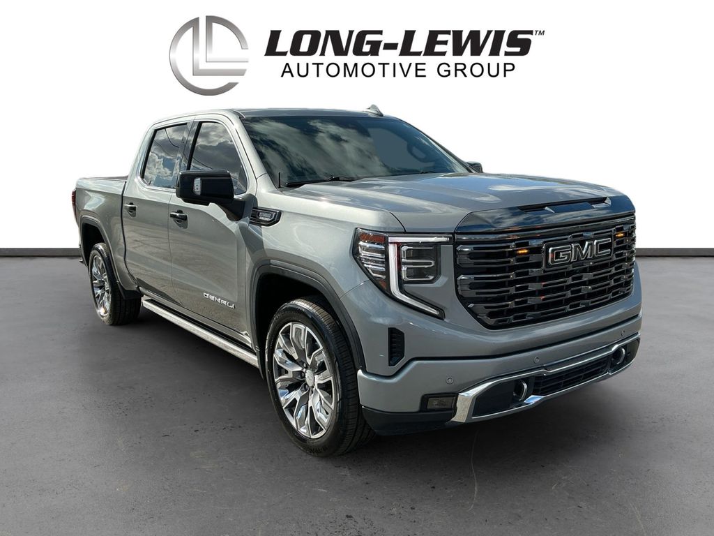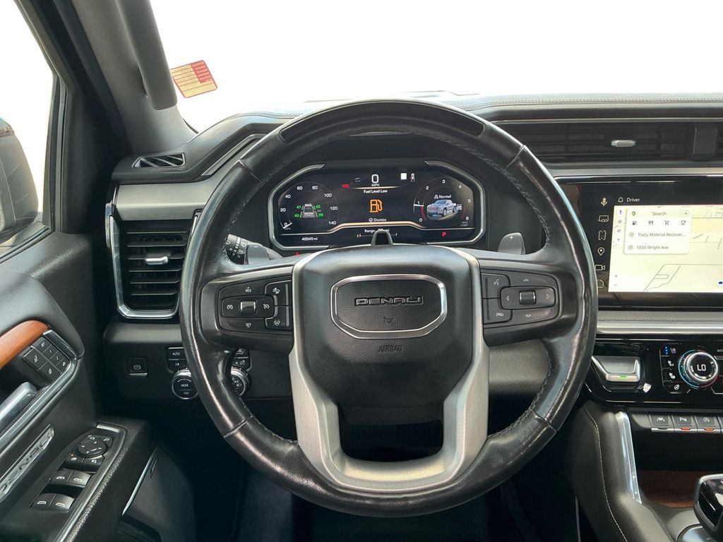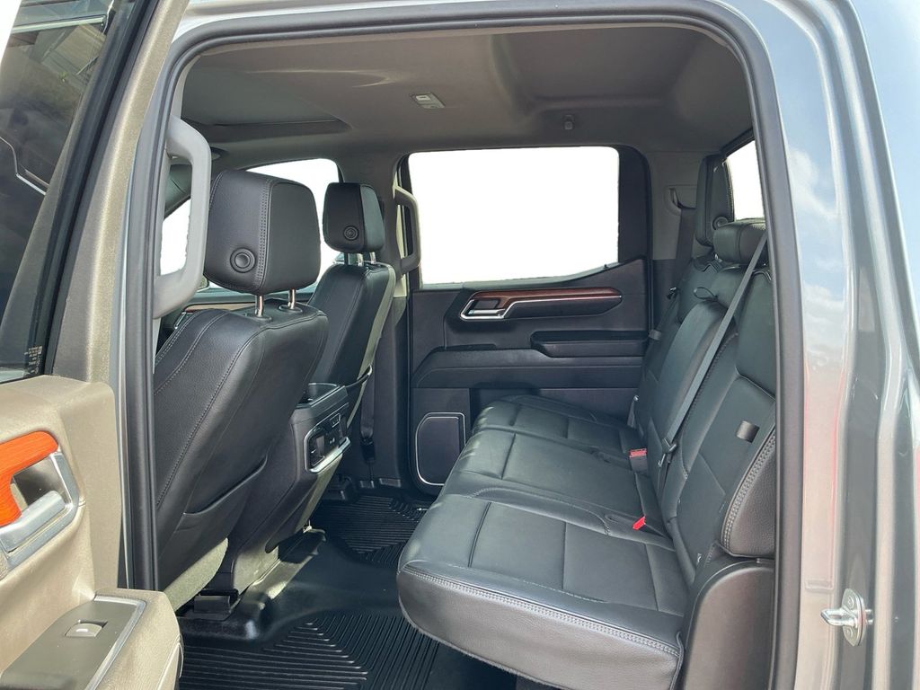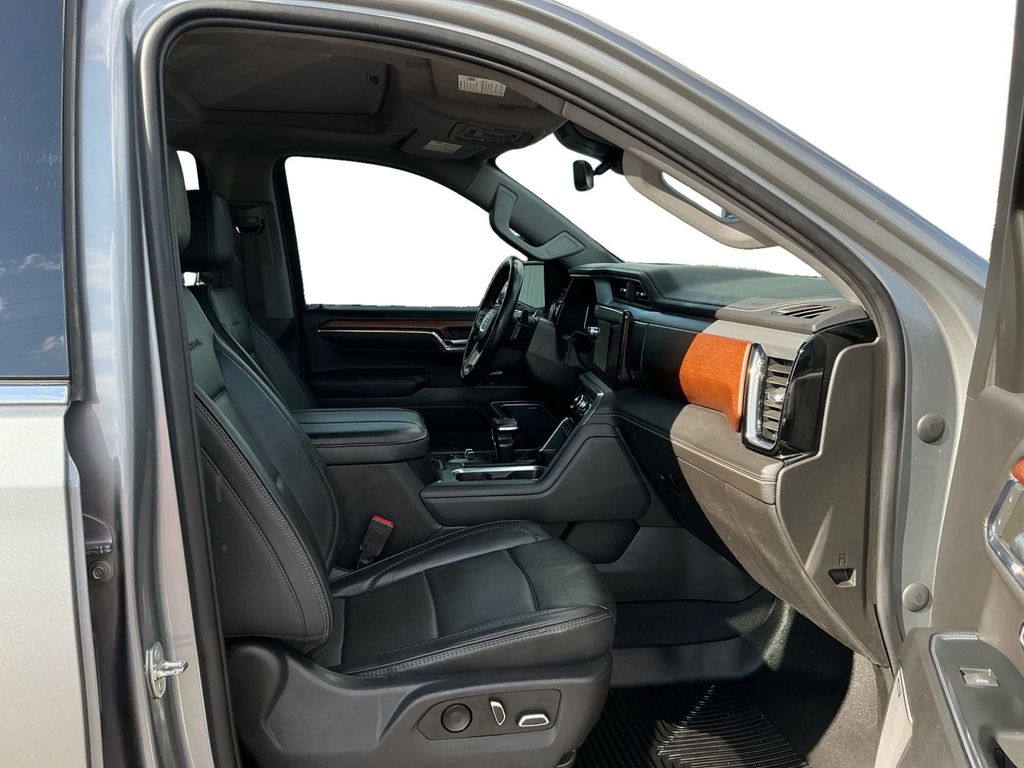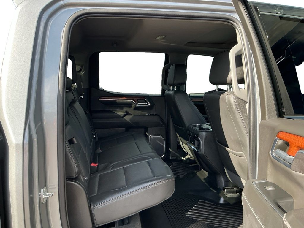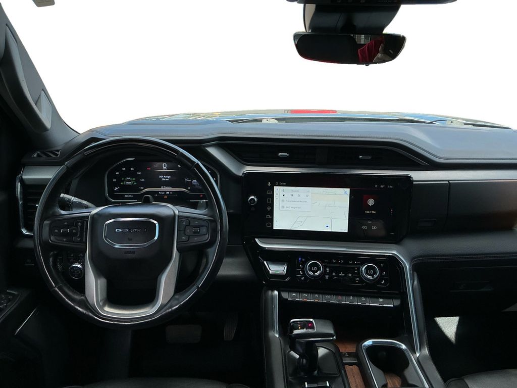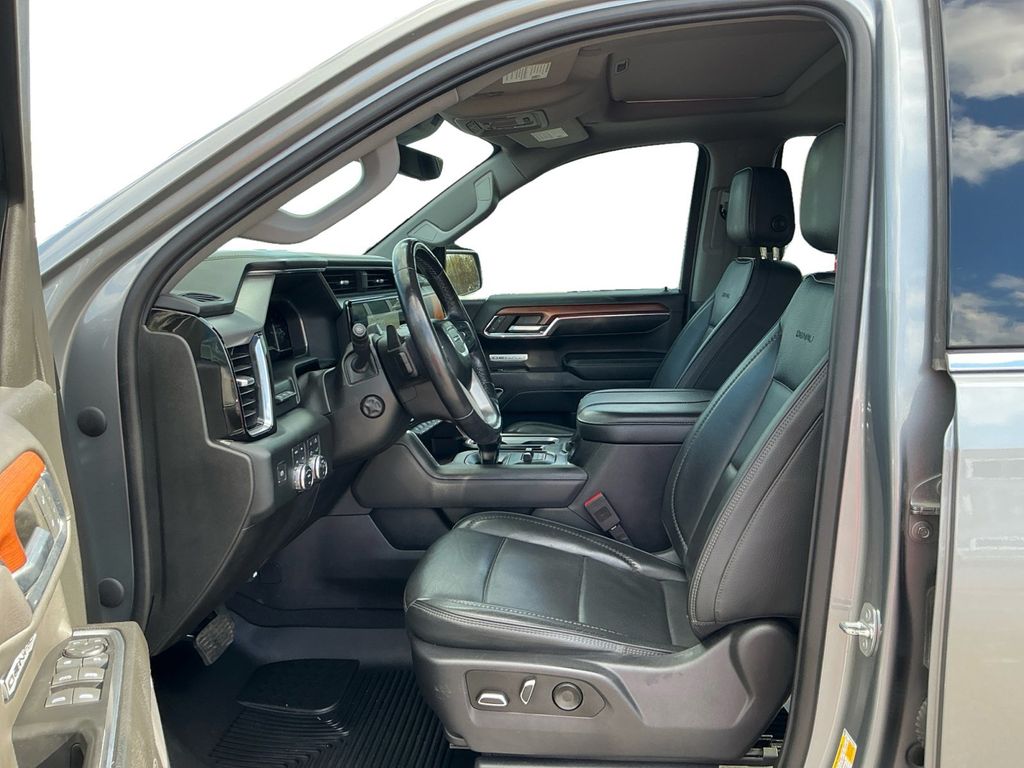 2023 GMC Sierra 1500 Denali Sterling Metallic Denali 4WD 10-Speed Automatic 3.0L I6 10-Speed Automatic, 4WD, Black Leather, 10-Way Power Driver Seat Adjuster w/Lumbar, 10-Way Power Passenger Seat Adjuster w/Lumbar, 120-Volt Bed Mounted Power Outlet, 120-Volt Instrument Panel Power Outlet, 170 Amp Alternator, 2 Charge/Data USB Ports Inside Center Console, 2 Type-C Charge-Only Rear USB Ports, 2 USB Ports, 220 Amp Alternator, 3.23 Rear Axle Ratio, 4-Wheel Disc Brakes, 7 Speakers, ABS brakes, Adaptive Cruise Control, Adaptive suspension, Air Conditioning, Alloy wheels, AM/FM radio, Apple CarPlay/Android Auto, Auto High-beam Headlights, Auto-dimming door mirrors, Auto-dimming Rear-View mirror, Auto-Locking Rear Differential, Automatic Emergency Braking, Automatic temperature control, Auxiliary External Transmission Oil Cooler, Bed View Camera, Brake assist, Buckle to Drive, Bumpers: body-color, Chrome Header w/Signature Denali Chrome Grille, Chrome Recovery Hooks, Chrome Wheel To Wheel Assist Steps, Color-Keyed Carpeting Floor Covering, Compass, Deep-Tinted Glass, Delay-off headlights, Denali Premium Suspension w/Adaptive Ride Control, Denali Reserve Super Package, Driver door bin, Driver Memory, Driver vanity mirror, Dual front impact airbags, Dual front side impact airbags, Electric Rear-Window Defogger, Electrical Steering Column Lock, Electronic Stability Control, Emergency communication system: OnStar and GMC connected services capable, Engine Block Heater, Enhanced Automatic Emergency Braking, Floor-Mounted Center Console, Following Distance Indicator, Forge Perforated Leather Seat Trim, Forward Collision Alert, Front anti-roll bar, Front Bucket Seats, Front Center Armrest, Front dual zone A/C, Front fog lights, Front License Plate Kit, Front Pedestrian Braking, Front Rainsensing Wipers, Front reading lights, Front wheel independent suspension, Fully automatic headlights, Garage door transmitter, Genuine wood console insert, Genuine wood dashboard insert, Genuine wood door panel insert, GMC Connected Access Capable, GMC MultiPro Power Steps, HD Surround Vision, Heated 2nd Row Outboard Seats, Heated door mirrors, Heated Driver & Front Outboard Passenger Seating, Heated front seats, Heated rear seats, Heated steering wheel, Heavy-Duty Air Filter, Hill Descent Control, Hitch Guidance, Hitch Guidance w/Hitch View, Illuminated entry, In-Vehicle Trailering App, Integrated Trailer Brake Controller, IntelliBeam Automatic High Beam On/Off, Keyless Open & Start, Lane Keep Assist w/Lane Departure Warning, LED Cargo Area Lighting, Low tire pressure warning, Memory seat, Multicolor 15" Diagonal Head-Up Display, Navigation System, Not Equipped w/Steering Column Lock, Occupant sensing airbag, OnStar & GMC Connected Services Capable, Outside temperature display, Overhead airbag, Overhead console, Panic alarm, Passenger door bin, Passenger vanity mirror, Perimeter Lighting, Power Door Locks, Power door mirrors, Power driver seat, Power Front Passenger Windows w/Express Up/Down, Power Front Windows w/Driver Express Up/Down, Power passenger seat, Power Rake & Telescoping Steering Column, Power Rear Windows w/Express Down, Power Sliding Rear Window w/Rear Defogger, Power steering, Power Sunroof, Power windows, Preferred Equipment Group 5SA, Premium audio system: GMC Infotainment System, Premium Bose 7-Speaker Sound System, Push Button Start, Radio data system, Radio: Premium GMC Infotainment Audio System, Rain sensing wipers, Rear Camera Mirror, Rear Cross Traffic Braking, Rear Pedestrian Detection, Rear reading lights, Rear seat center armrest, Rear step bumper, Rear Wheelhouse Liners, Rear window defroster, Remote keyless entry, Remote Vehicle Starter System, Safety Alert Seat, Security system, SiriusXM w/360L, Speed control, Speed-sensing steering, Split folding rear seat, Spray-On Pickup Bed Liner w/Denali Logo, Steering Wheel Audio Controls, Steering wheel mounted audio controls, Super Cruise, Super Cruise Wrapped Steering Wheel, Tachometer