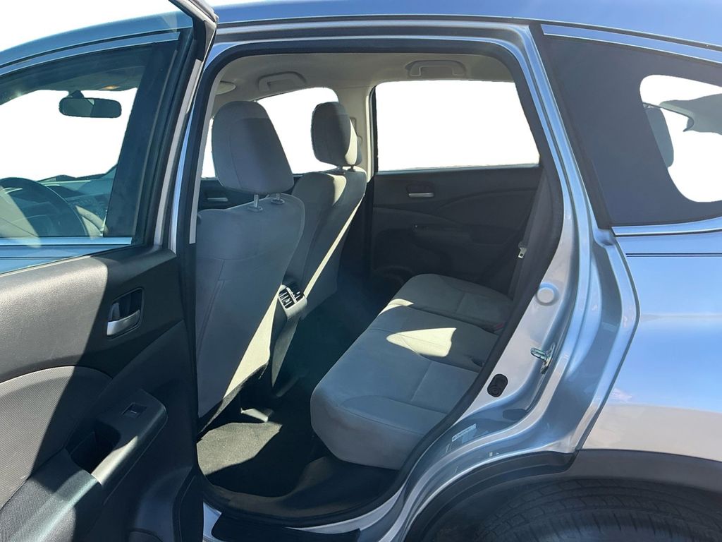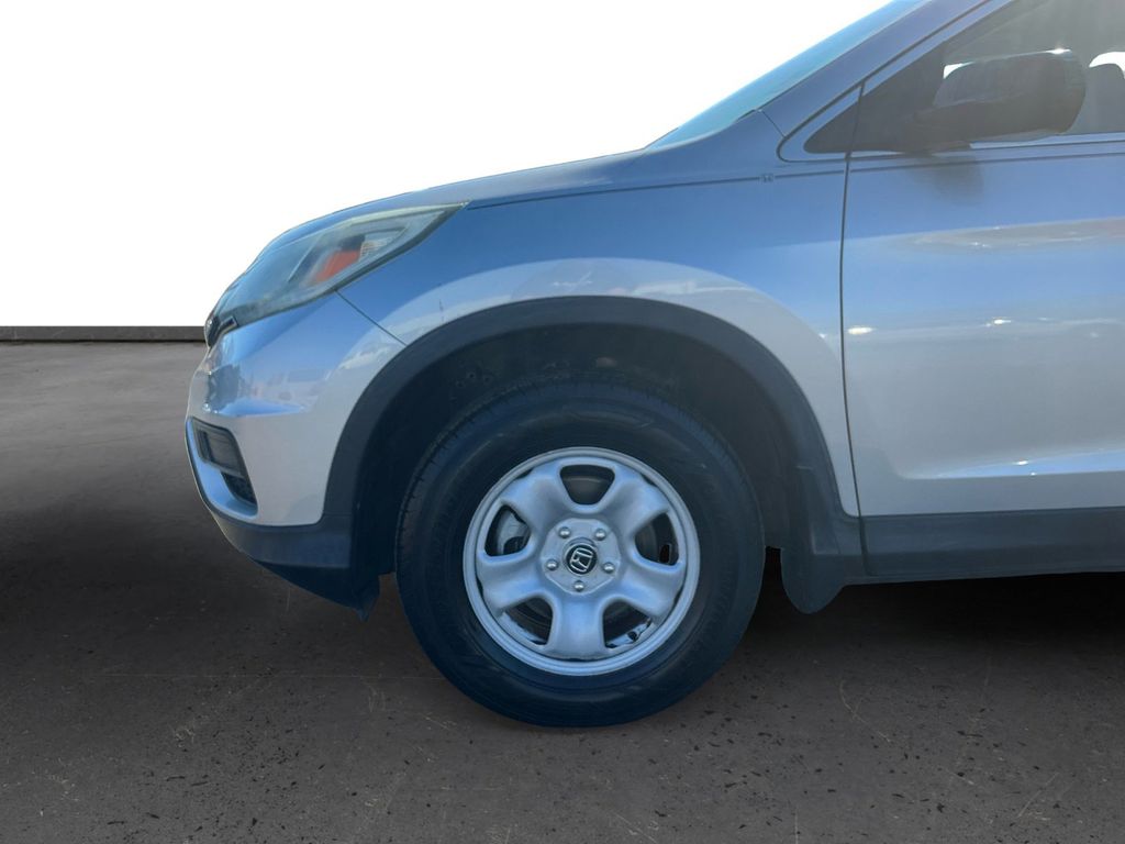 2015 Honda CR-V LX Silver LX FWD CVT 2.4L I4 DOHC 16V i-VTEC 16" Styled Steel Wheels, 4 Speakers, 4-Wheel Disc Brakes, 5.048 Axle Ratio, ABS brakes, Air Conditioning, AM/FM radio, AM/FM/CD Audio System w/4 Speakers, Brake assist, Bumpers: body-color, CD player, Cloth Seat Trim, Compass, Delay-off headlights, Driver door bin, Driver vanity mirror, Dual front impact airbags, Dual front side impact airbags, Electronic Stability Control, Exterior Parking Camera Rear, Four wheel independent suspension, Front anti-roll bar, Front Bucket Seats, Front Center Armrest, Front reading lights, Illuminated entry, Low tire pressure warning, Occupant sensing airbag, Outside temperature display, Overhead airbag, Overhead console, Panic alarm, Passenger door bin, Passenger vanity mirror, Power door mirrors, Power steering, Power windows, Radio data system, Rear anti-roll bar, Rear seat center armrest, Rear window defroster, Rear window wiper, Remote keyless entry, Speed control, Speed-sensing steering, Split folding rear seat, Steering wheel mounted audio controls, Tachometer, Telescoping steering wheel, Tilt steering wheel, Traction control, Trip computer.