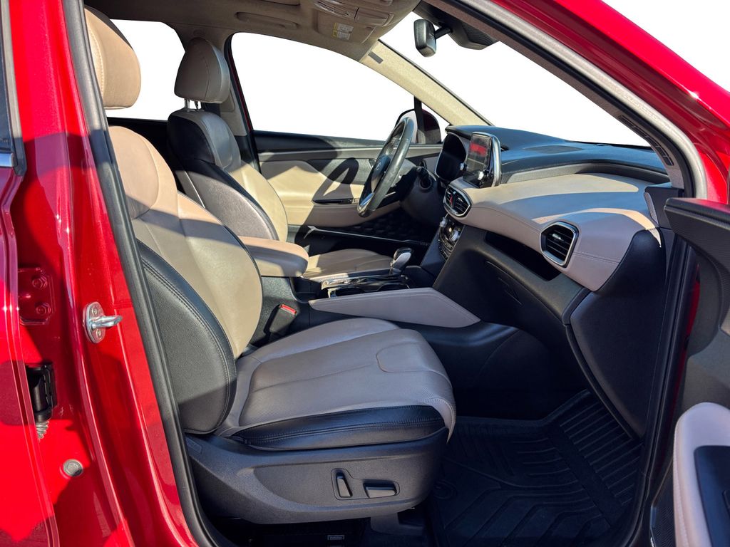 2020 Hyundai Santa Fe Limited Calypso Red Limited FWD 8-Speed Automatic with SHIFTRONIC 2.0L Turbocharged Beige Leather, 12 Speakers, 4-Wheel Disc Brakes, ABS brakes, Air Conditioning, Alloy wheels, AM/FM radio: SiriusXM, Apple CarPlay & Android Auto, Auto High-beam Headlights, Auto-dimming Rear-View mirror, Automatic temperature control, Axle Ratio 3.320, Brake assist, Bumpers: body-color, Cargo Net, Carpeted Floor Mats, Compass, Delay-off headlights, Driver door bin, Driver vanity mirror, Dual front impact airbags, Dual front side impact airbags, Electronic Stability Control, Emergency communication system, Four wheel independent suspension, Front anti-roll bar, Front Bucket Seats, Front Center Armrest, Front dual zone A/C, Front fog lights, Front reading lights, Fully automatic headlights, Garage door transmitter: HomeLink, Heads-Up Display, Heated & Ventilated Front Bucket Seats, Heated door mirrors, Heated front seats, Heated rear seats, Heated steering wheel, Illuminated entry, Leather Seating Surface, Leather Shift Knob, Leather steering wheel, Low tire pressure warning, Memory seat, Navigation System, Occupant sensing airbag, Option Group 01, Outside temperature display, Overhead airbag, Overhead console, Panic alarm, Passenger door bin, Passenger vanity mirror, Power door mirrors, Power driver seat, Power Liftgate, Power moonroof, Power passenger seat, Power steering, Power windows, Radio: Infinity Premium AM/FM/MP3 Display Audio, Rain sensing wipers, Rear anti-roll bar, Rear Parking Sensors, Rear seat center armrest, Rear window defroster, Rear window wiper, Remote keyless entry, Security system, Speed control, Speed-sensing steering, Split folding rear seat, Spoiler, Steering wheel mounted audio controls, Tachometer, Telescoping steering wheel, Tilt steering wheel, Tow Hitch, Traction control, Trip computer, Turn signal indicator mirrors, Variably intermittent wipers, Ventilated front seats, Wheel Locks, Wheels: 19" x 7.5J Alloy, Beige Leather.