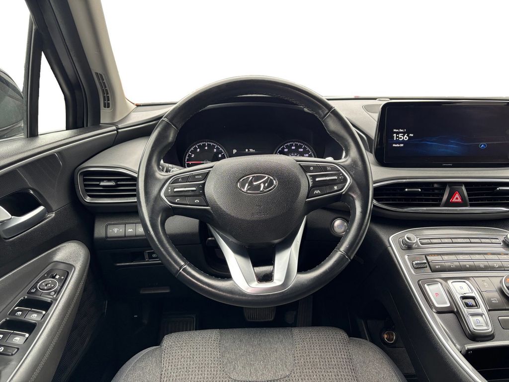 2023 Hyundai Santa Fe SEL Twilight Black SEL AWD 8-Speed Automatic with SHIFTRONIC 2.5L I4 AWD, Gray Cloth, 18" x 7.5J Alloy Wheels, 4-Wheel Disc Brakes, 6 Speakers, ABS brakes, Air Conditioning, Alloy wheels, AM/FM radio: SiriusXM, Apple CarPlay & Android Auto, Auto High-beam Headlights, Automatic temperature control, Axle Ratio: 4.081, Brake assist, Bumpers: body-color, Delay-off headlights, Driver door bin, Driver vanity mirror, Dual front impact airbags, Dual front side impact airbags, Electronic Stability Control, Emergency communication system, Exterior Parking Camera Rear, Four wheel independent suspension, Front anti-roll bar, Front Bucket Seats, Front Center Armrest, Front dual zone A/C, Front reading lights, Fully automatic headlights, Heated door mirrors, Heated Front Bucket Seats, Heated front seats, Illuminated entry, Leather steering wheel, Low tire pressure warning, Navigation System, Occupant sensing airbag, Option Group 01, Outside temperature display, Overhead airbag, Overhead console, Panic alarm, Passenger door bin, Passenger vanity mirror, Power door mirrors, Power driver seat, Power Liftgate, Power steering, Power windows, Radio: AM/FM Display Audio, Rear anti-roll bar, Rear seat center armrest, Rear window defroster, Rear window wiper, Remote keyless entry, Security system, Speed control, Speed-sensing steering, Split folding rear seat, Spoiler, Stain-Resistant Cloth Seat Trim, Steering wheel mounted audio controls, Tachometer, Telescoping steering wheel, Tilt steering wheel, Traction control, Trip computer, Turn signal indicator mirrors, Variably intermittent wipers, AWD, Gray Cloth.