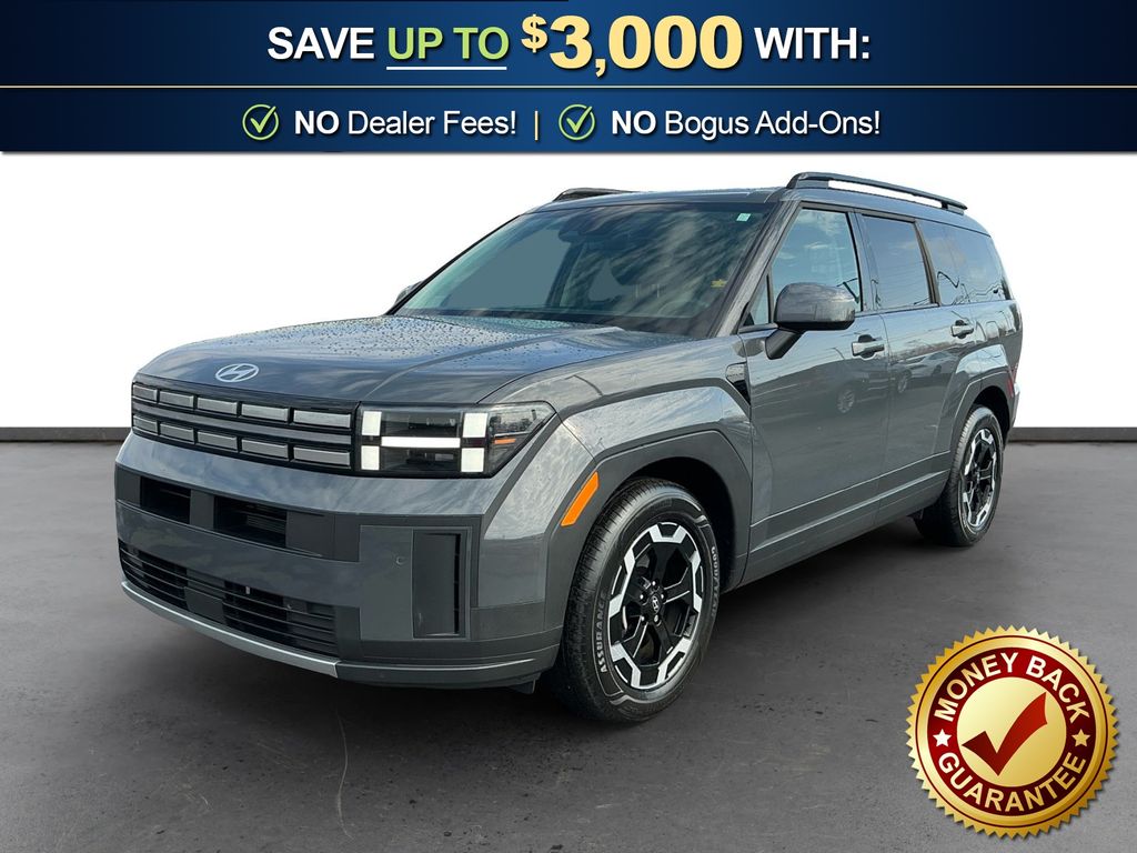 2025 Hyundai Santa Fe SEL Ecotronic Gray SEL FWD Shiftronic 2.5L I4 Black Artificial Leather, 18" x 7.5J Alloy Wheels, 3rd row seats: bench, 4-Wheel Disc Brakes, 6 Speakers, ABS brakes, Air Conditioning, All Season Fitted Liners, Alloy wheels, AM/FM radio: SiriusXM, Apple CarPlay & Android Auto, Auto High-beam Headlights, Automatic temperature control, Brake assist, Bumpers: body-color, Delay-off headlights, Driver door bin, Driver vanity mirror, Dual front impact airbags, Dual front side impact airbags, Electronic Stability Control, Emergency communication system, Exterior Parking Camera Rear, First Aid Kit, Four wheel independent suspension, Front anti-roll bar, Front Bucket Seats, Front Center Armrest, Front dual zone A/C, Front reading lights, Fully automatic headlights, H-Tex Leatherette Seat Trim, Heated door mirrors, Heated Front Bucket Seats, Heated front seats, Illuminated entry, Knee airbag, Leather steering wheel, Low tire pressure warning, Occupant sensing airbag, Option Group 01, Outside temperature display, Overhead airbag, Overhead console, Panic alarm, Passenger door bin, Passenger vanity mirror, Power door mirrors, Power driver seat, Power Liftgate, Power steering, Power windows, Radio: AM/FM/HD Display Audio, Rear anti-roll bar, Rear seat center armrest, Rear side impact airbag, Rear window defroster, Rear window wiper, Remote keyless entry, Roadside Assistance Kit, Security system, Severe Weather Kit, Speed control, Speed-sensing steering, Split folding rear seat, Spoiler, Steering wheel mounted audio controls, Tachometer, Telescoping steering wheel, Tilt steering wheel, Traction control, Trip computer, Turn signal indicator mirrors, Variably intermittent wipers, Wheel Locks, Black Artificial Leather.