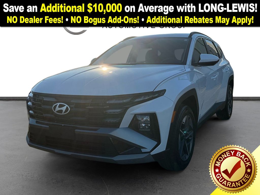 2025 Hyundai Tucson SEL White Pearl SEL AWD 8-Speed Automatic with SHIFTRONIC 2.5L I4 DGI DOHC 16V LEV3-SULEV30 187hp AWD, 18" Alloy Wheels, 4-Wheel Disc Brakes, 6 Speakers, ABS brakes, Air Conditioning, Alloy wheels, AM/FM radio: SiriusXM, Apple CarPlay & Android Auto, Auto High-beam Headlights, Automatic temperature control, Brake assist, Bumpers: body-color, Delay-off headlights, Driver door bin, Driver vanity mirror, Dual front impact airbags, Dual front side impact airbags, Electronic Stability Control, Emergency communication system: Bluelink+, Four wheel independent suspension, Front anti-roll bar, Front Bucket Seats, Front Center Armrest, Front dual zone A/C, Front reading lights, Fully automatic headlights, Heated door mirrors, Heated Front Bucket Seats, Heated front seats, Illuminated entry, Low tire pressure warning, Occupant sensing airbag, Option Group 01, Outside temperature display, Overhead airbag, Overhead console, Panic alarm, Passenger door bin, Passenger vanity mirror, Power door mirrors, Power driver seat, Power Liftgate, Power steering, Power windows, Radio data system, Radio: AM/FM/HD Audio System, Rear anti-roll bar, Rear reading lights, Rear seat center armrest, Rear side impact airbag, Rear window defroster, Rear window wiper, Remote keyless entry, Security system, Speed control, Split folding rear seat, Spoiler, Stain & Odor Resistant Cloth Seat Trim, Steering wheel mounted audio controls, Tachometer, Telescoping steering wheel, Tilt steering wheel, Traction control, Trip computer, Variably intermittent wipers, AWD.