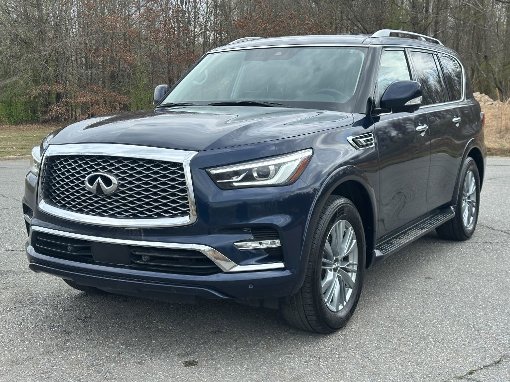 2024 INFINITI QX80 LUXE Hermosa Blue LUXE RWD 7-Speed Automatic 5.6L V8 13 Speakers, 2.937 Axle Ratio, 20" Aluminum Alloy Wheels, 3rd row seats: bench, 4-Wheel Disc Brakes, ABS brakes, Air Conditioning, Alloy wheels, AM/FM radio: SiriusXM, Anti-whiplash front head restraints, Apple CarPlay/Android Auto, Auto High-beam Headlights, Auto tilt-away steering wheel, Auto-dimming door mirrors, Auto-dimming Rear-View mirror, Auto-leveling suspension, Automatic temperature control, Brake assist, Bumpers: body-color, Compass, Delay-off headlights, Driver door bin, Driver vanity mirror, Dual front impact airbags, Dual front side impact airbags, Electronic Stability Control, Emergency communication system: INFINITI InTouch, Four wheel independent suspension, Front anti-roll bar, Front Bucket Seats, Front Center Armrest, Front dual zone A/C, Front fog lights, Front reading lights, Fully automatic headlights, Garage door transmitter: HomeLink, Heated door mirrors, Heated Front Bucket Seats, Heated front seats, Heated steering wheel, Illuminated entry, Leather Shift Knob, Leather steering wheel, Leather-Appointed Seats, Literature Kit, Low tire pressure warning, Memory seat, Navigation system: INFINITI InTouch Navigation, Occupant sensing airbag, Outside temperature display, Overhead airbag, Overhead console, Panic alarm, Passenger door bin, Passenger vanity mirror, Power door mirrors, Power driver seat, Power Liftgate, Power moonroof, Power passenger seat, Power steering, Power windows, Radio data system, Radio: Bose Premium Audio System w/13 Speakers, Rain sensing wipers, Rear air conditioning, Rear anti-roll bar, Rear reading lights, Rear seat center armrest, Rear window defroster, Rear window wiper, Reclining 3rd row seat, Remote keyless entry, Security system, Speed control, Speed-sensing steering, Split folding rear seat, Spoiler, Steering wheel memory, Steering wheel mounted audio controls, Tachometer, Telescoping steering wheel, Tilt steering wheel, Traction control, Trip computer, Turn signal indicator mirrors, Variably intermittent wipers, Voltmeter.