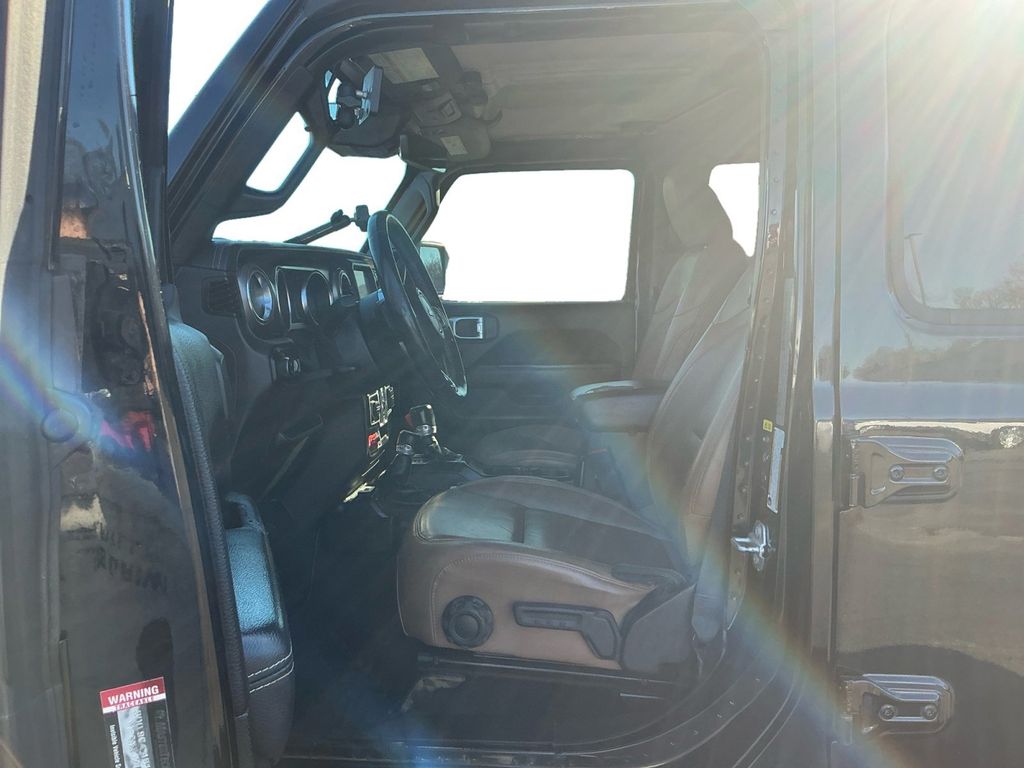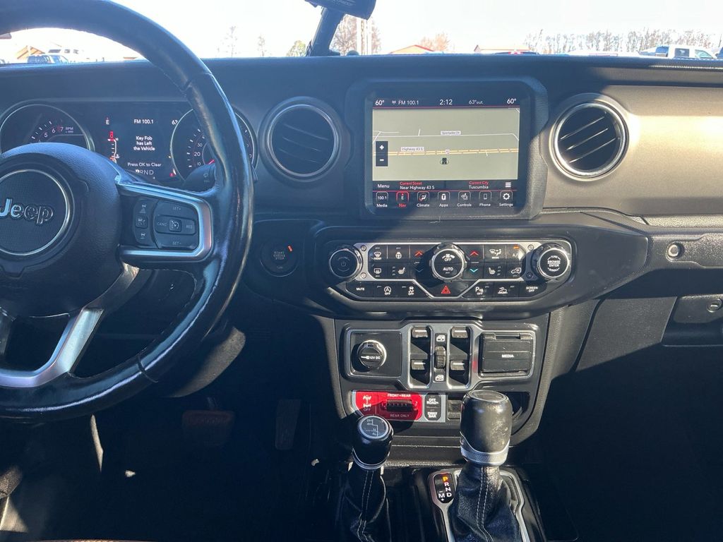 2020 Jeep Gladiator Rubicon Black Clearcoat Rubicon 4WD 8-Speed Automatic 3.6L V6 24V VVT 1-Year SiriusXM Guardian Trial, 240 Amp Alternator, 4-Wheel Disc Brakes, 4.10 Rear Axle Ratio, 5-Year SiriusXM Traffic Service, 5-Year SiriusXM Travel Link Service, 8 Speakers, 8.4" Radio & Premium Audio Group, 97 mph Maximum Speed Calibration, ABS brakes, Advanced Brake Assist, Advanced Safety Group, Air Conditioning, Alloy wheels, Alpine Premium Audio System, AM/FM radio: SiriusXM, Apple CarPlay/Android Auto, Auto-Dimming Rear-View Mirror, Automatic temperature control, Blind Spot & Cross Path Detection, Body Color 3-Piece Hard Top, Body Color Fender Flares (2-Piece), Brake assist, Class IV Hitch Receiver, Cold Weather Group, Compass, Delay-off headlights, Driver door bin, Driver vanity mirror, Dual front impact airbags, Dual front side impact airbags, Electronic Stability Control, Emergency/Assistance Call, For Details, Visit DriveUconnect.com, Freedom Panel Storage Bag, Front anti-roll bar, Front Bucket Seats, Front Center Armrest w/Storage, Front dual zone A/C, Front fog lights, Front reading lights, Full Speed Forward Collision Warning Plus, Fully automatic headlights, Garage door transmitter, HD Radio, Heated door mirrors, Heated Front Seats, Heated Steering Wheel, Heavy-Duty Engine Cooling, Illuminated entry, Integrated roll-over protection, Leather steering wheel, Low tire pressure warning, No Soft Top, Occupant sensing airbag, Outside temperature display, Panic alarm, ParkSense Rear Park Assist System, ParkView Rear Back-Up Camera, Passenger door bin, Passenger vanity mirror, Performance Suspension, Power door mirrors, Power steering, Power windows, Premium Cloth Low-Back Bucket Seats, Quick Order Package 24R, Radio data system, Radio: Uconnect 4 w/7" Display, Radio: Uconnect 4C Nav w/8.4" Display, Rear anti-roll bar, Rear reading lights, Rear Sliding Window, Rear Window Defroster, Remote keyless entry, Remote Start System, Safety Group, Security system, SiriusXM Traffic Plus, SiriusXM Travel Link, Speed control, Split folding rear seat, Steering wheel mounted audio controls, Tachometer, Telescoping steering wheel, Tilt steering wheel, Traction control, Trailer Hitch Zoom, Trailer Tow Package, Trip computer, Variably intermittent wipers, Voltmeter, Wheels: 17" x 7.5" Granite Crystal Aluminum.